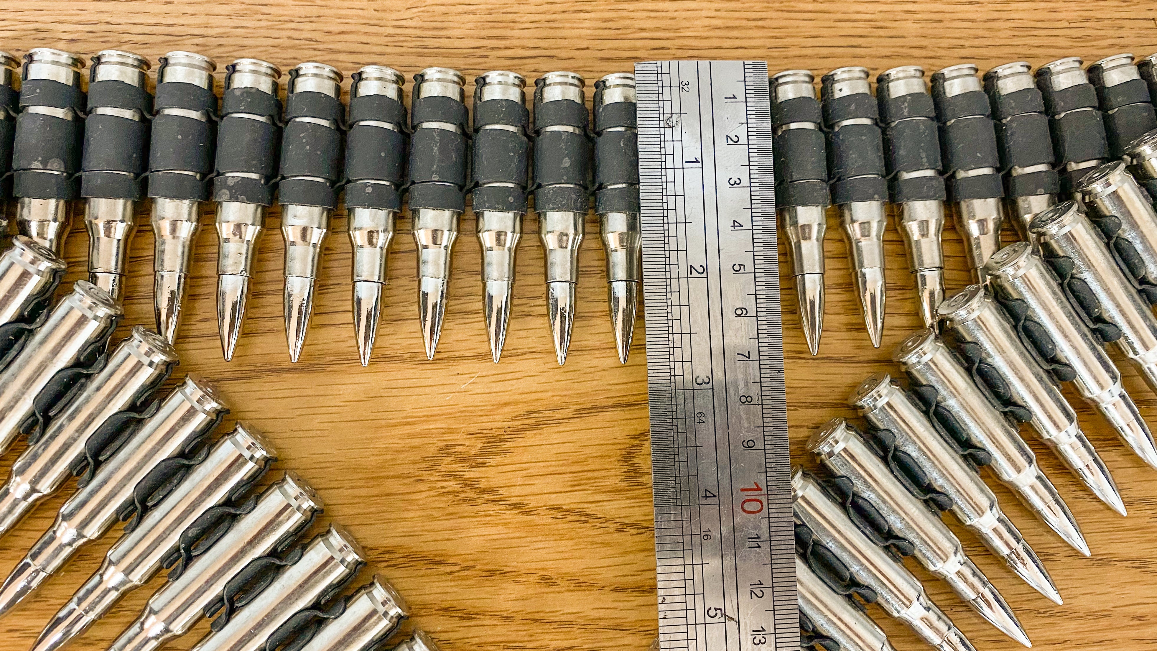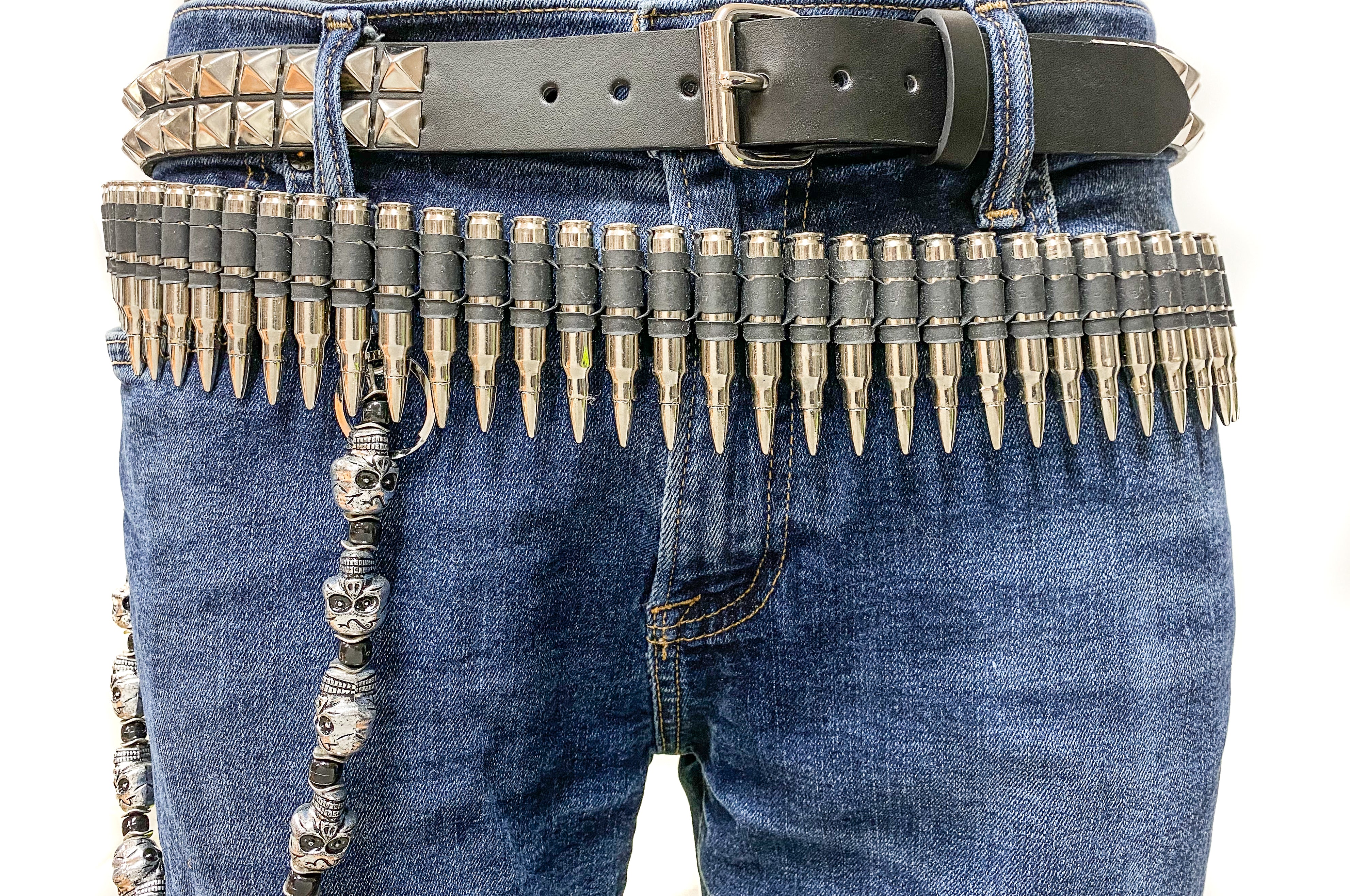 Black M16 .223 Caliber Bullet Belt Black Shell Nickel Tips Nickel 'X' Link