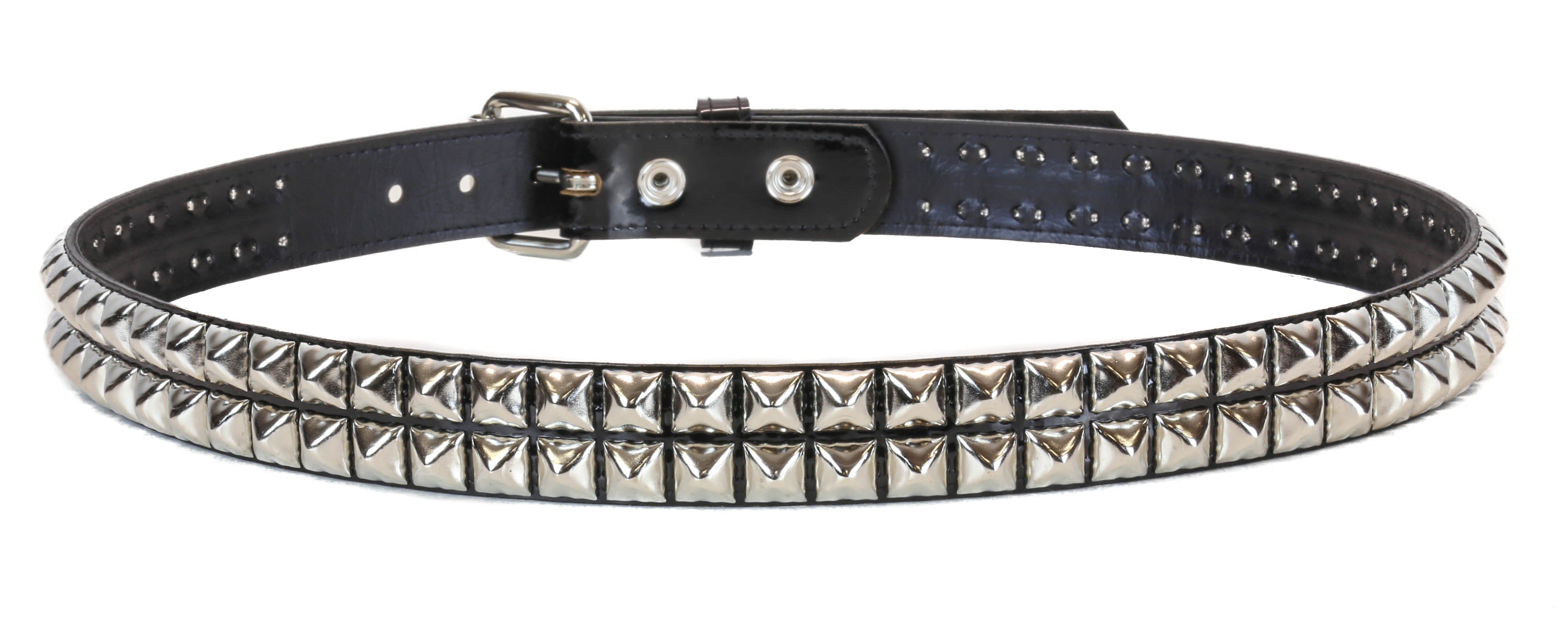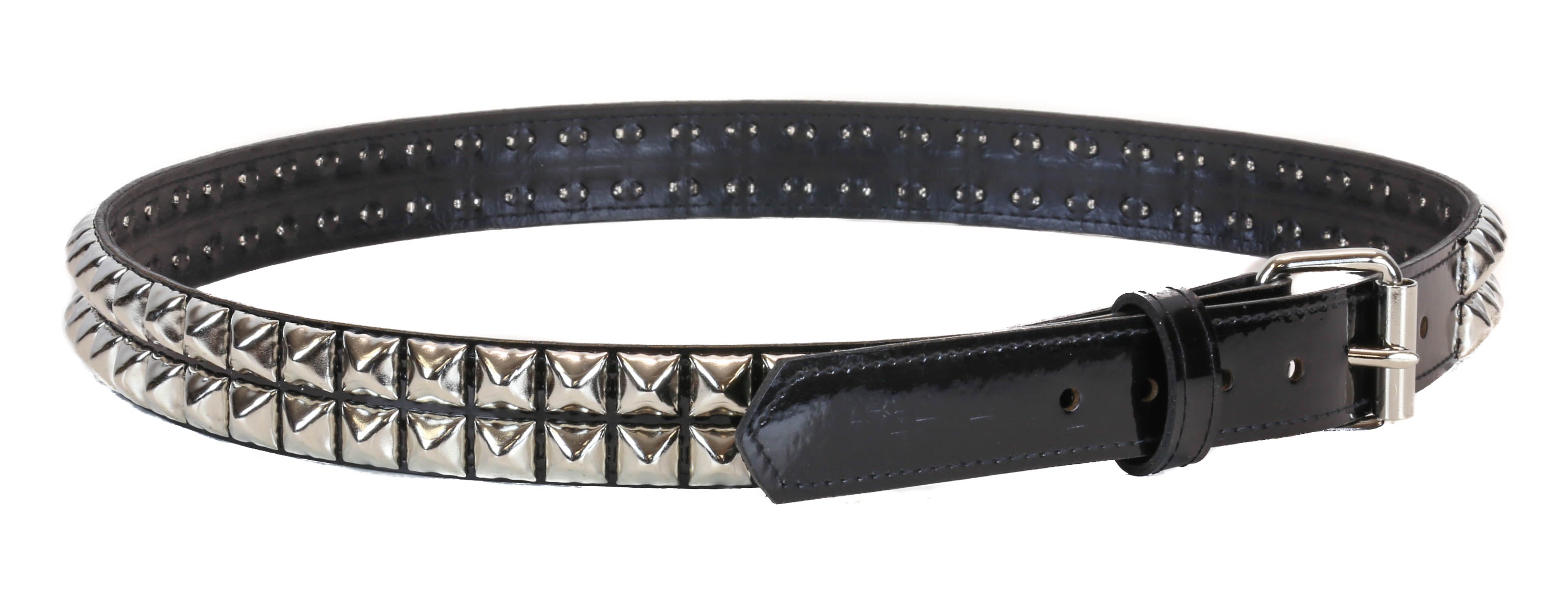 Black Patent 2 Row Studded Punk Influenced Belt By Funk Plus