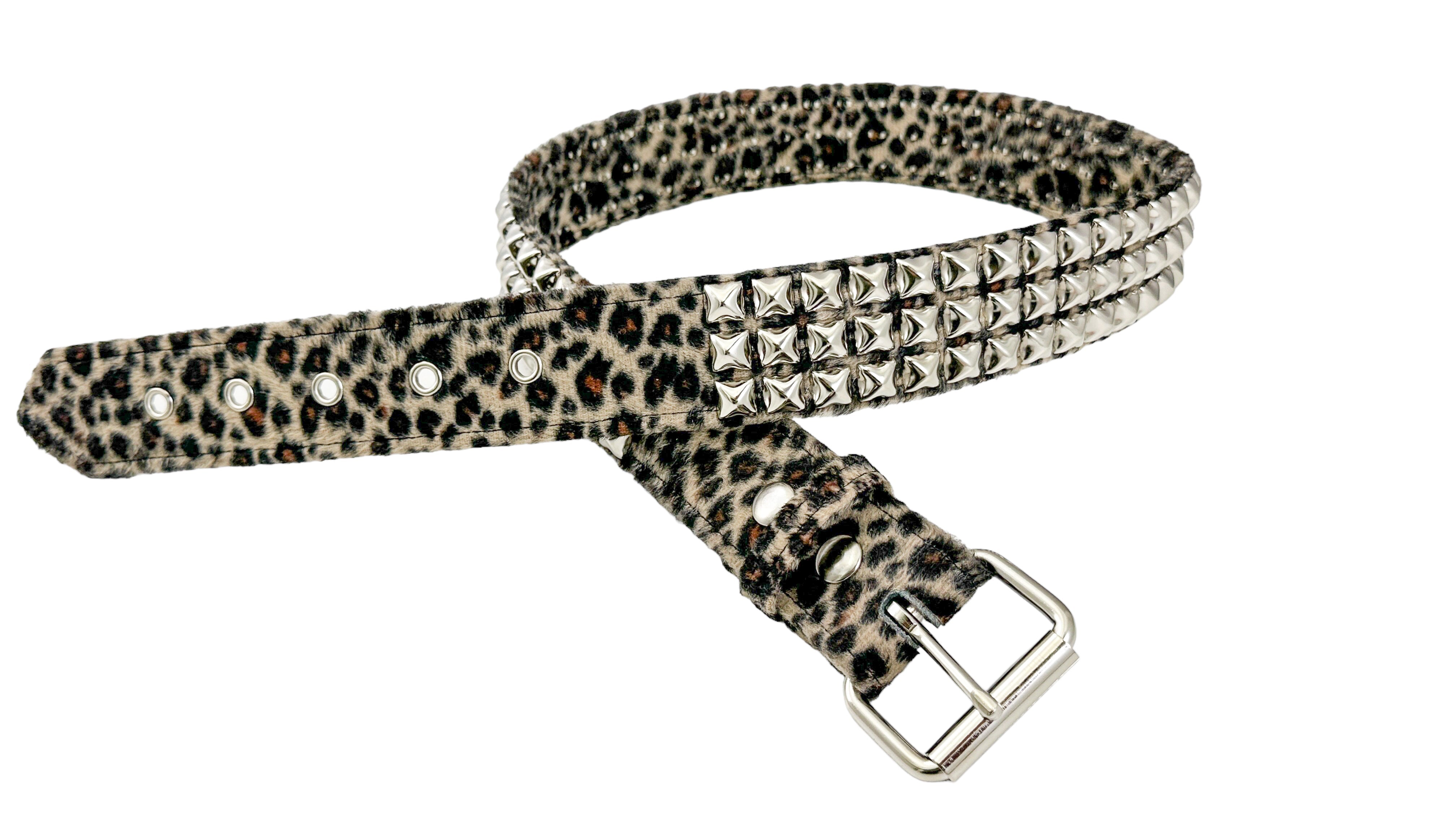 BROWN LEOPARD 3 ROW 1/2" PYRAMID STUD BELT