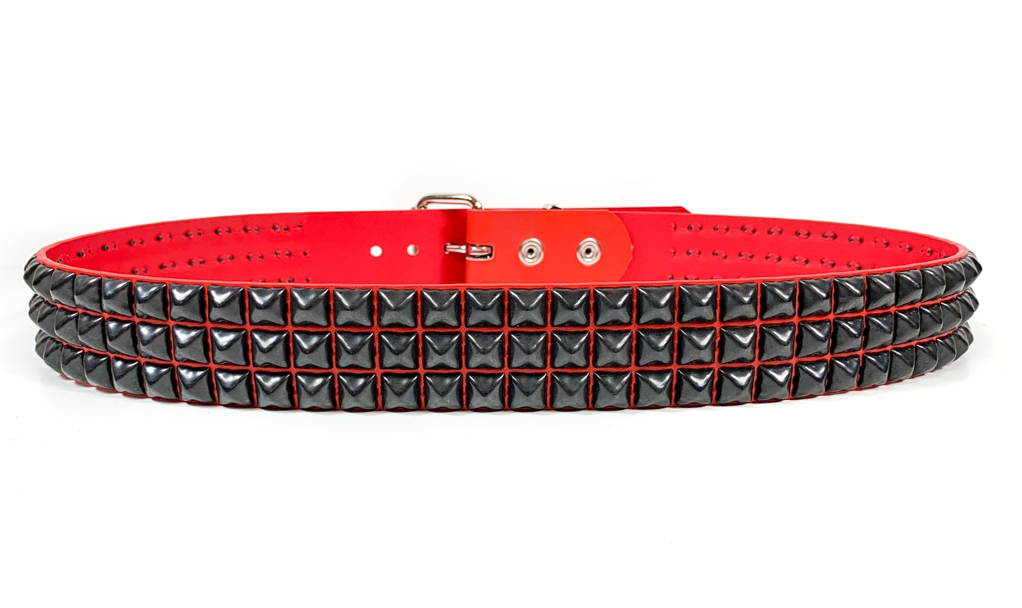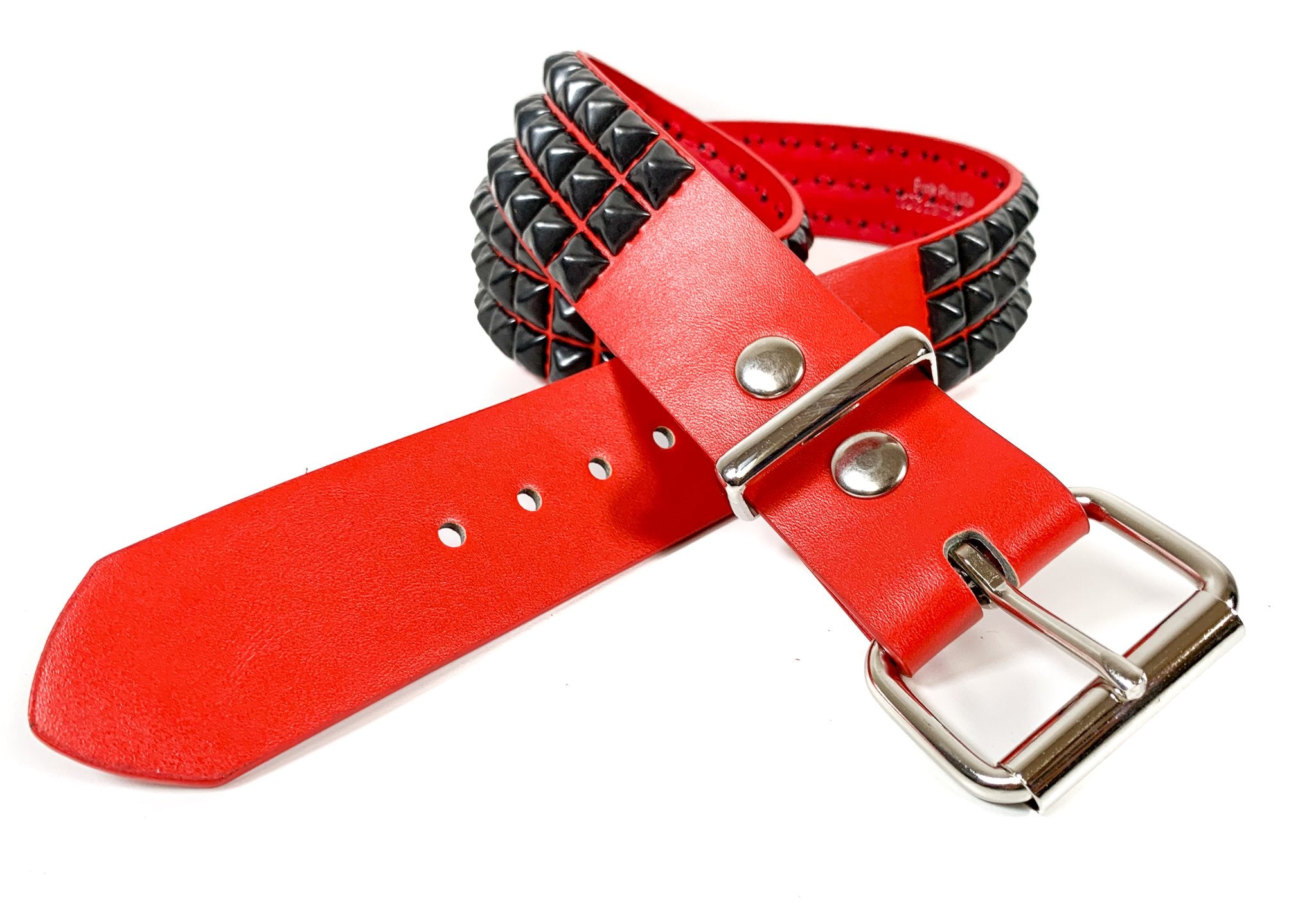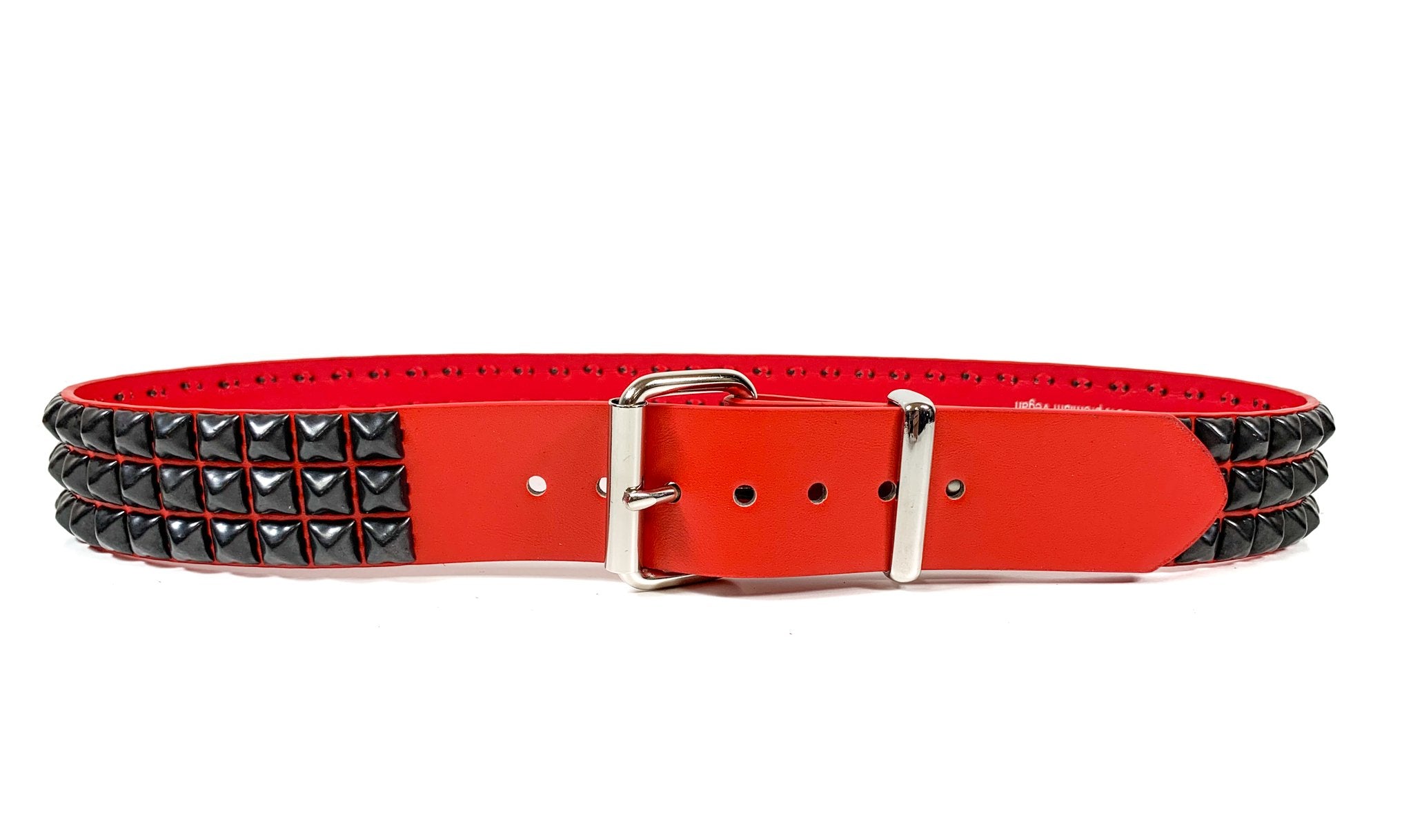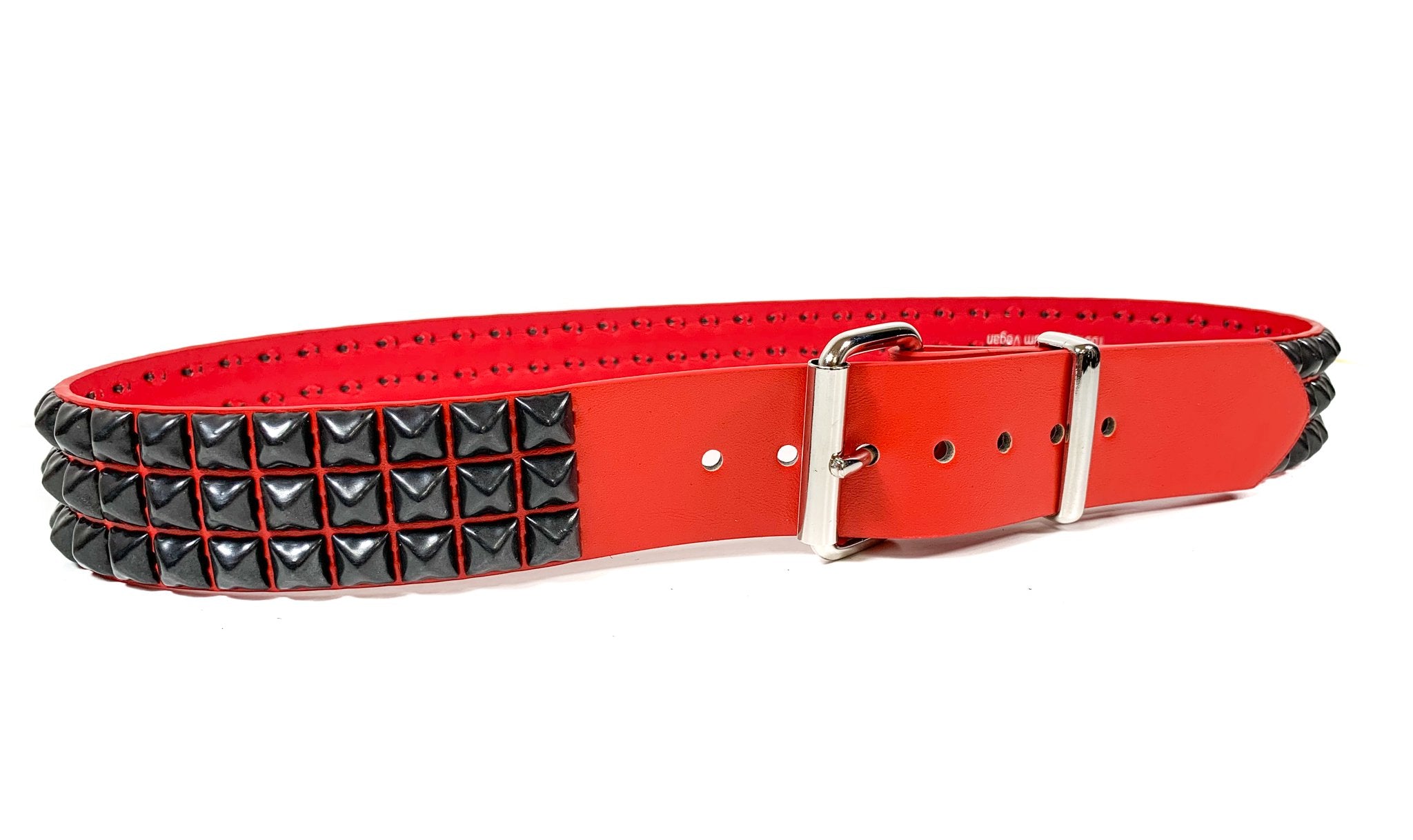 RED MATTE 3 ROW 1/2" PYRAMID BLACK STUD VEGAN LEATHER BELT