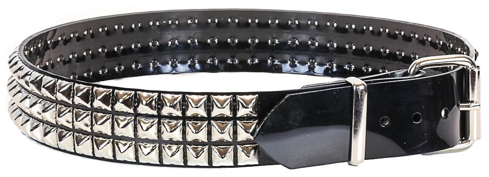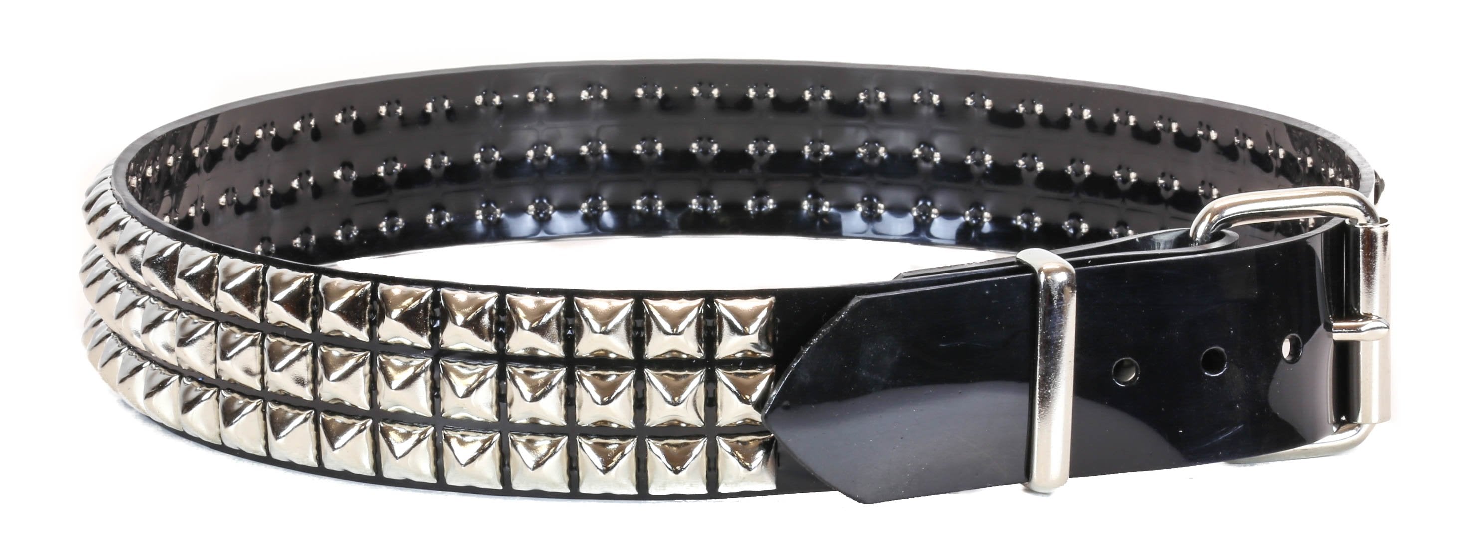 BLACK VINYL 3 ROW 1/2" PYRAMID STUD BELT, 1 3/4" WIDE