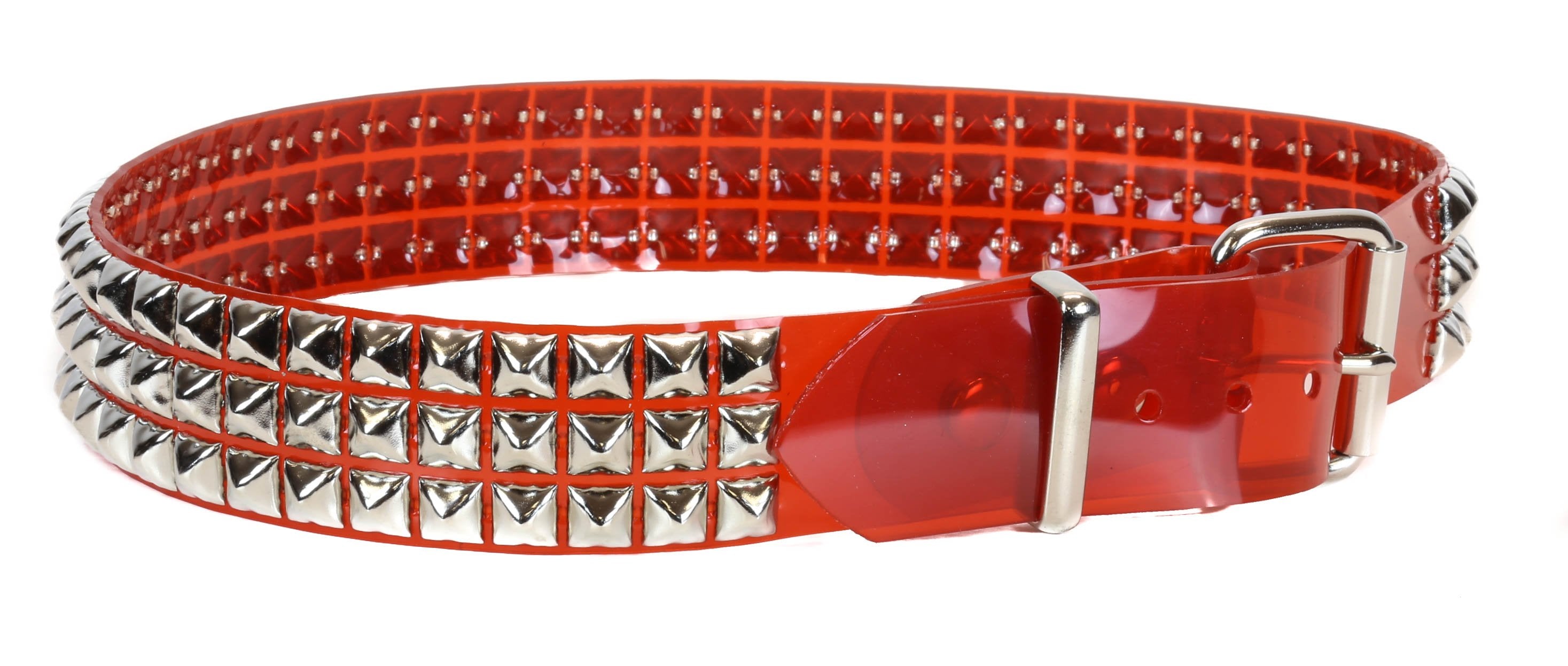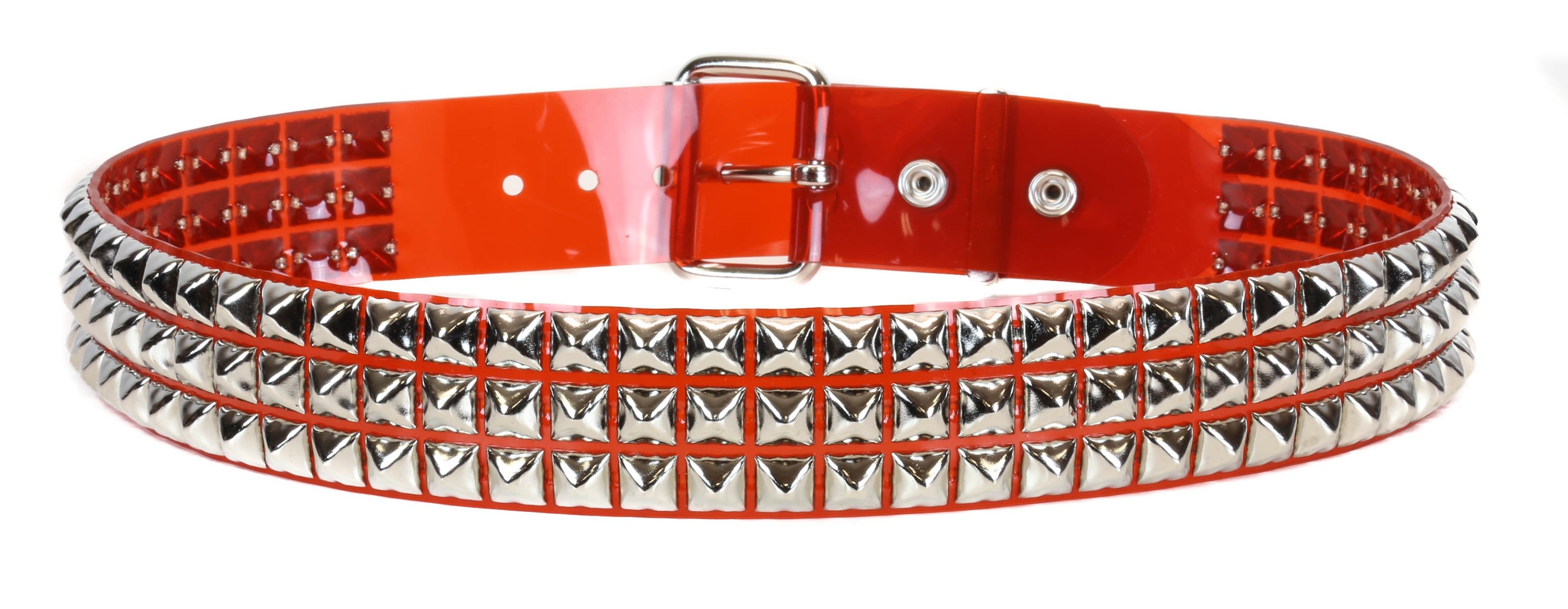 RED VINYL 3 ROW 1/2" PYRAMID STUD BELT, 1 3/4" WIDE