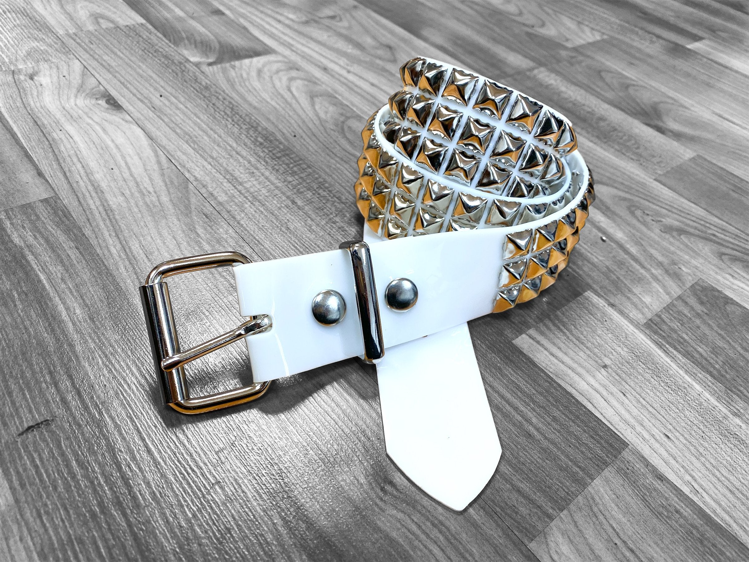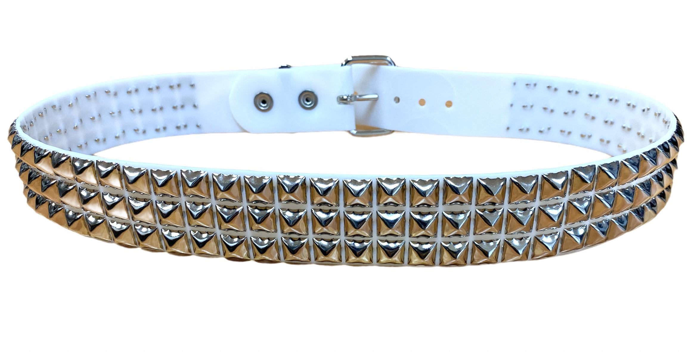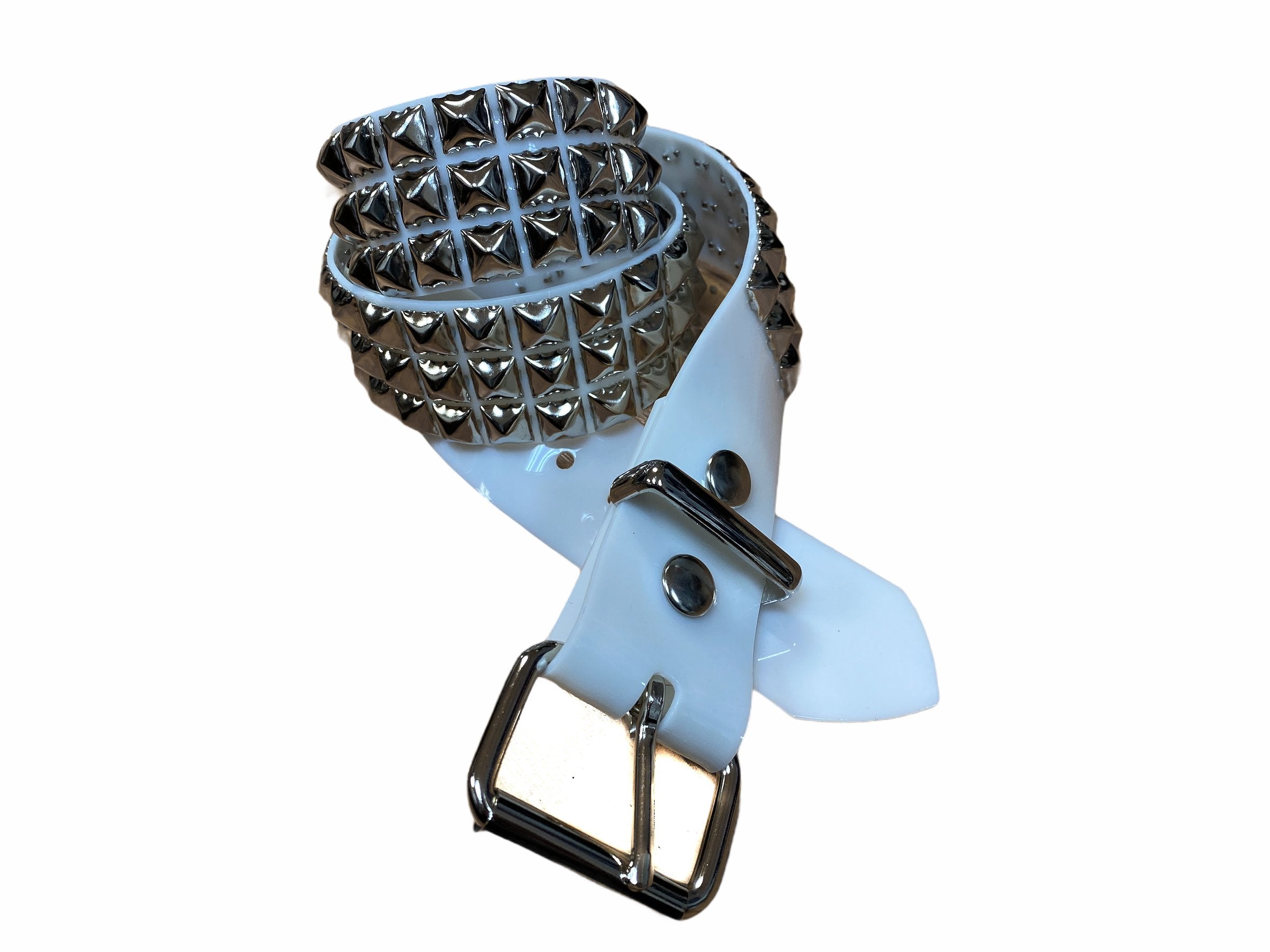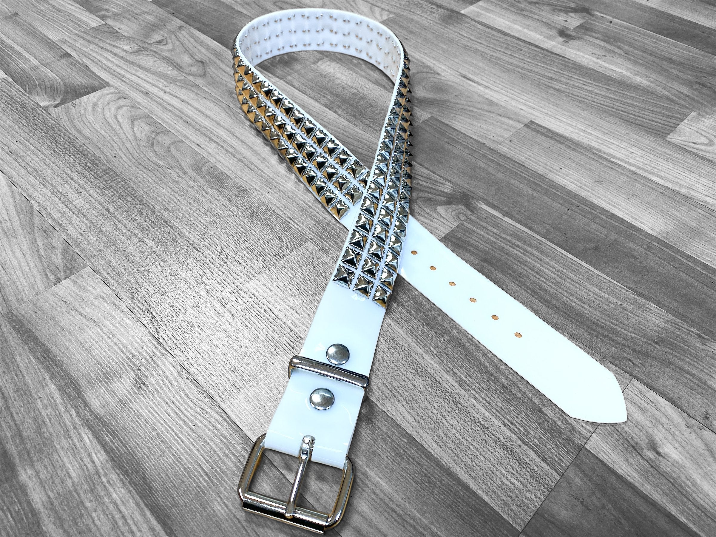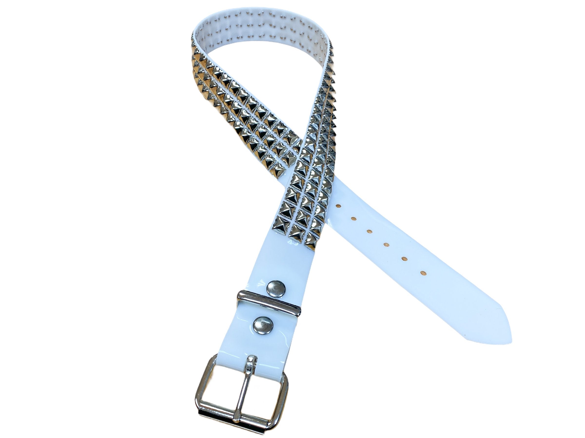 WHITE VINYL 3 ROW 1/2" PYRAMID STUD BELT, 1 3/4" WIDE
