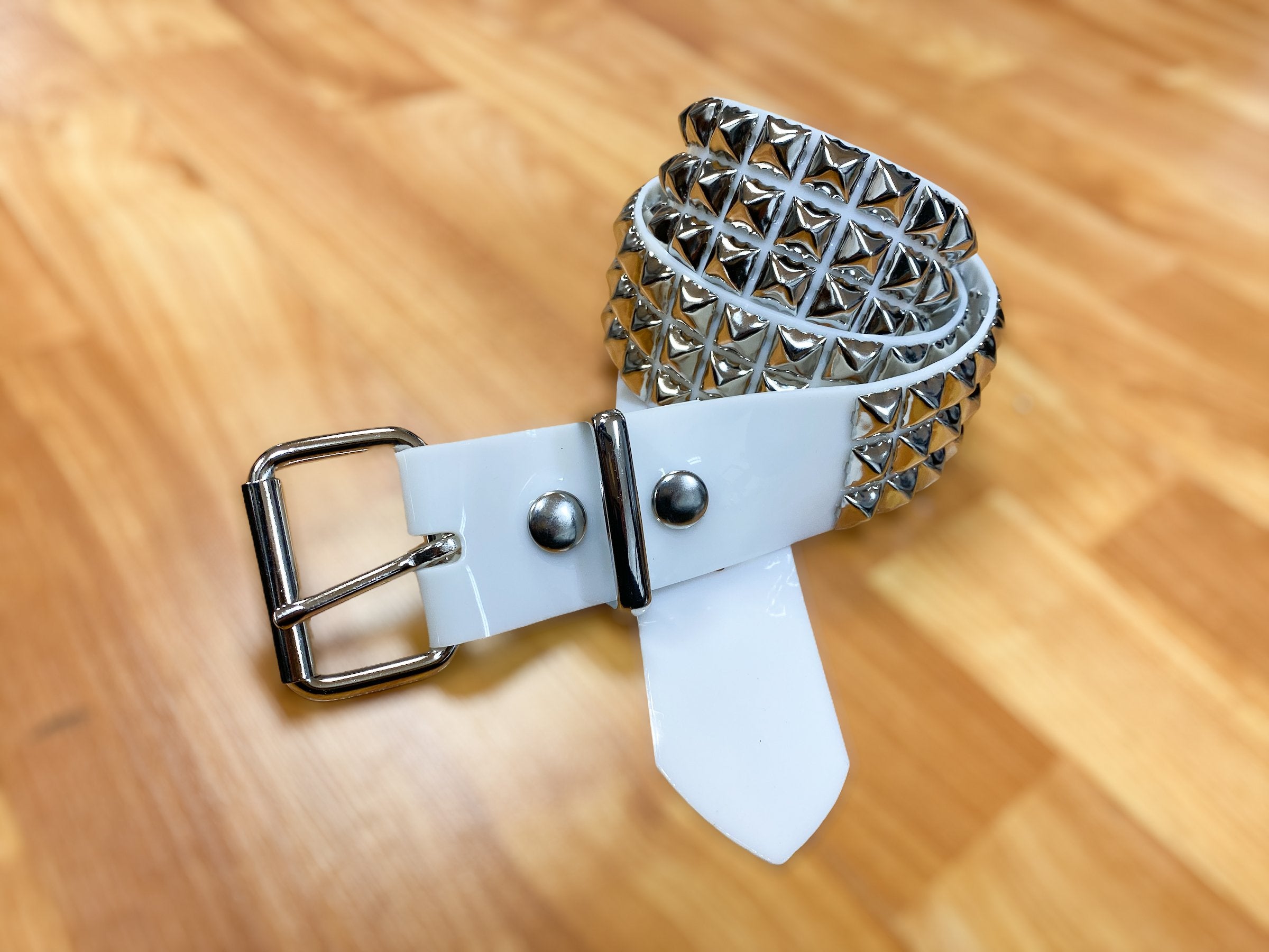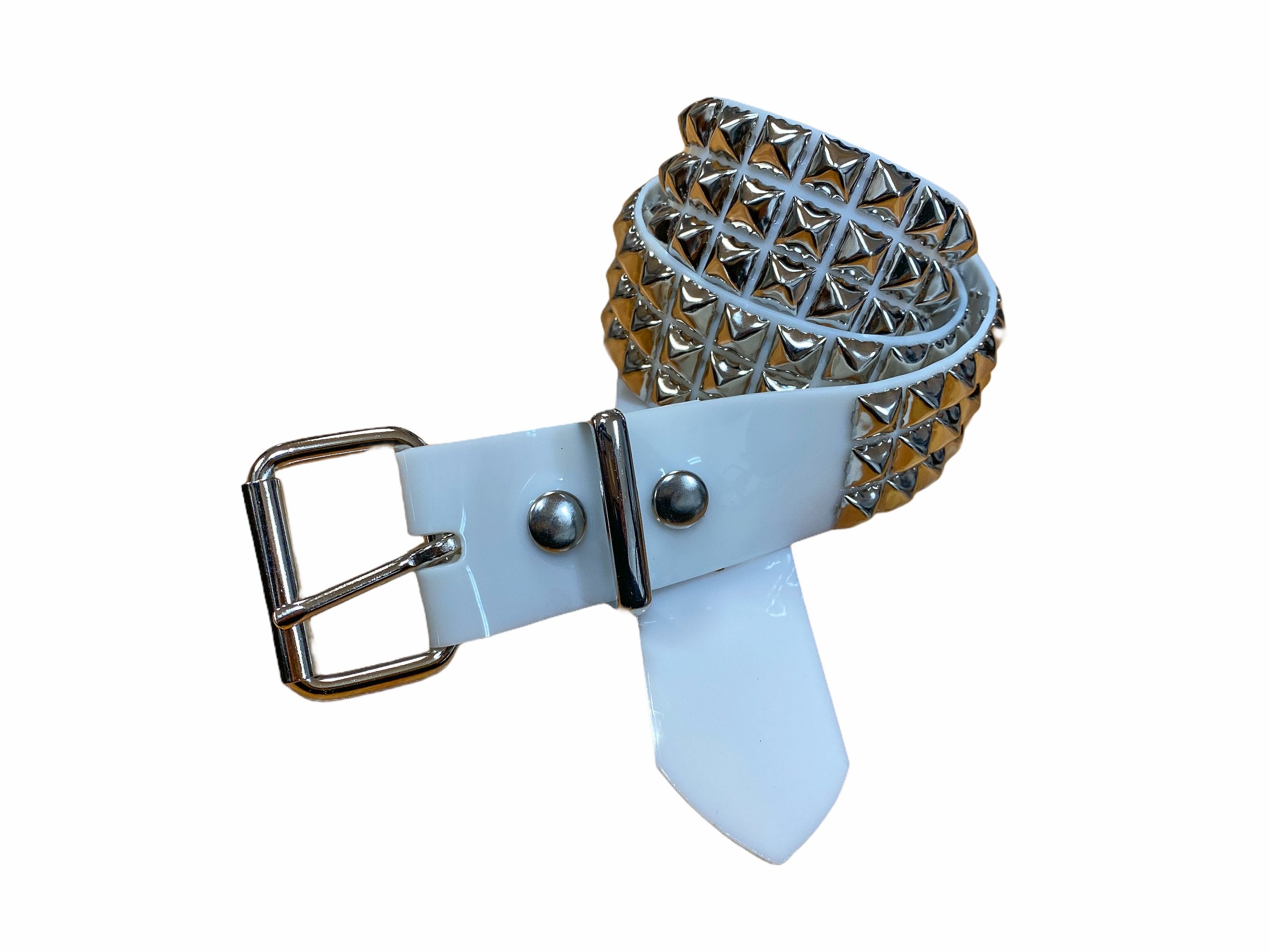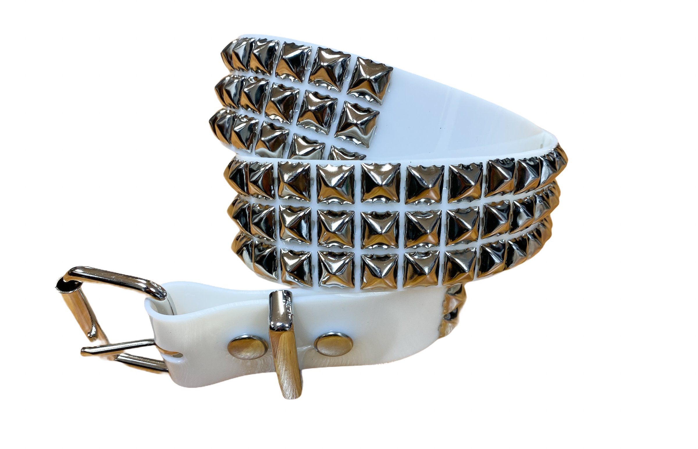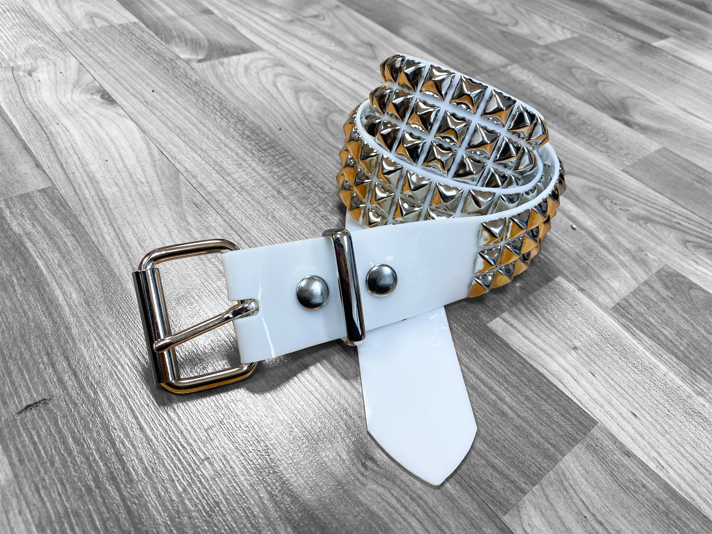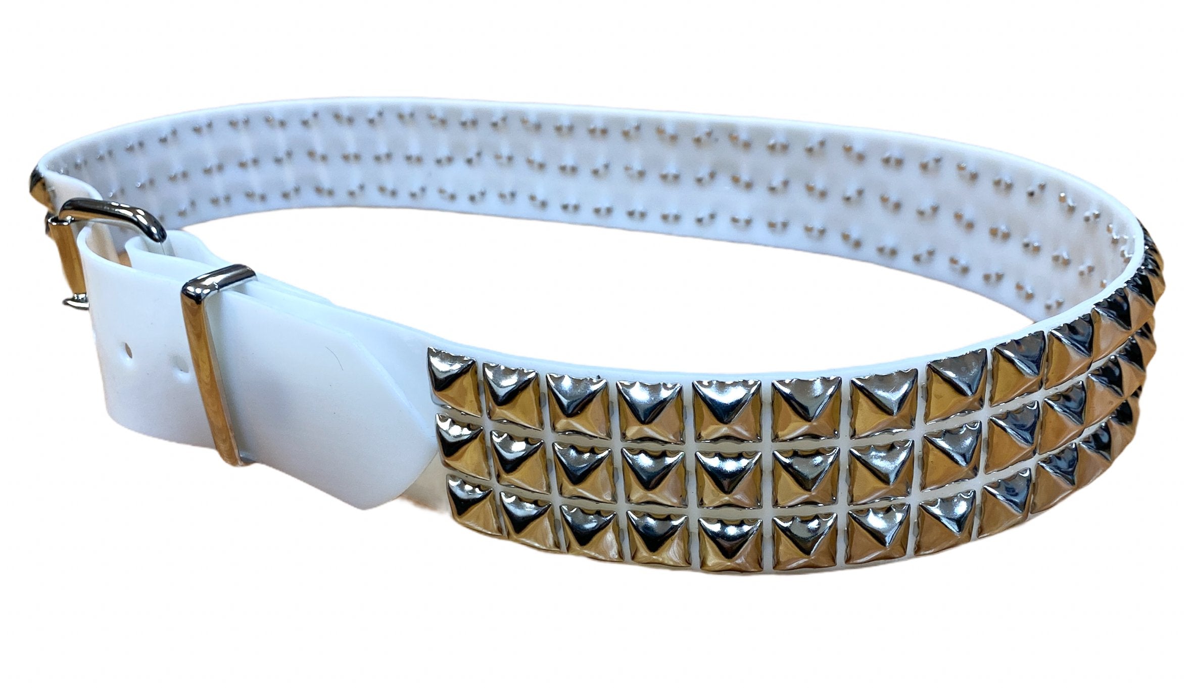 WHITE VINYL 3 ROW 1/2" PYRAMID STUD BELT, 1 3/4" WIDE