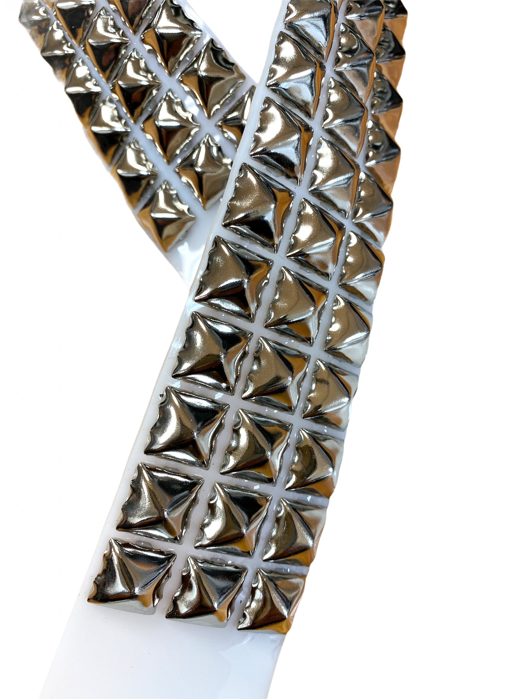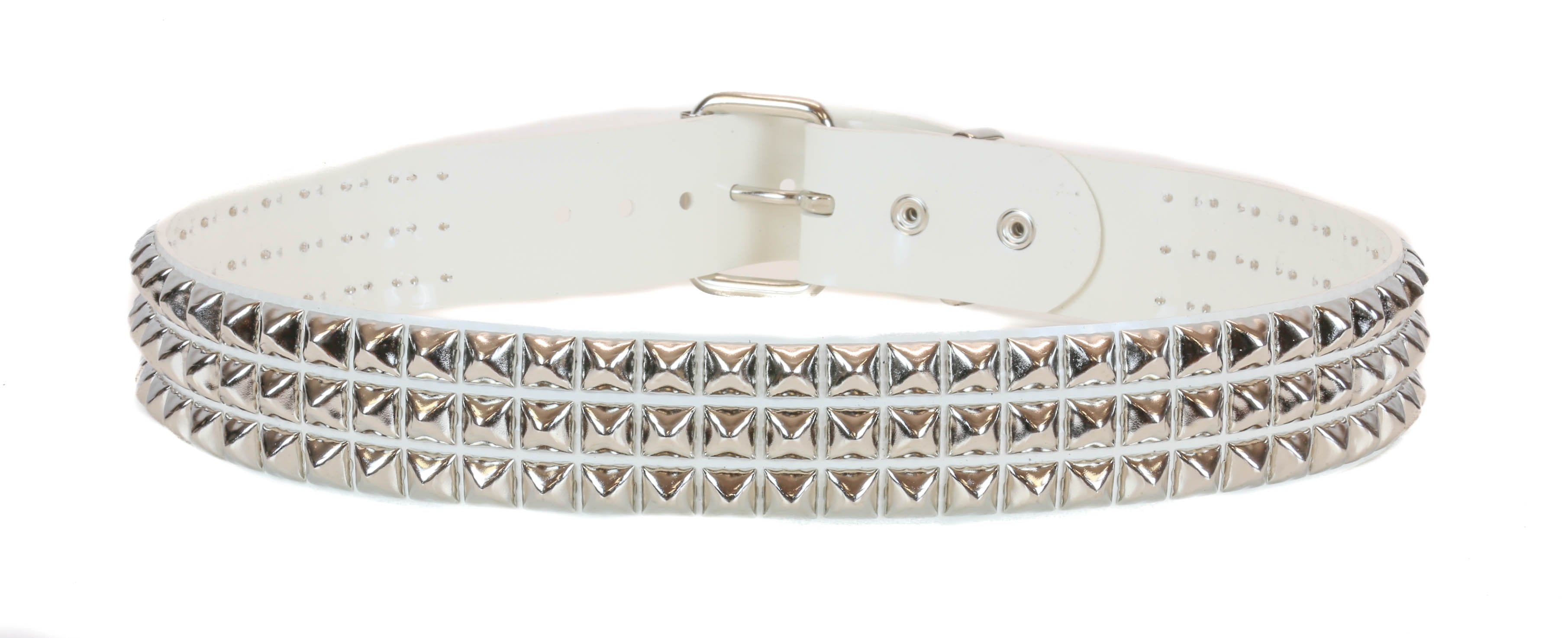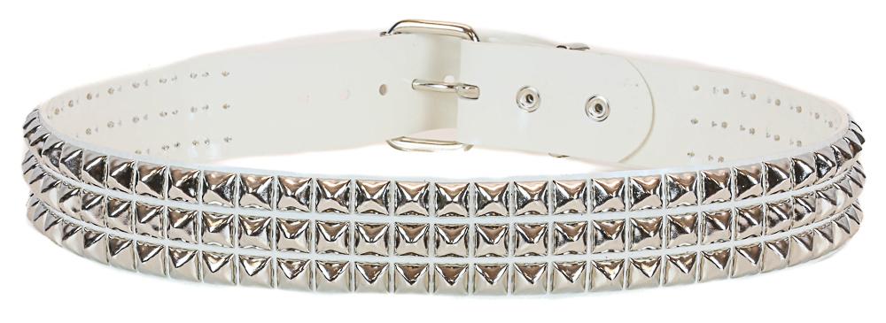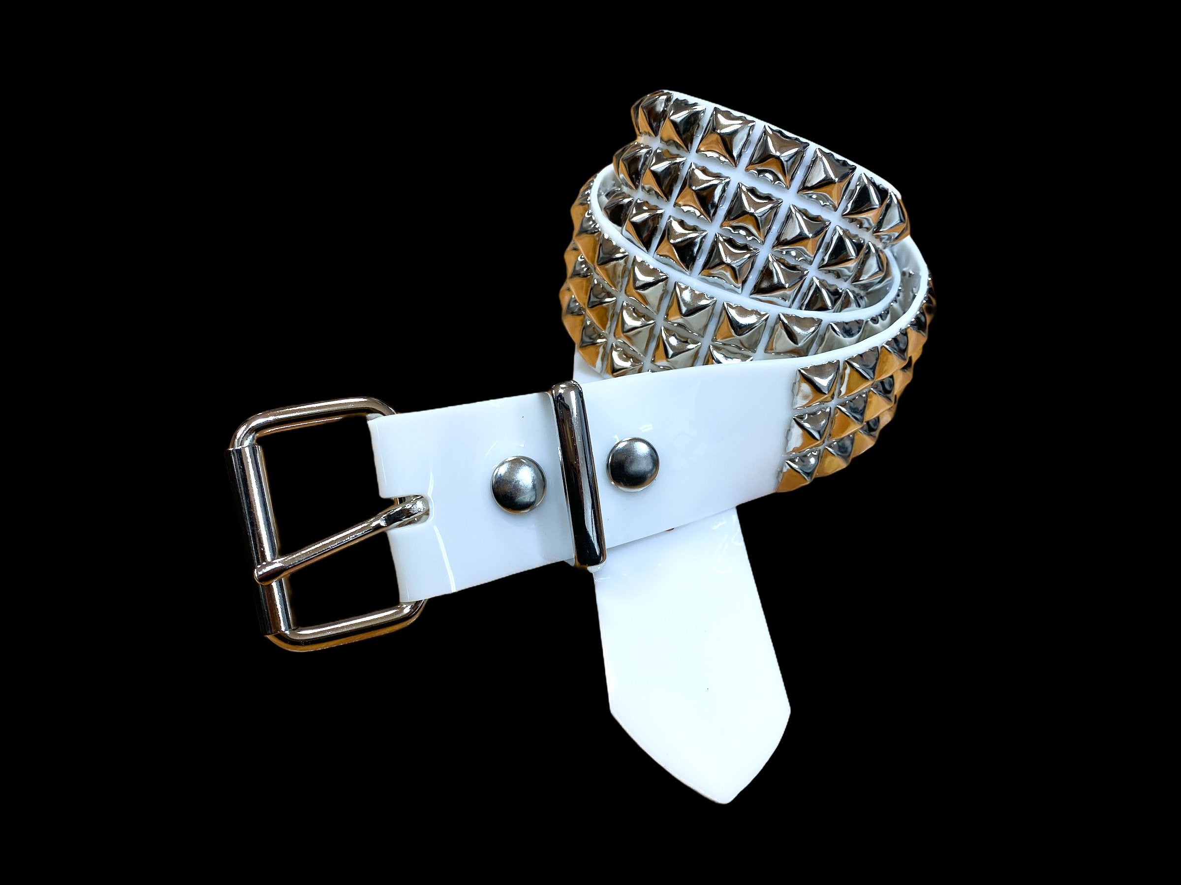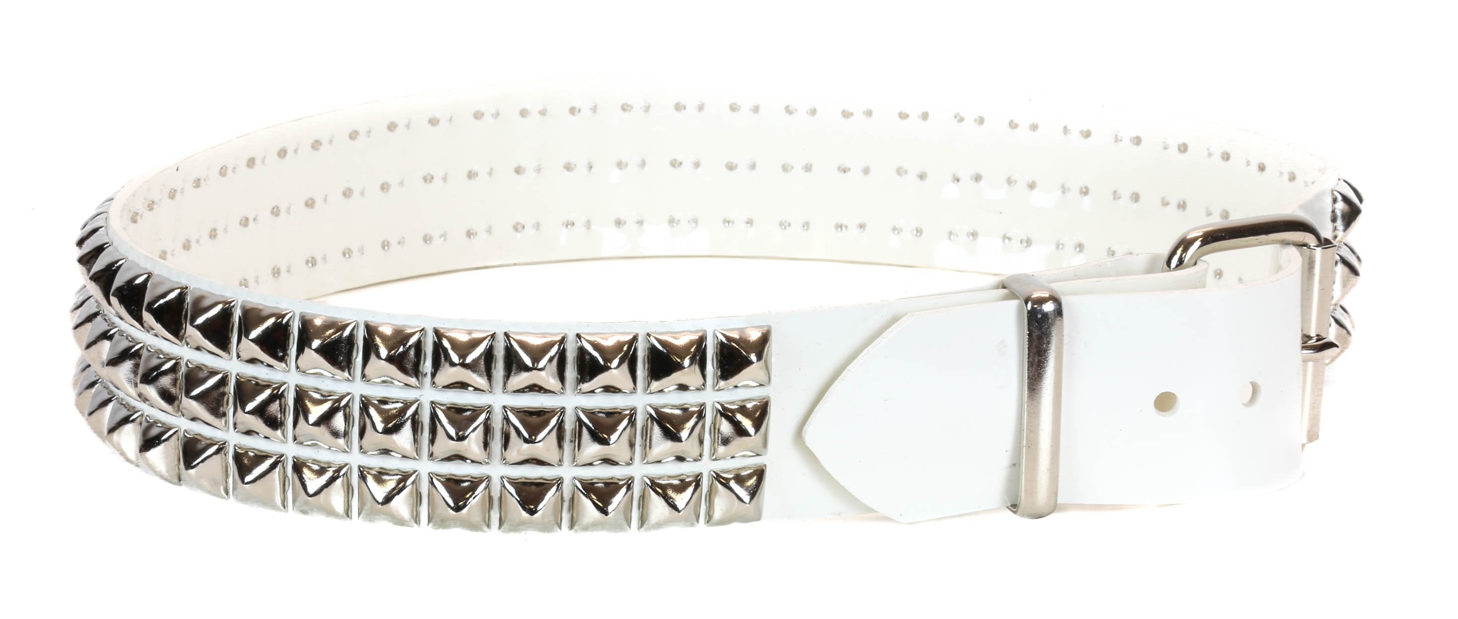 WHITE VINYL 3 ROW 1/2" PYRAMID STUD BELT, 1 3/4" WIDE