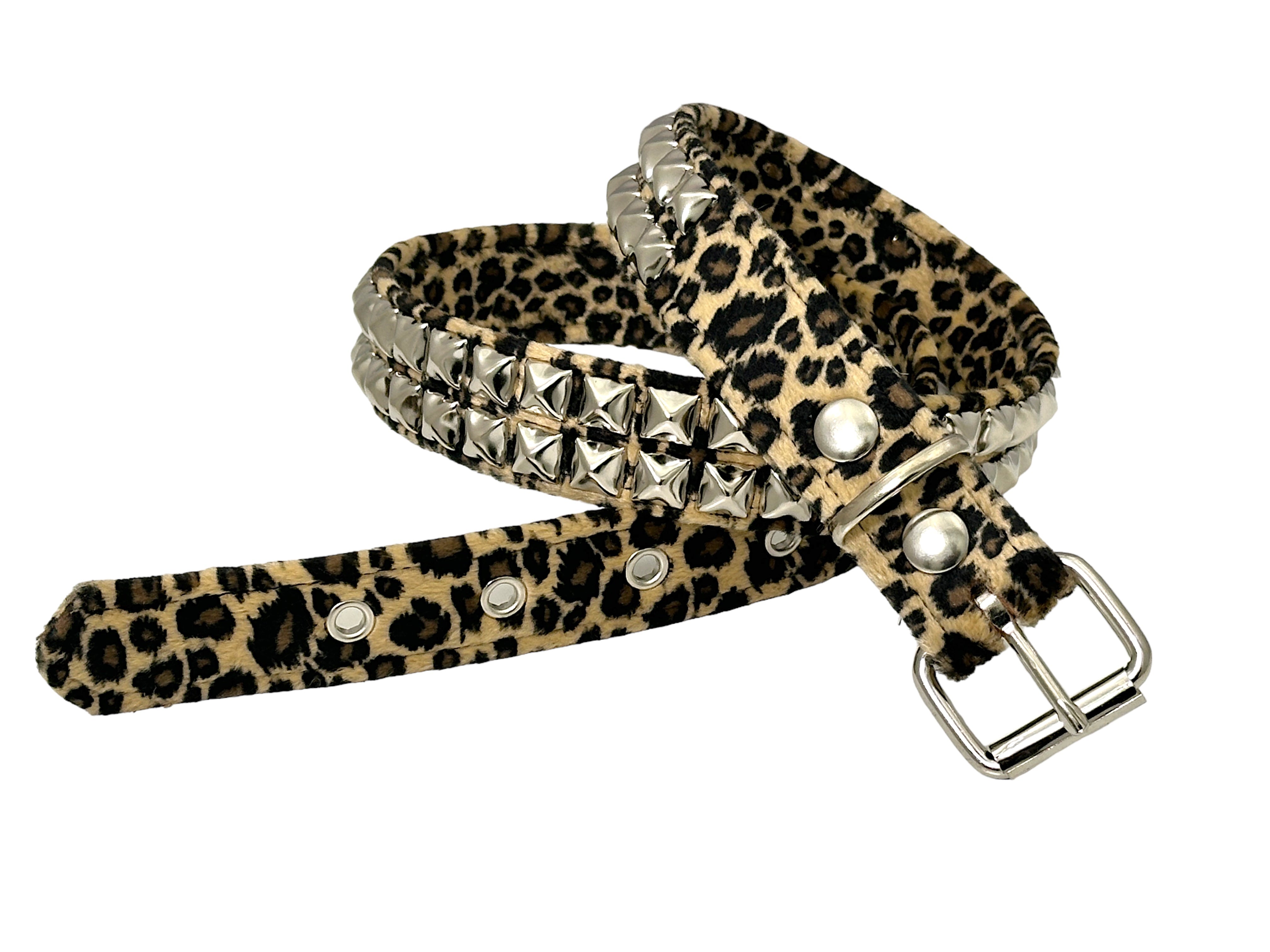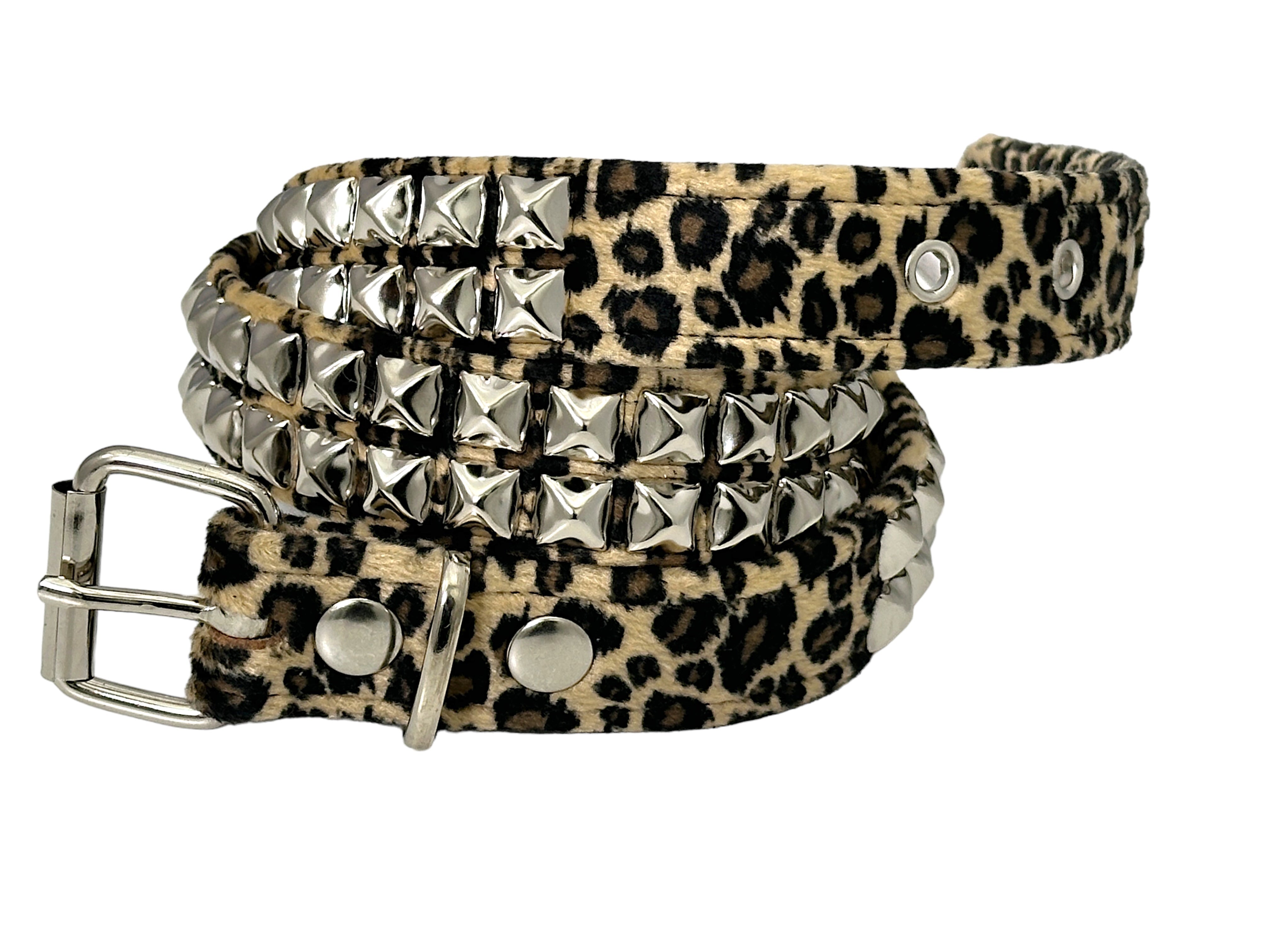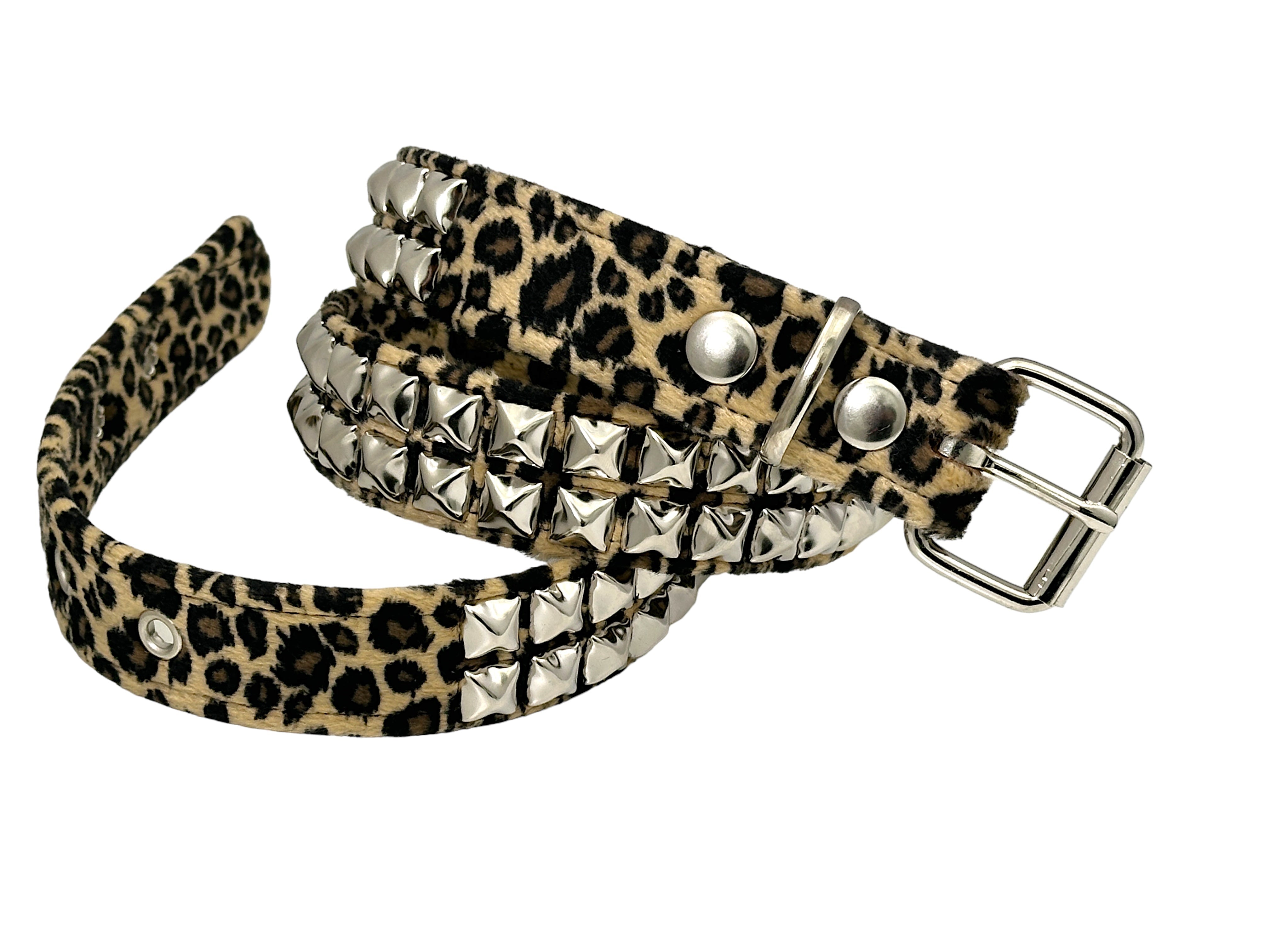 BROWN LEOPARD 2 ROW 1/2" PYRAMID STUD BELT