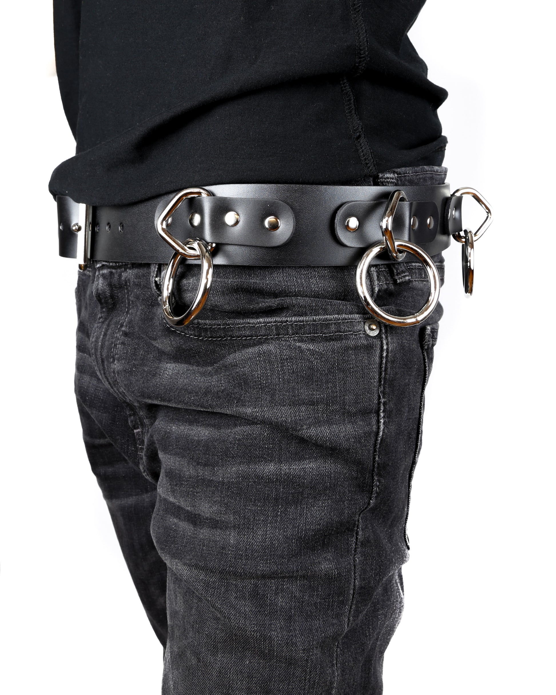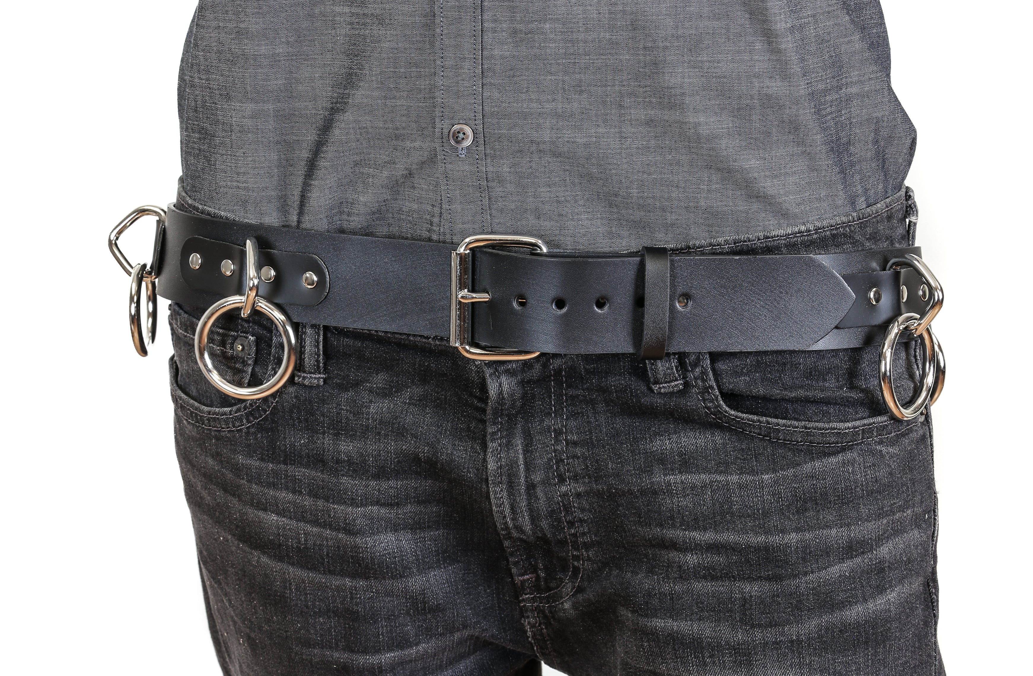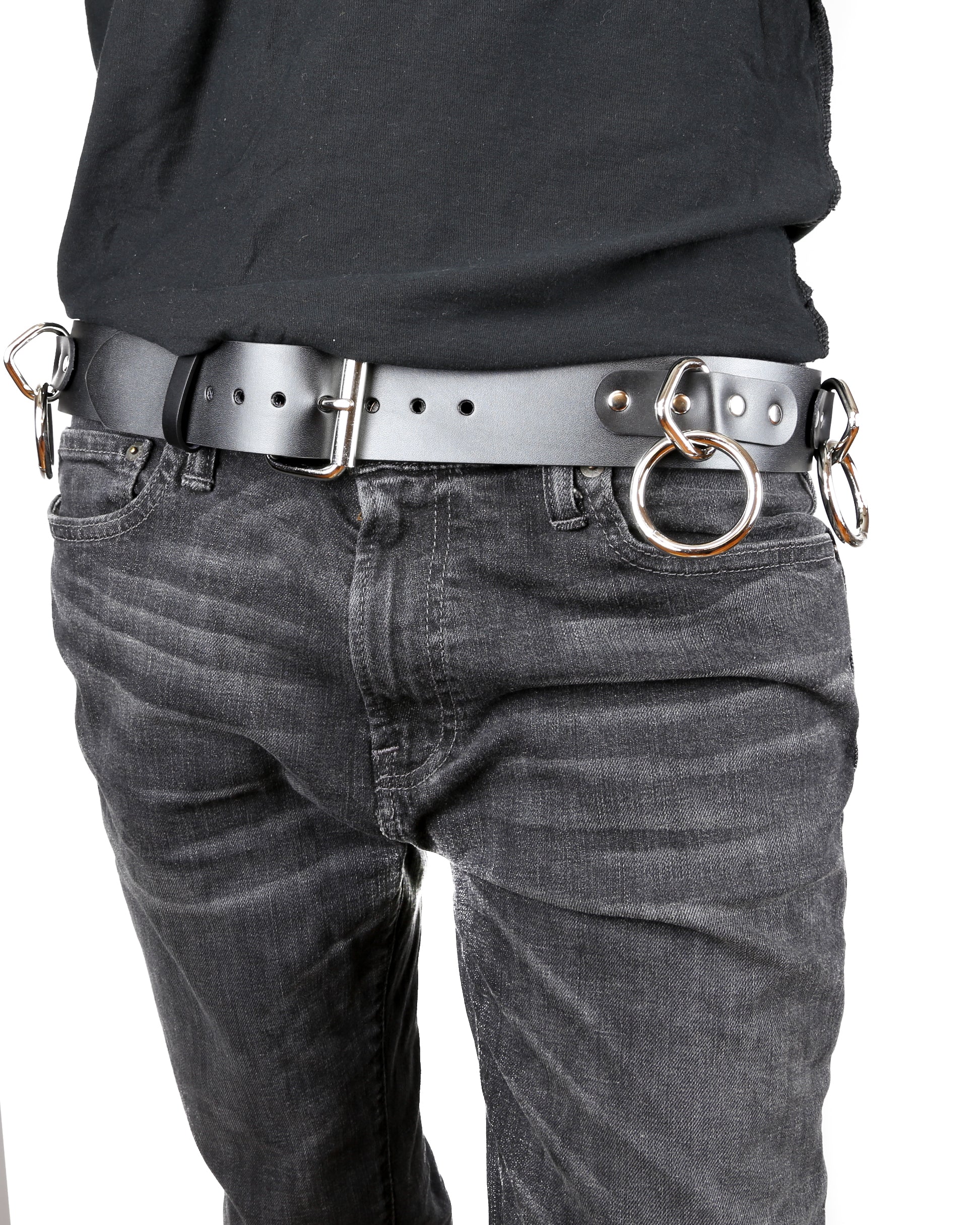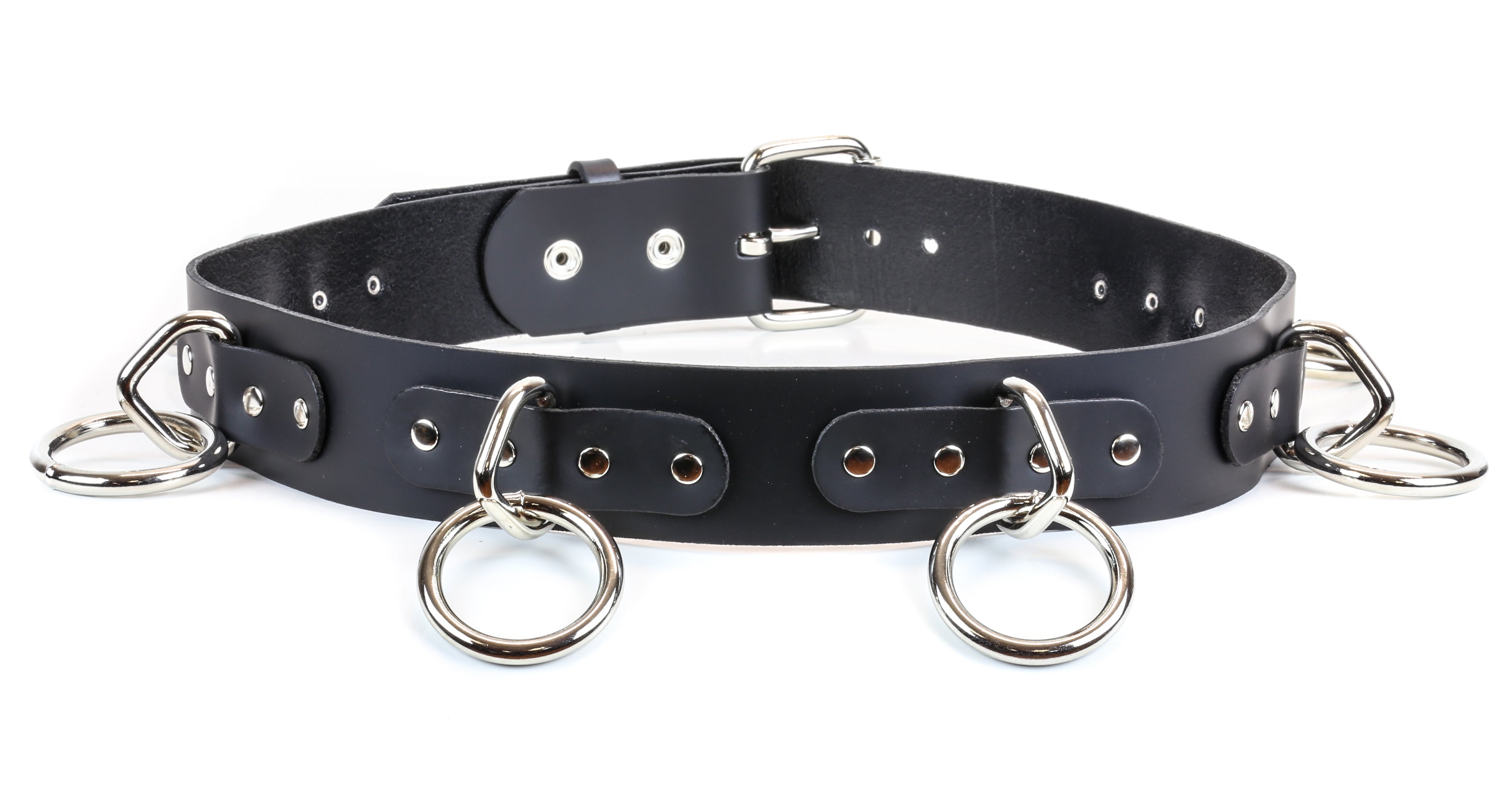 Bondage Belt Large Silver Ring Genuine Leather Wide Belt