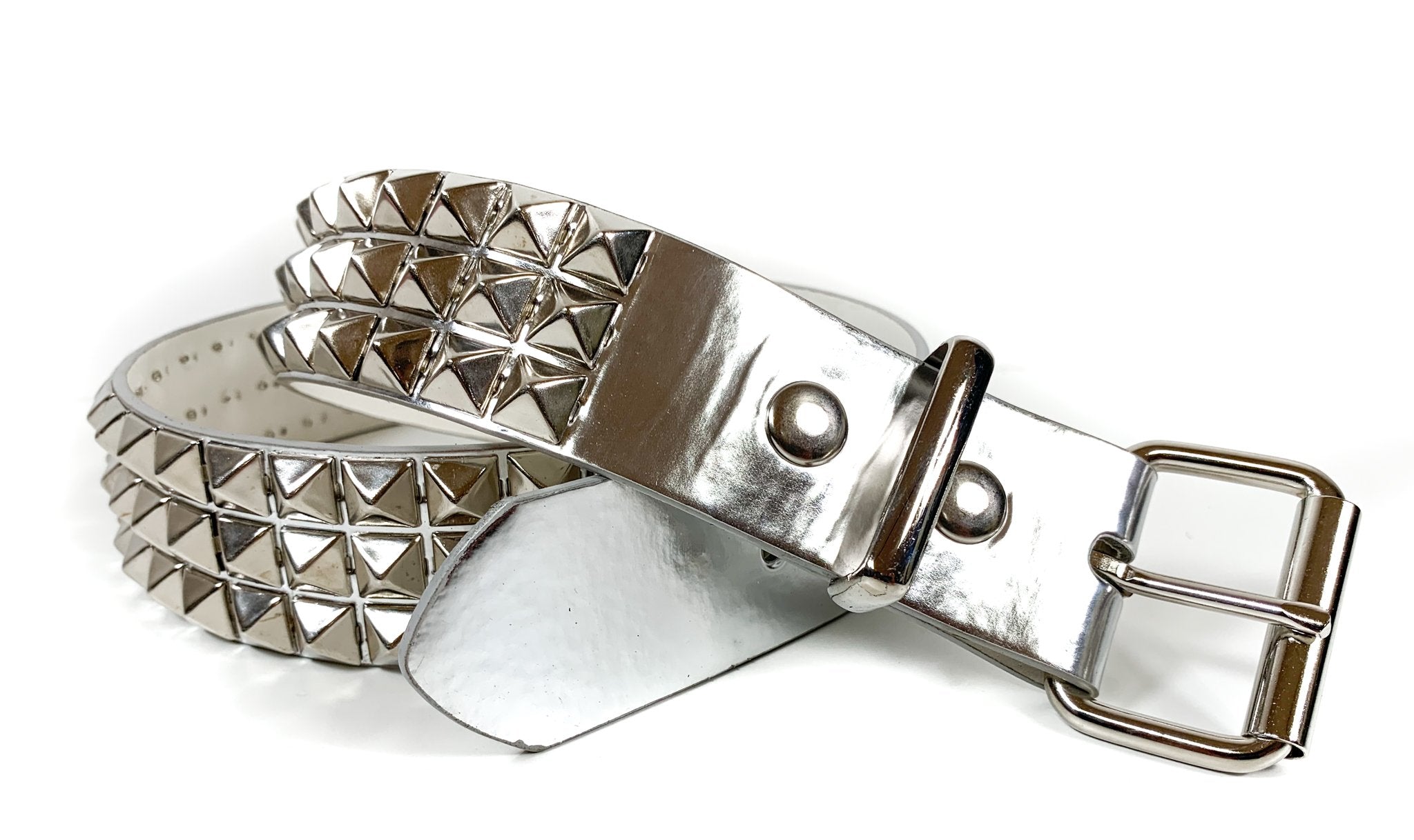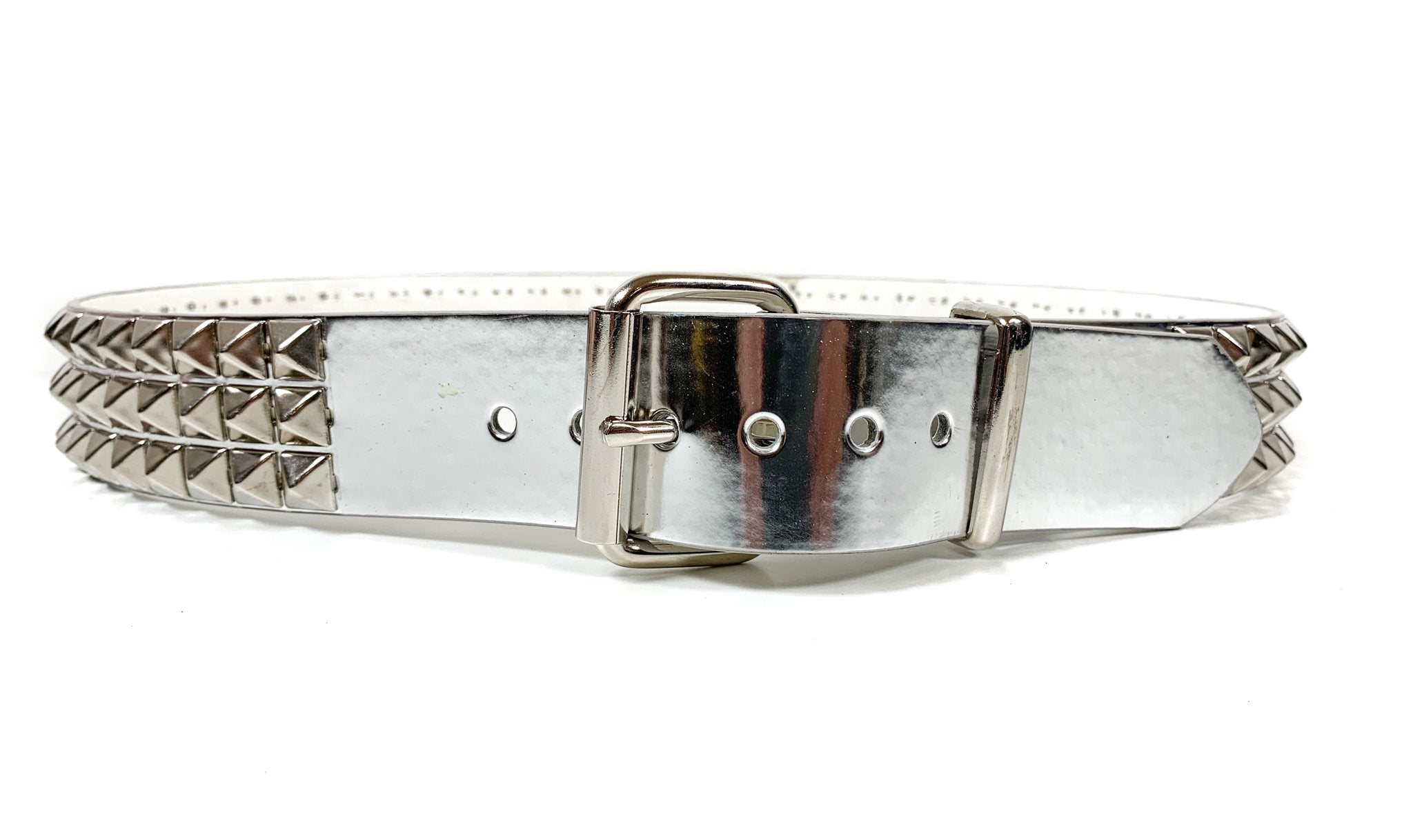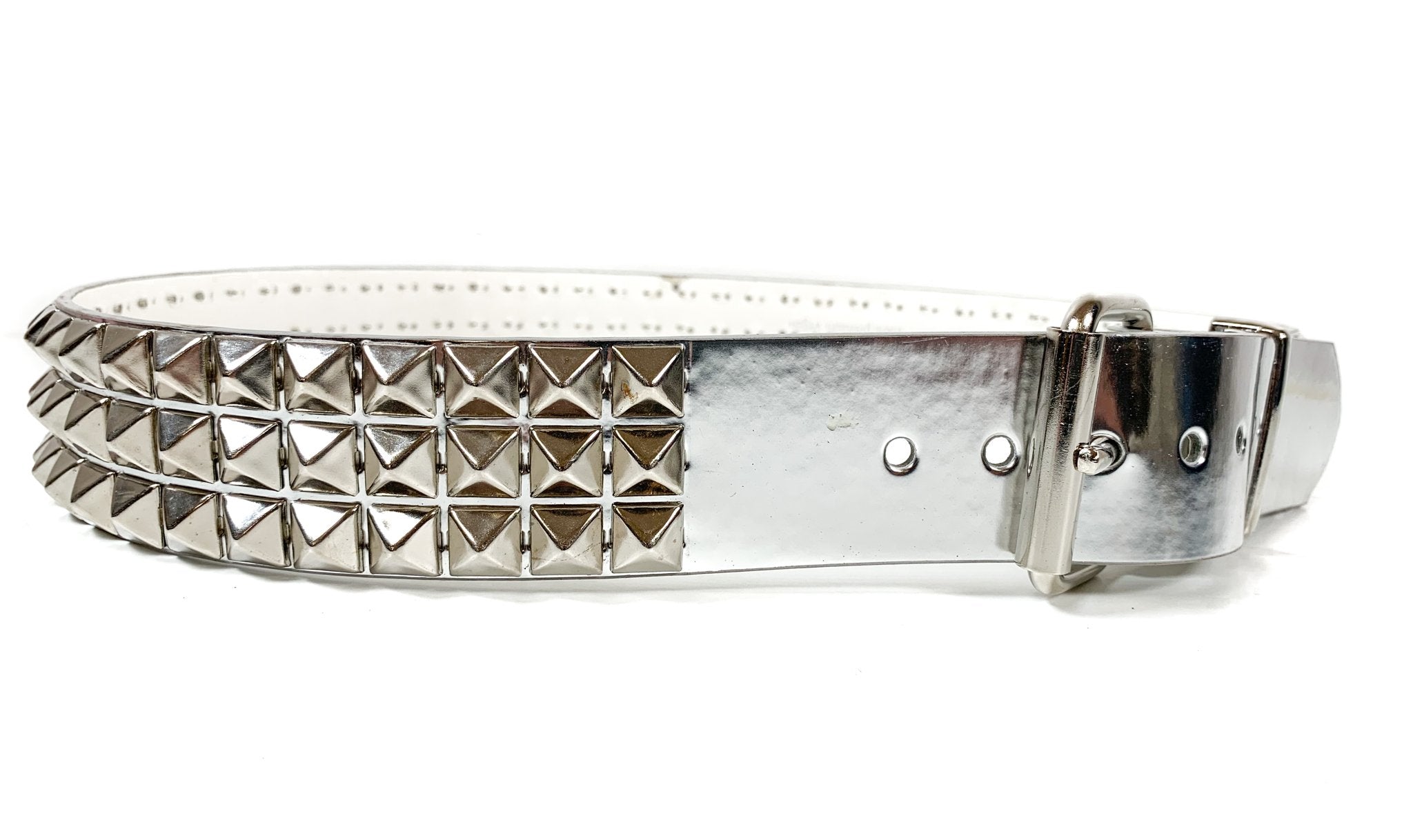 SILVER PATENT 3 ROW 1/2" PYRAMID STUD BELT, 1 3/4" WIDE