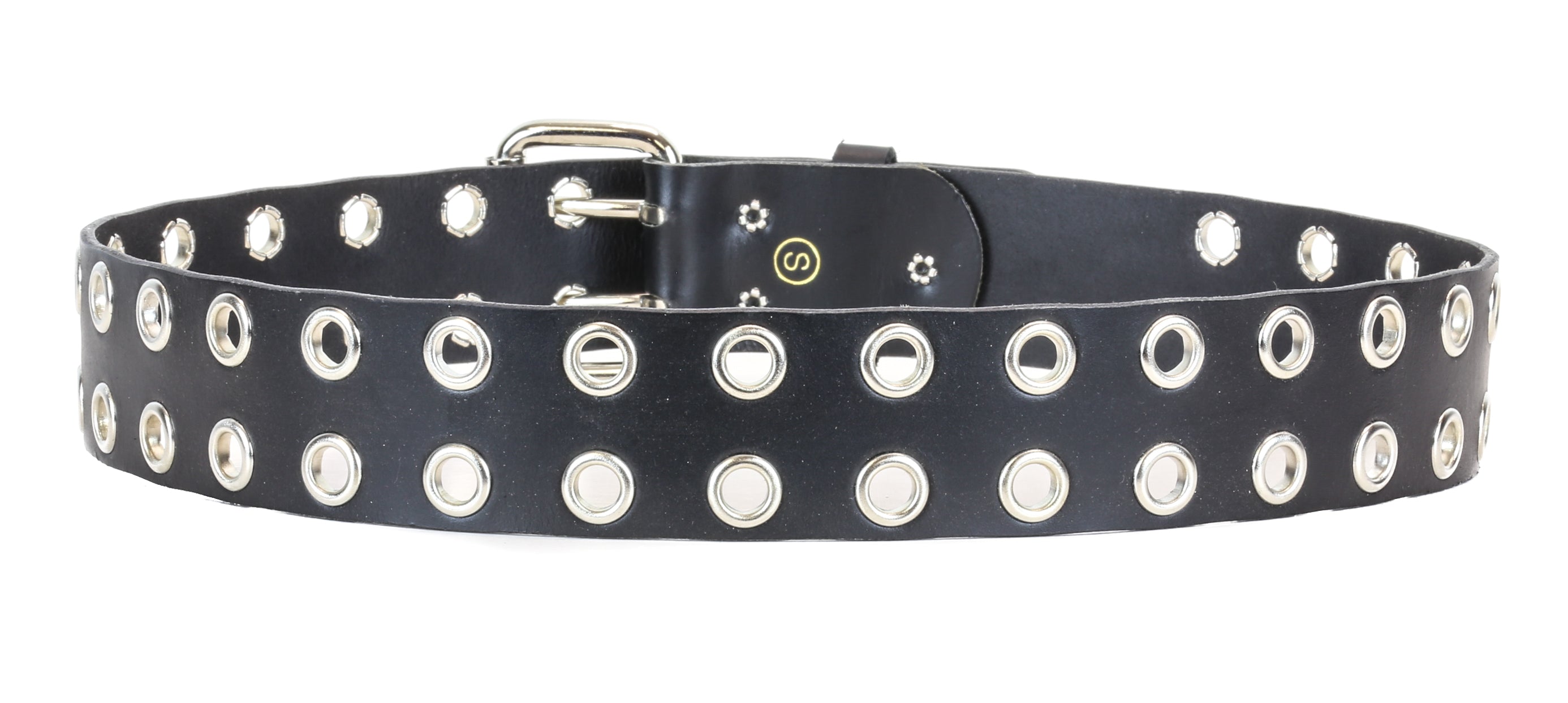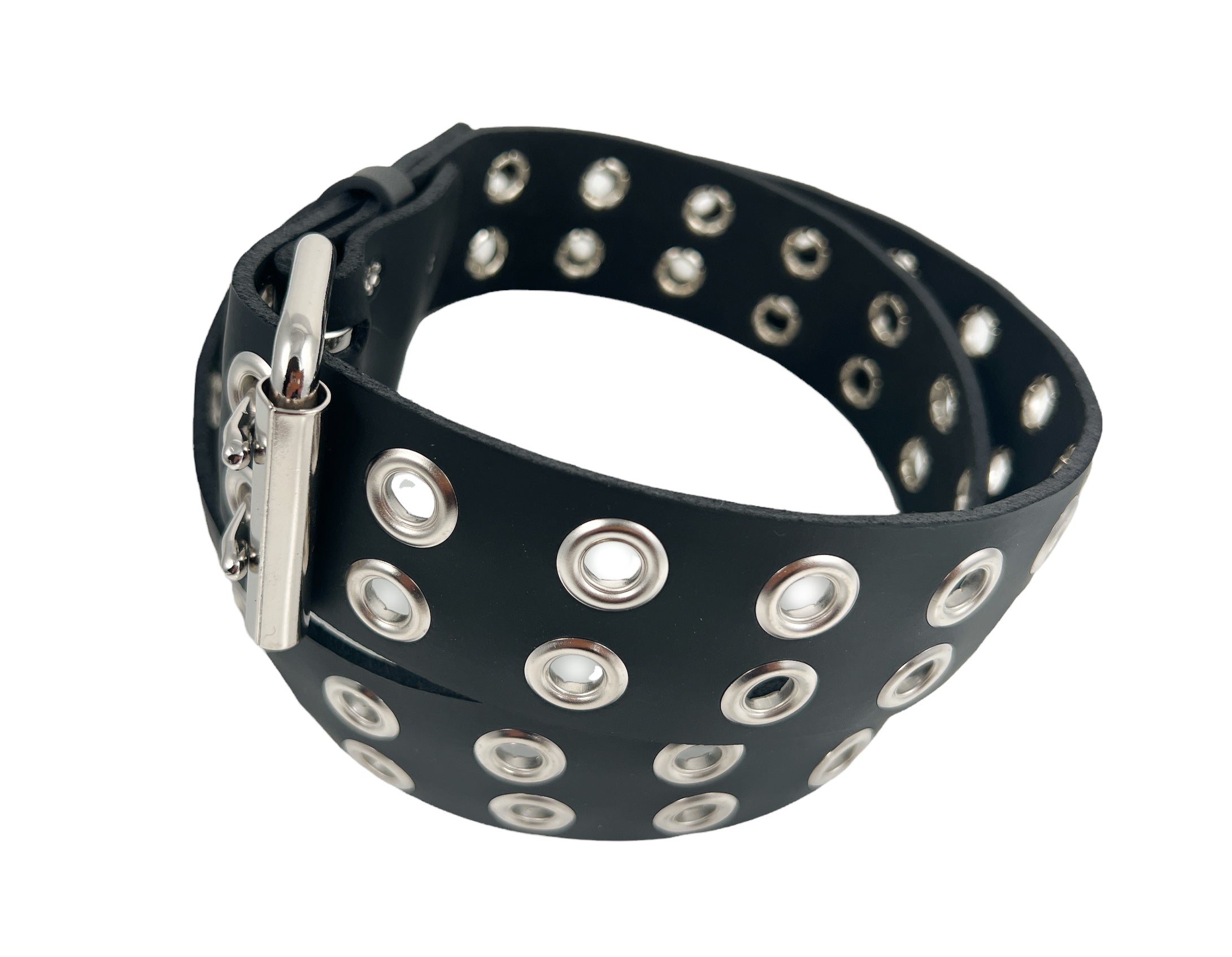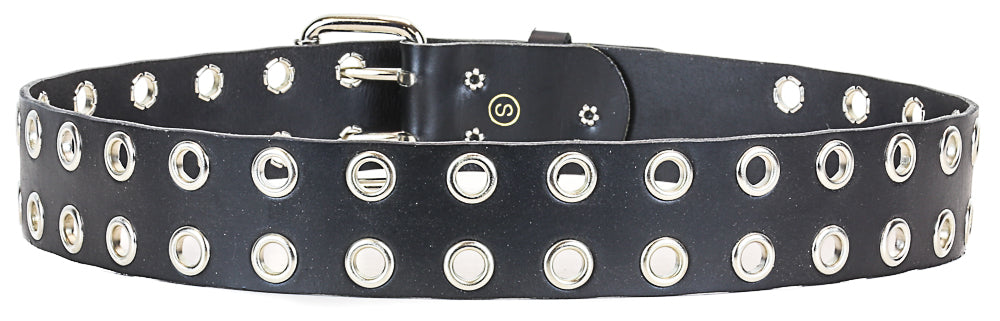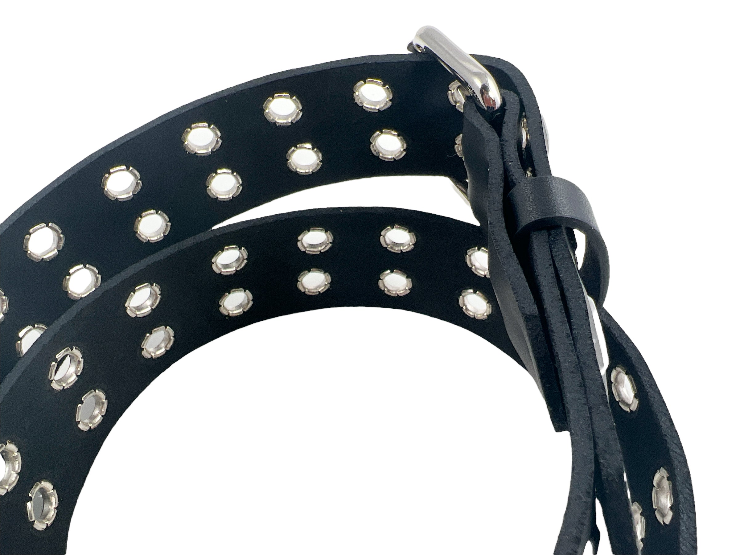 2 Row Grommet Eyelet Uniform Heavy Duty Black Leather Belt