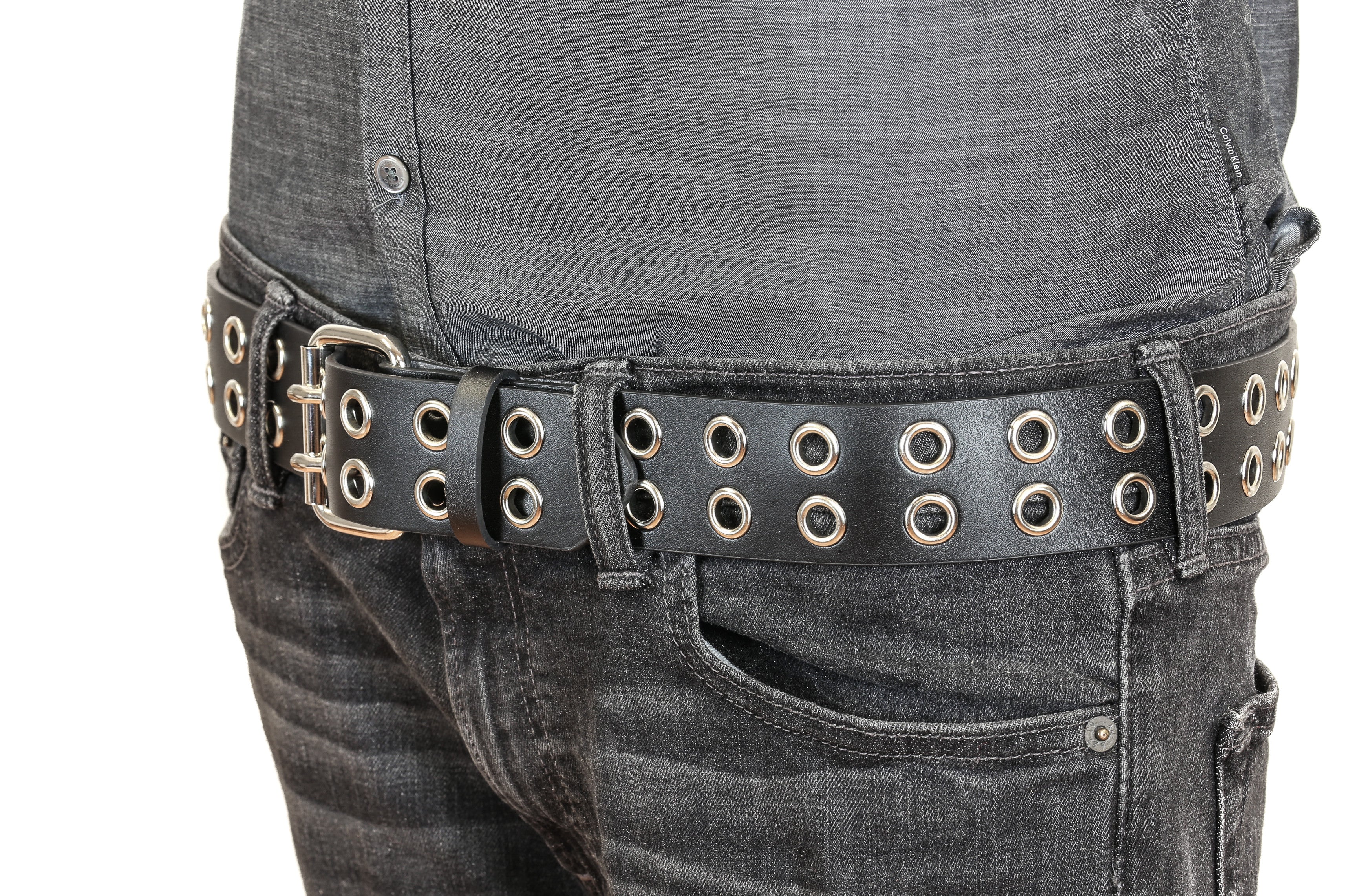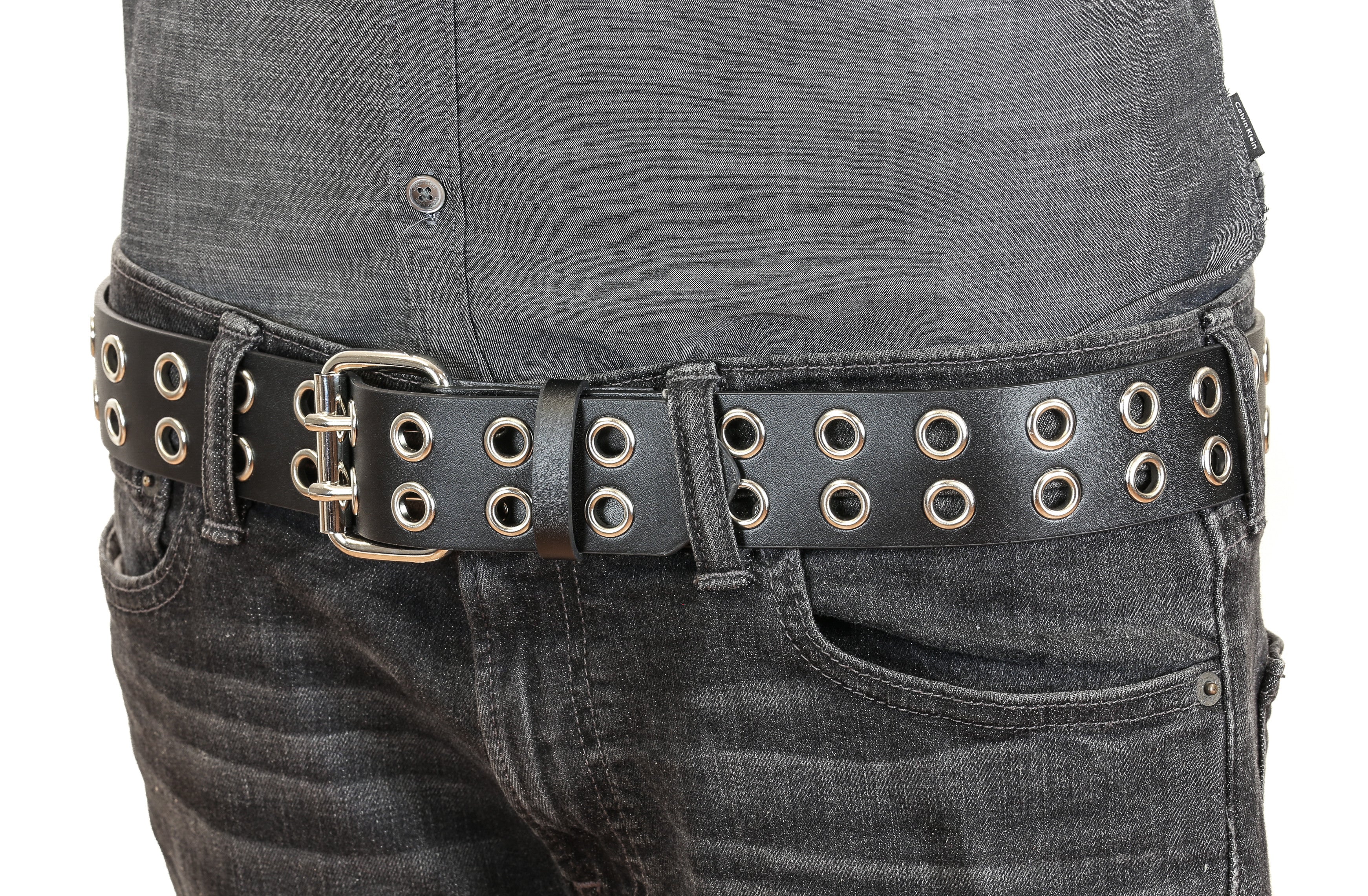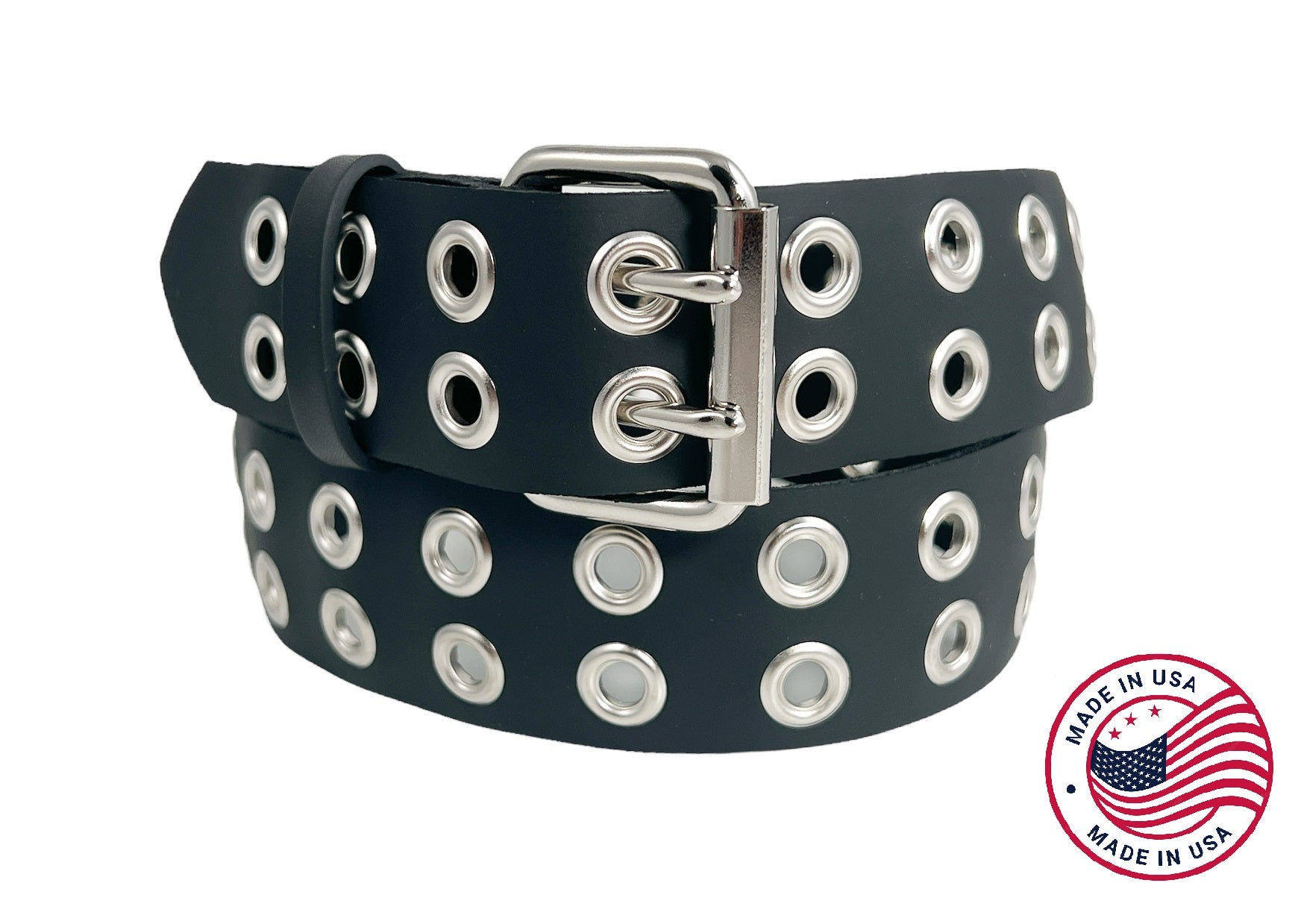 2 Row Grommet Eyelet Uniform Heavy Duty Black Leather Belt