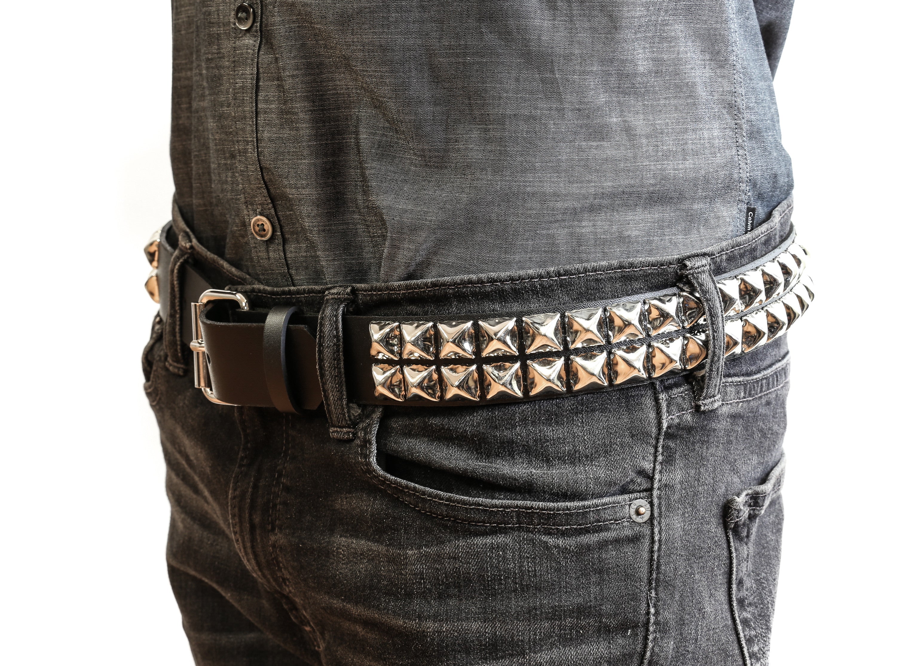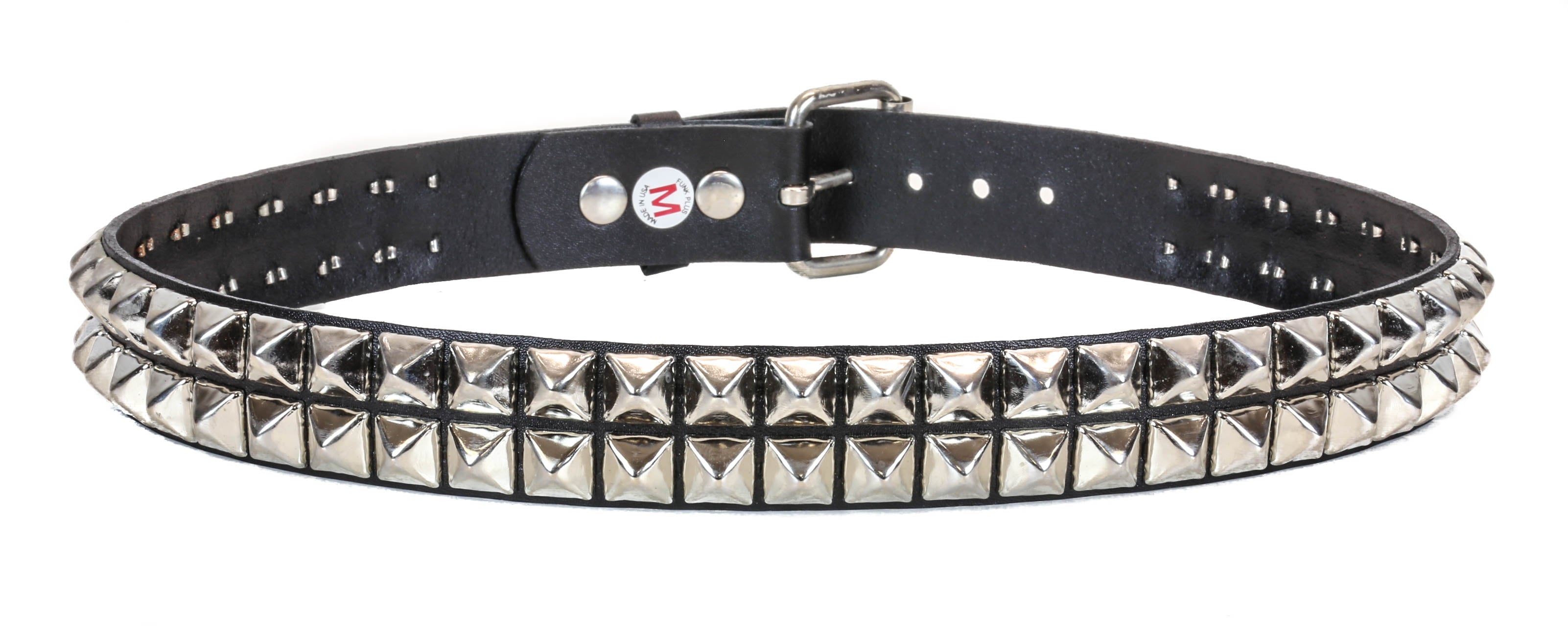 Two Row Pyramid Studded Heavy Duty Black Leather Belt GRADE A