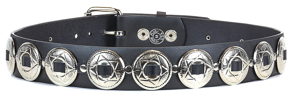 Large Oval Concho Heavy Duty Black Leather Belt