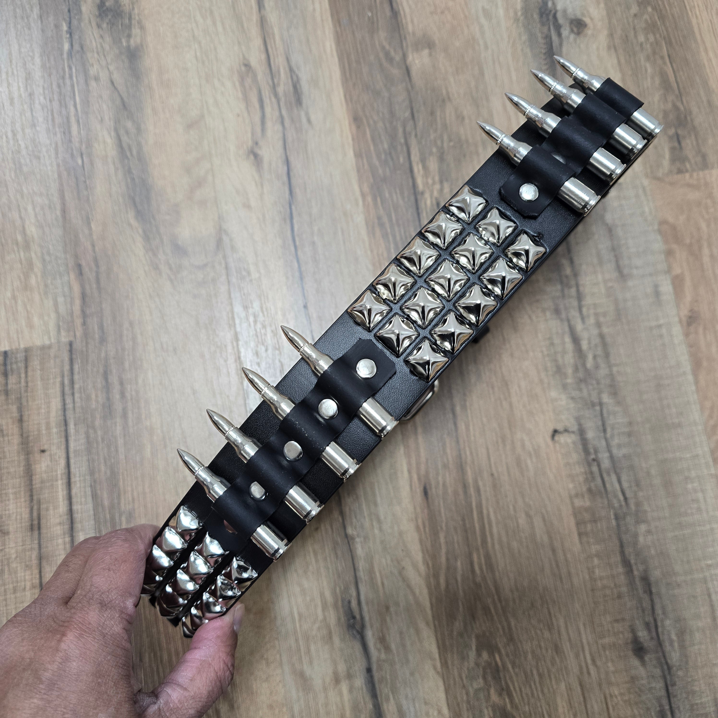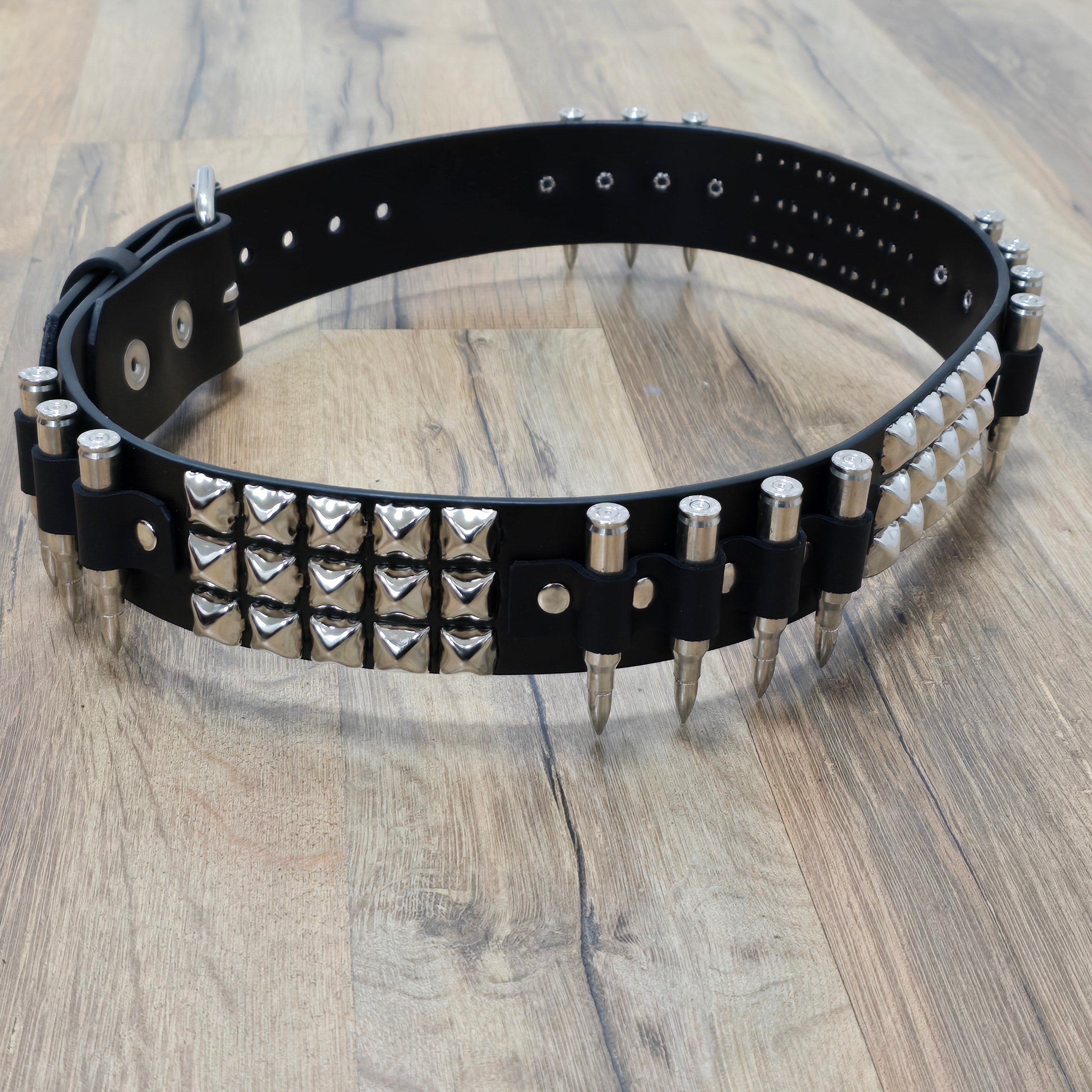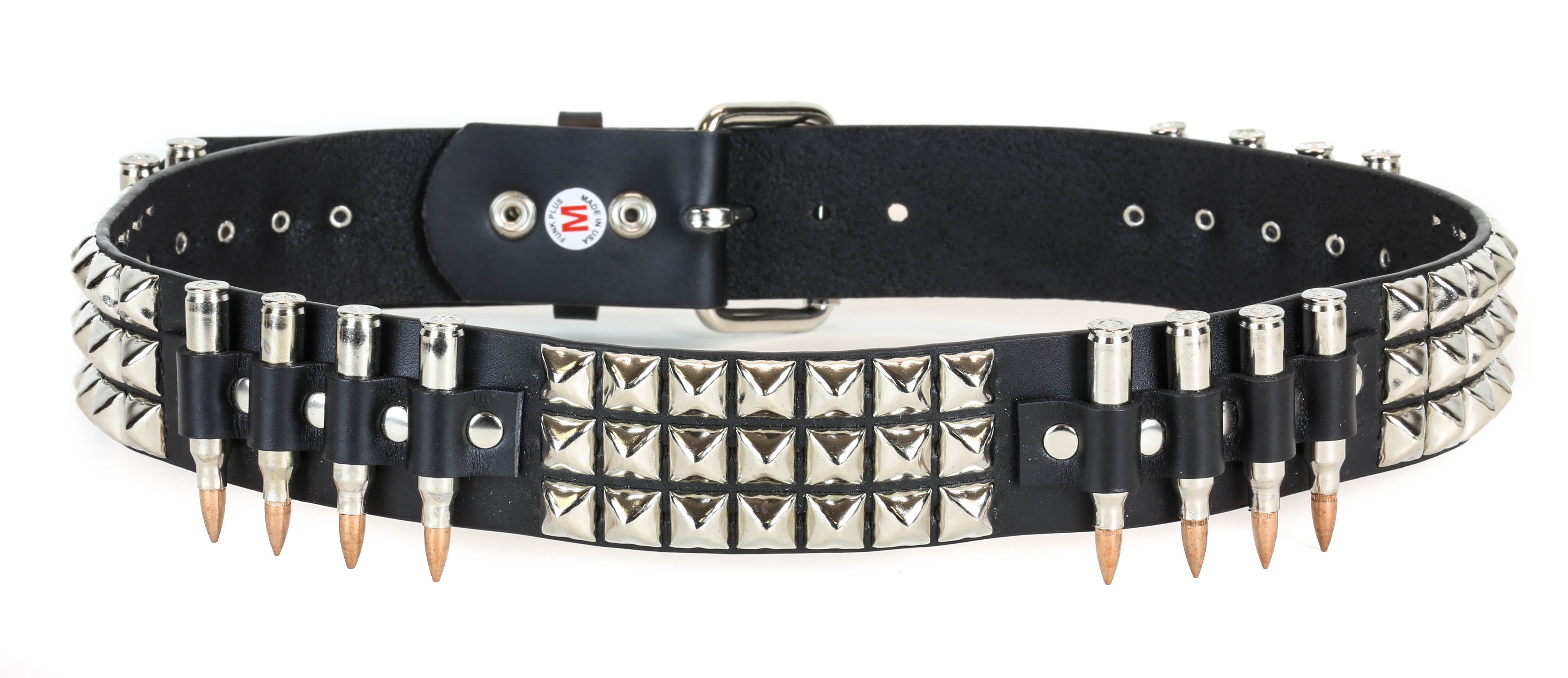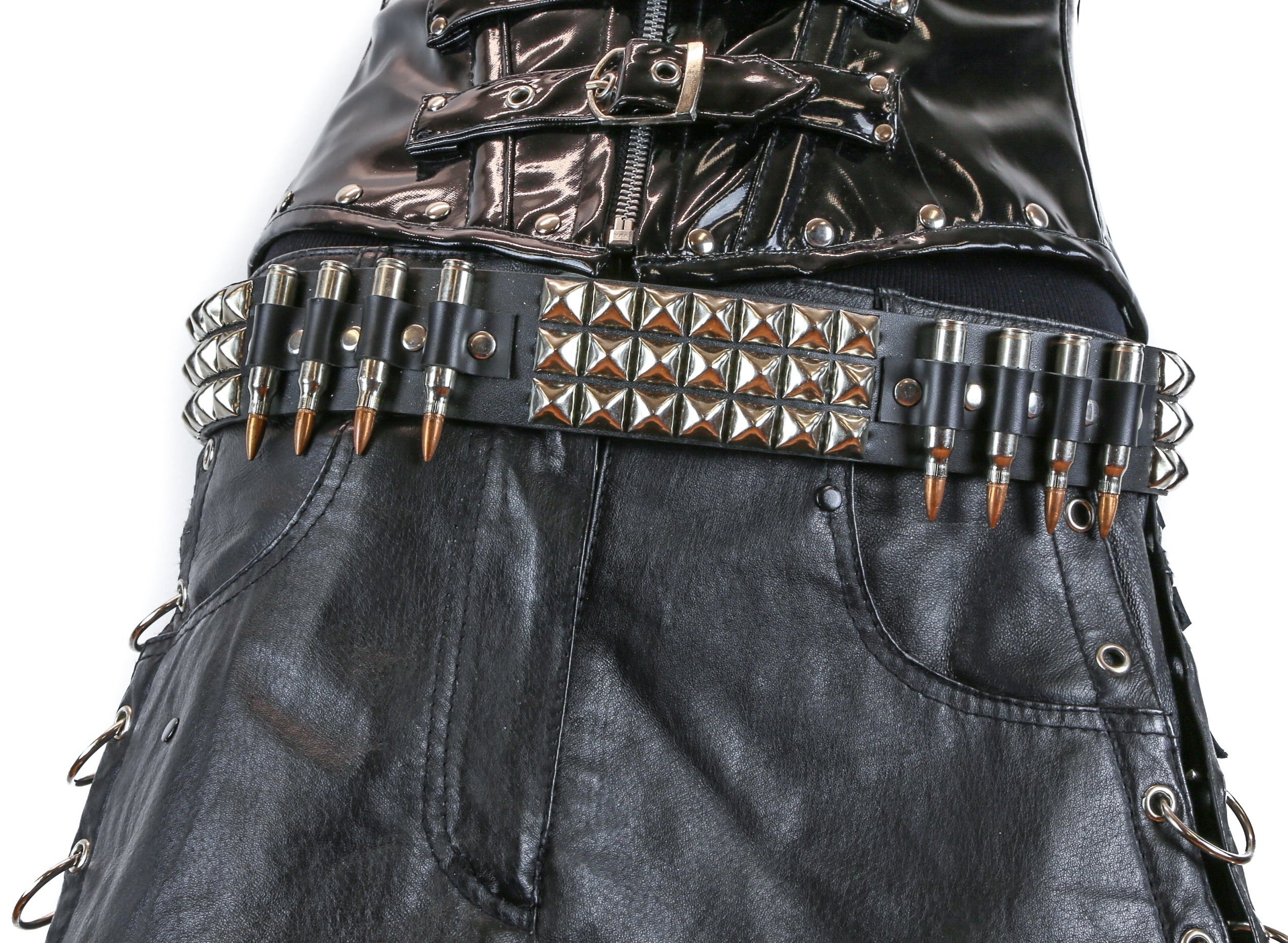 Real Bullet Bondage M16 Nickel Shell Leather Belt By Funk Plus