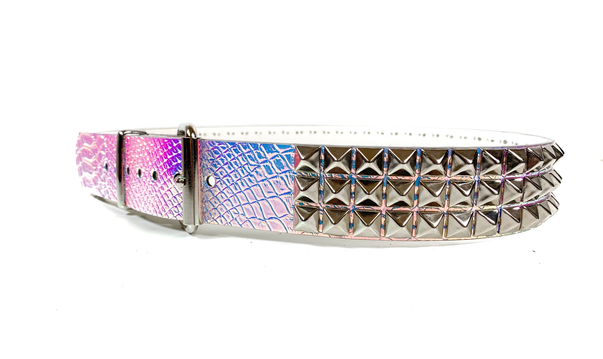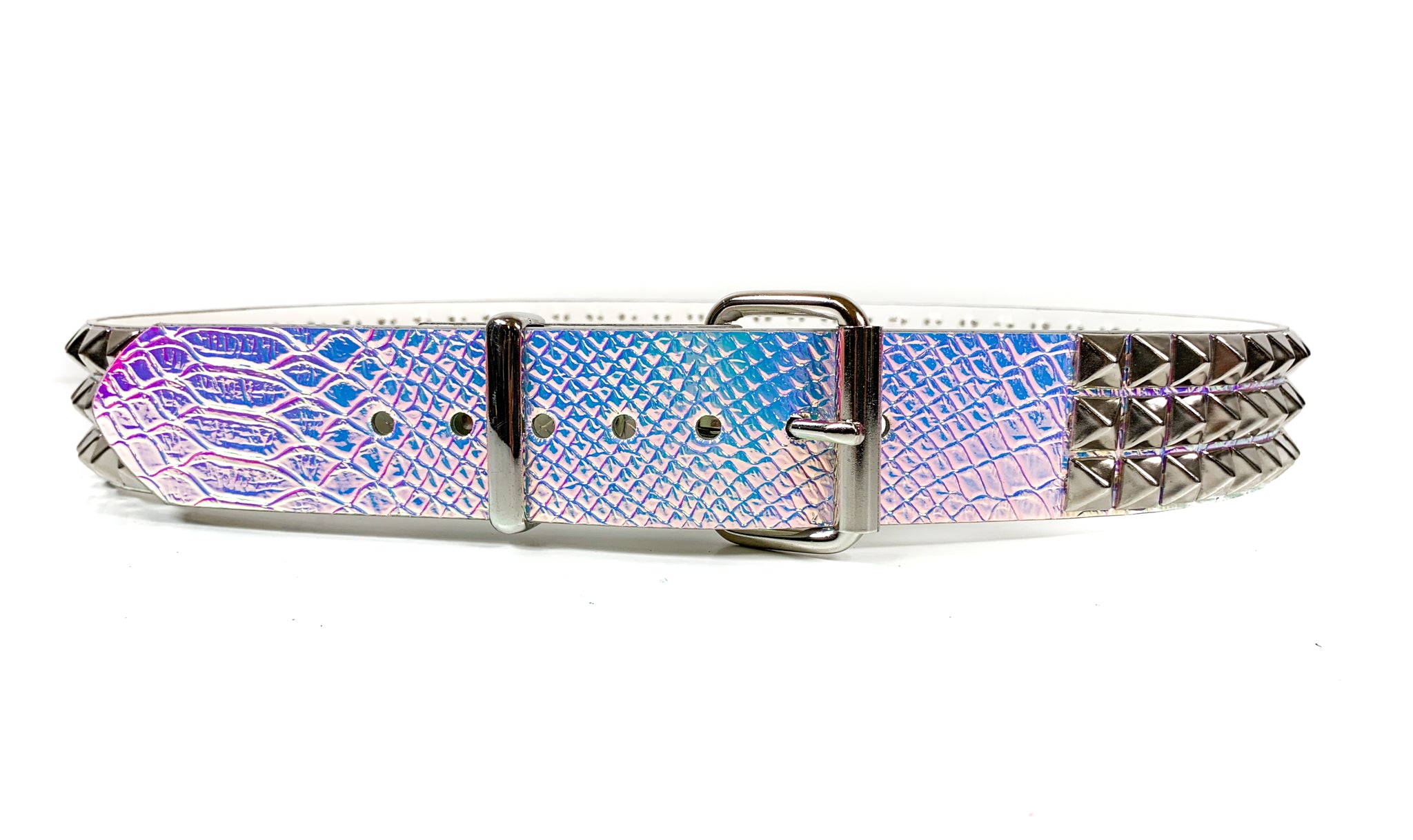 Snake Rainbow Vegan 3 Row Silver Pyramid Studded Belt By Funk Plus