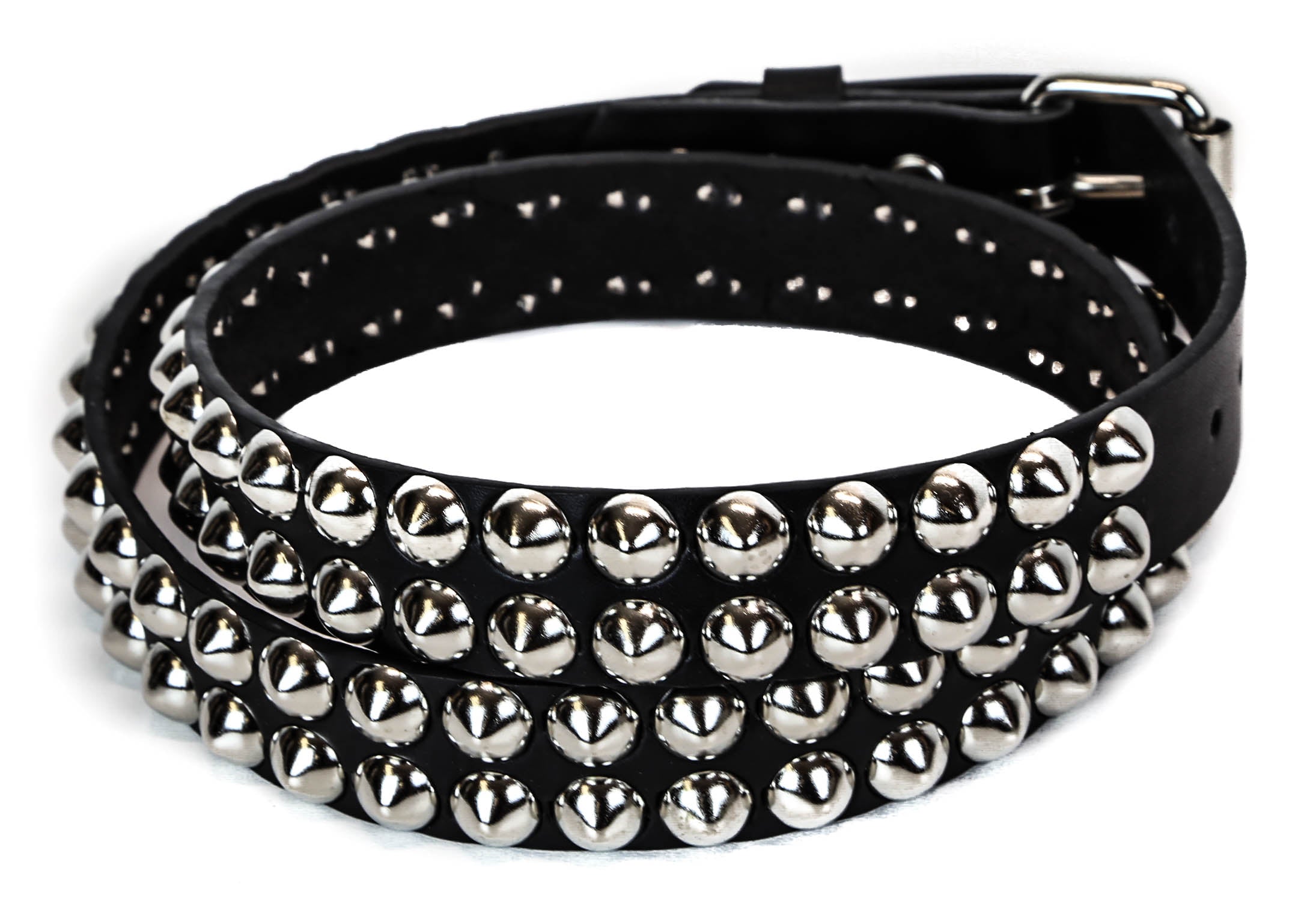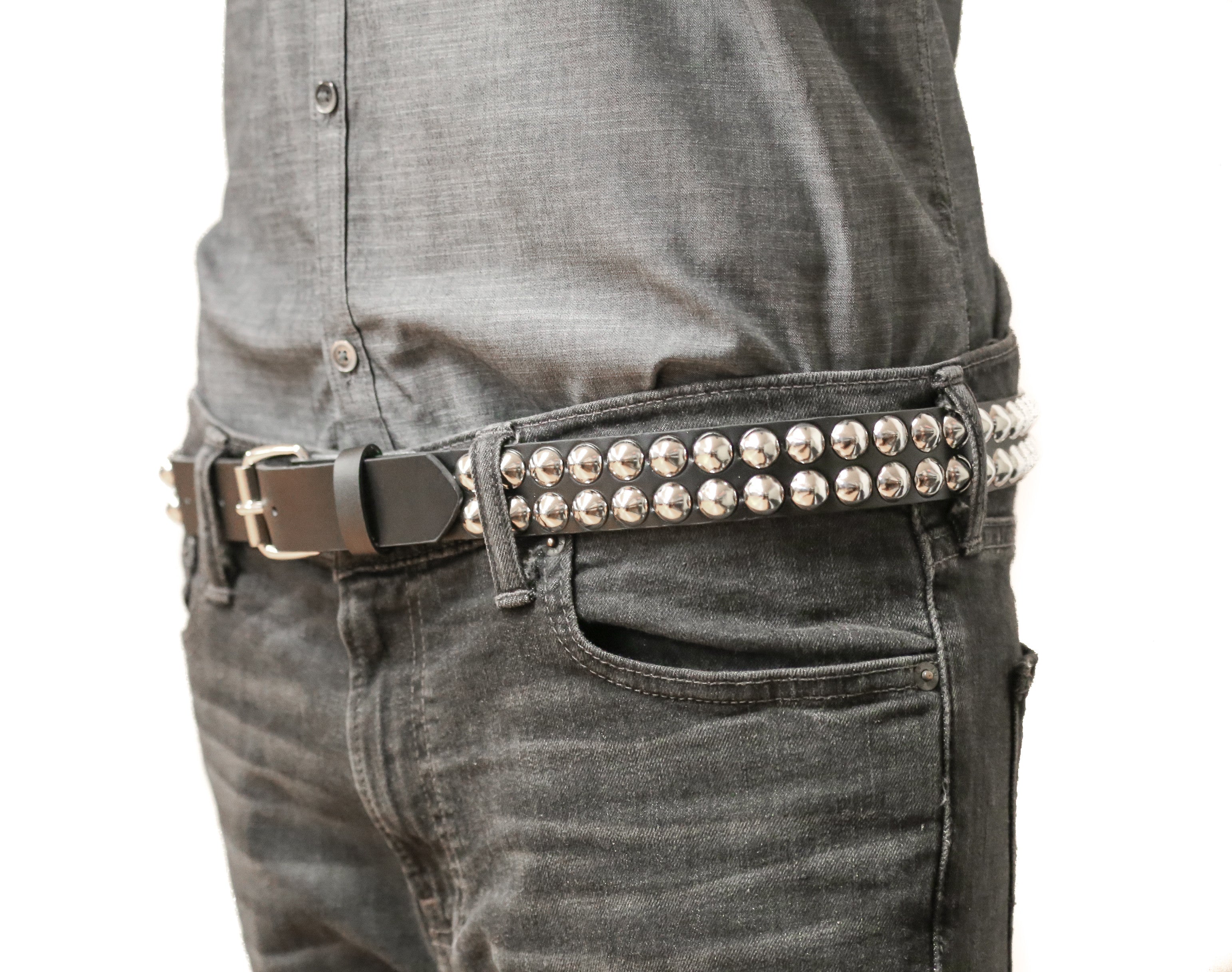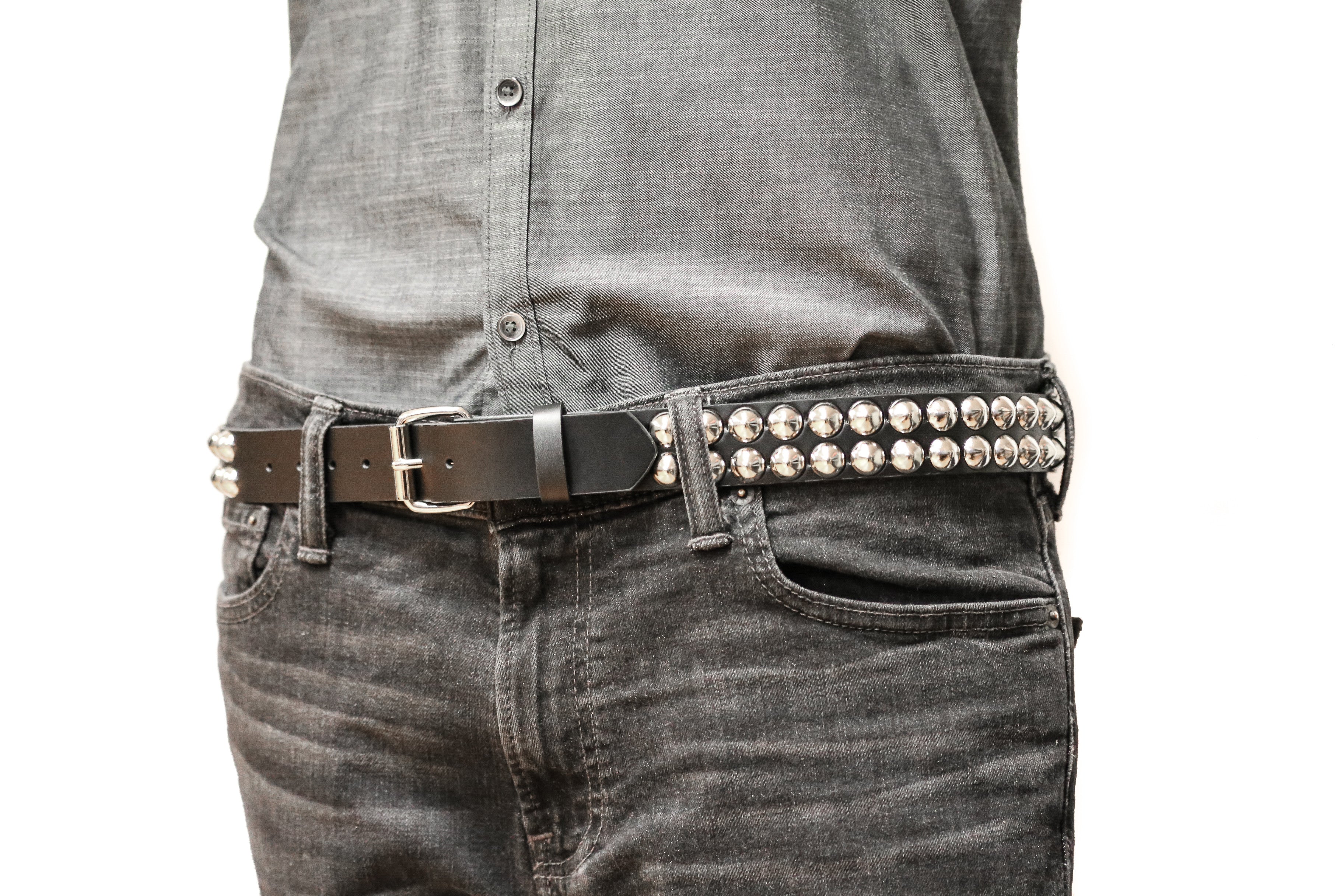 Two Row Conical Studded Heavy Duty Black Leather Belt