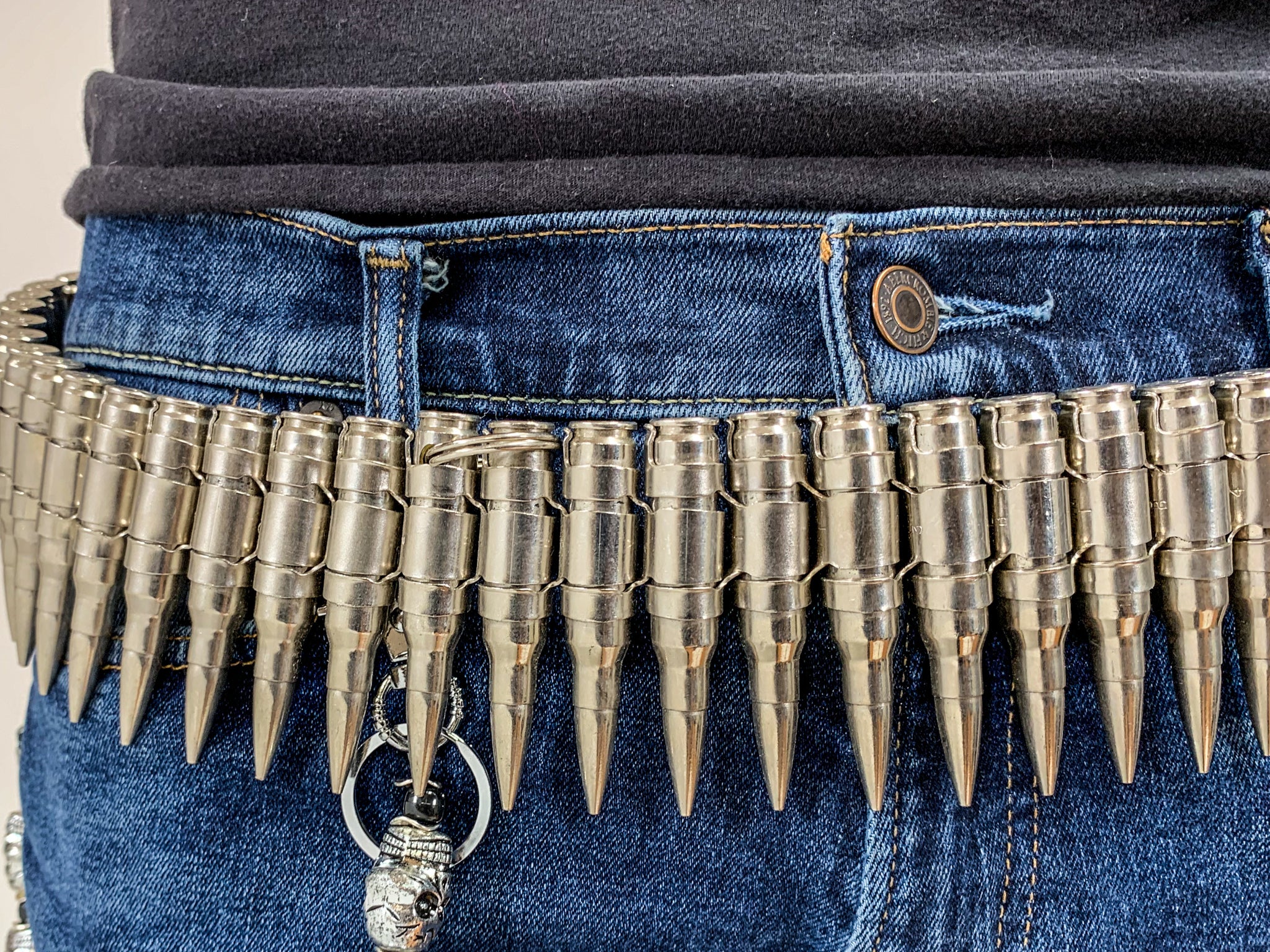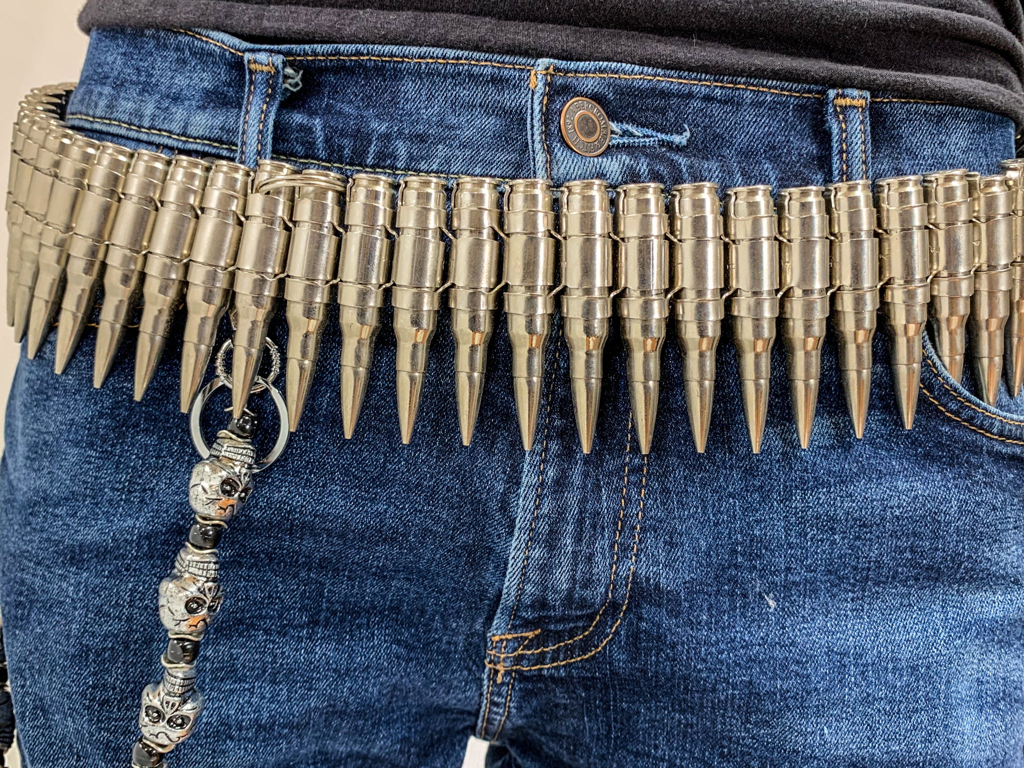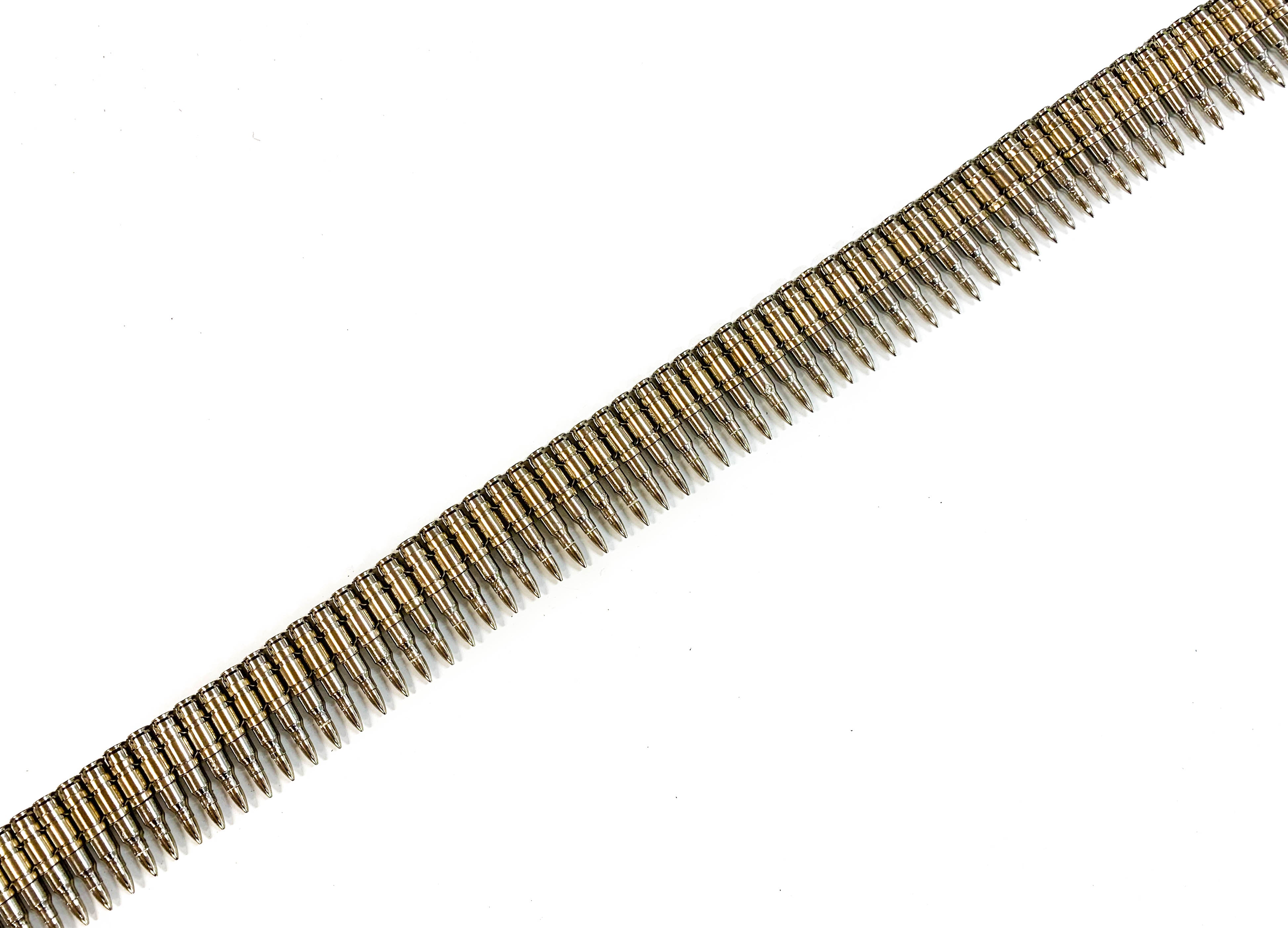 Full Nickel M16 .223 Caliber Bullet Belt Nickel Shell Nickel Tips Nickel 'X' Link