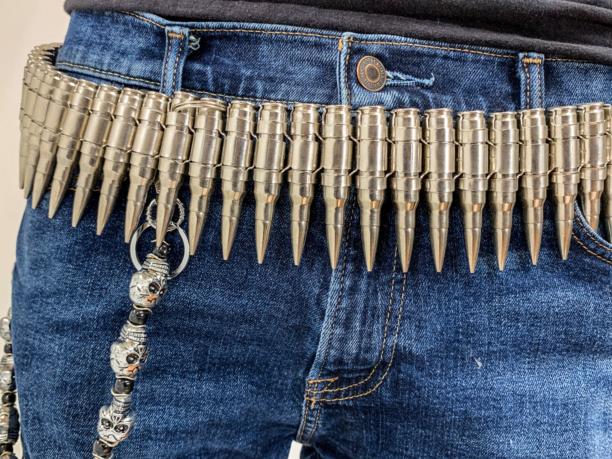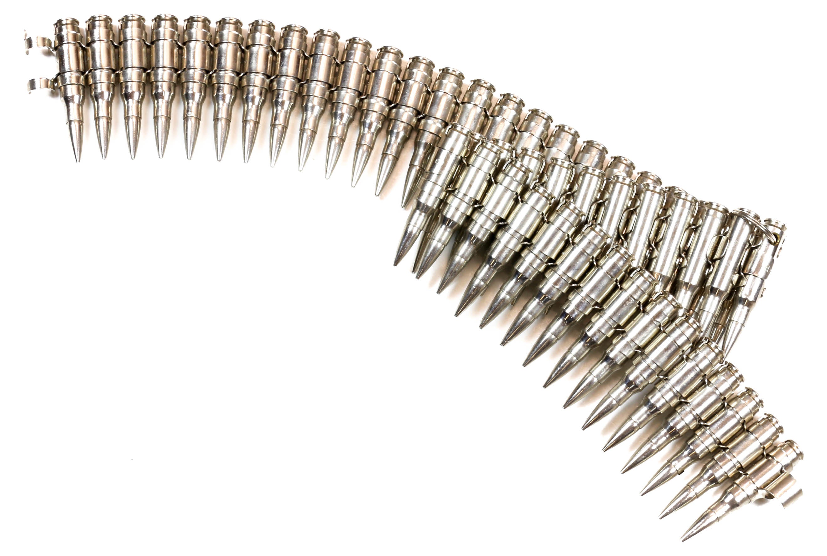 Full Nickel 3" Real Bullet Belt .308 Caliber Nickel Shell Nickel Tips M60 Nickel Link