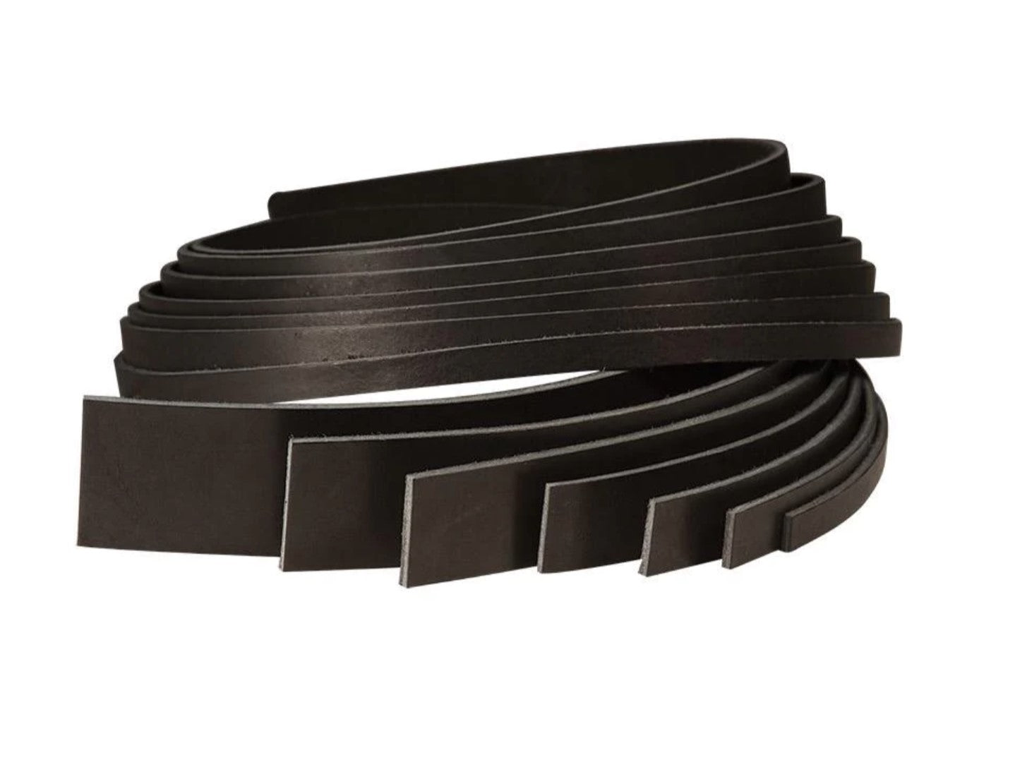 7/8 Oz Weight 3-4mm Thickness. Perfect for making a leather belt, guitar strap, rifle sling, luggage strap, and more. No snaps attached. Width indicates buckle size needed.