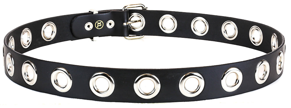 Large Grommet Eyelet Heavy Duty Black Leather Belt