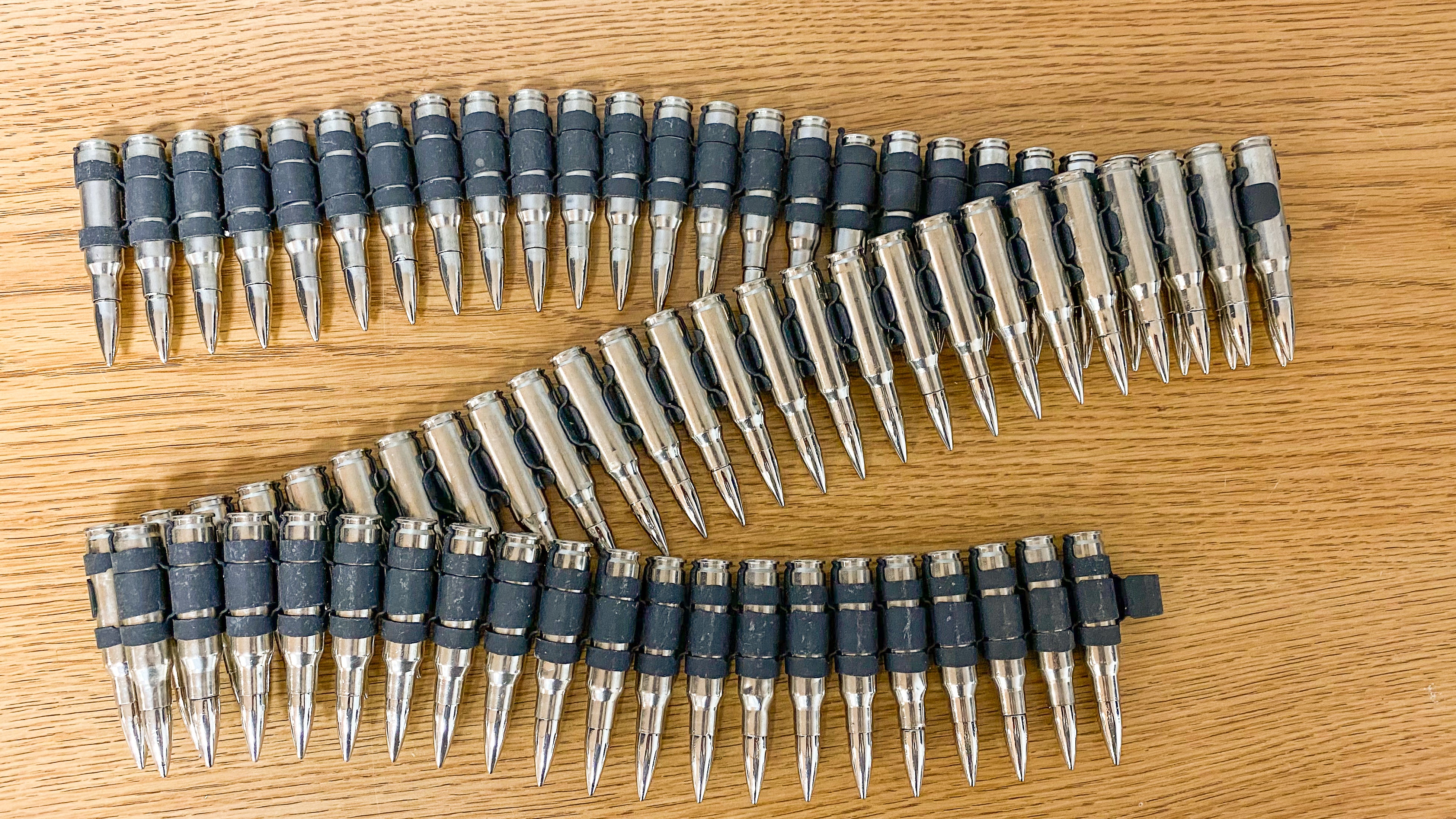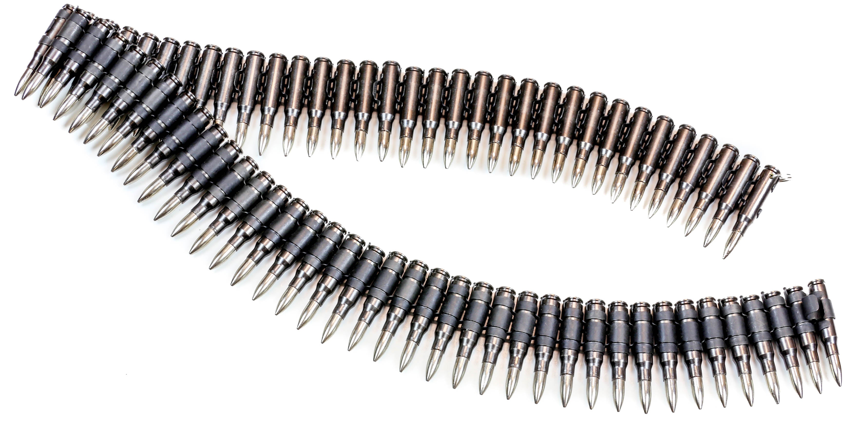 M16 .223 Caliber Bullet Belt Nickel Shell Nickel Tips Black 'X' Link