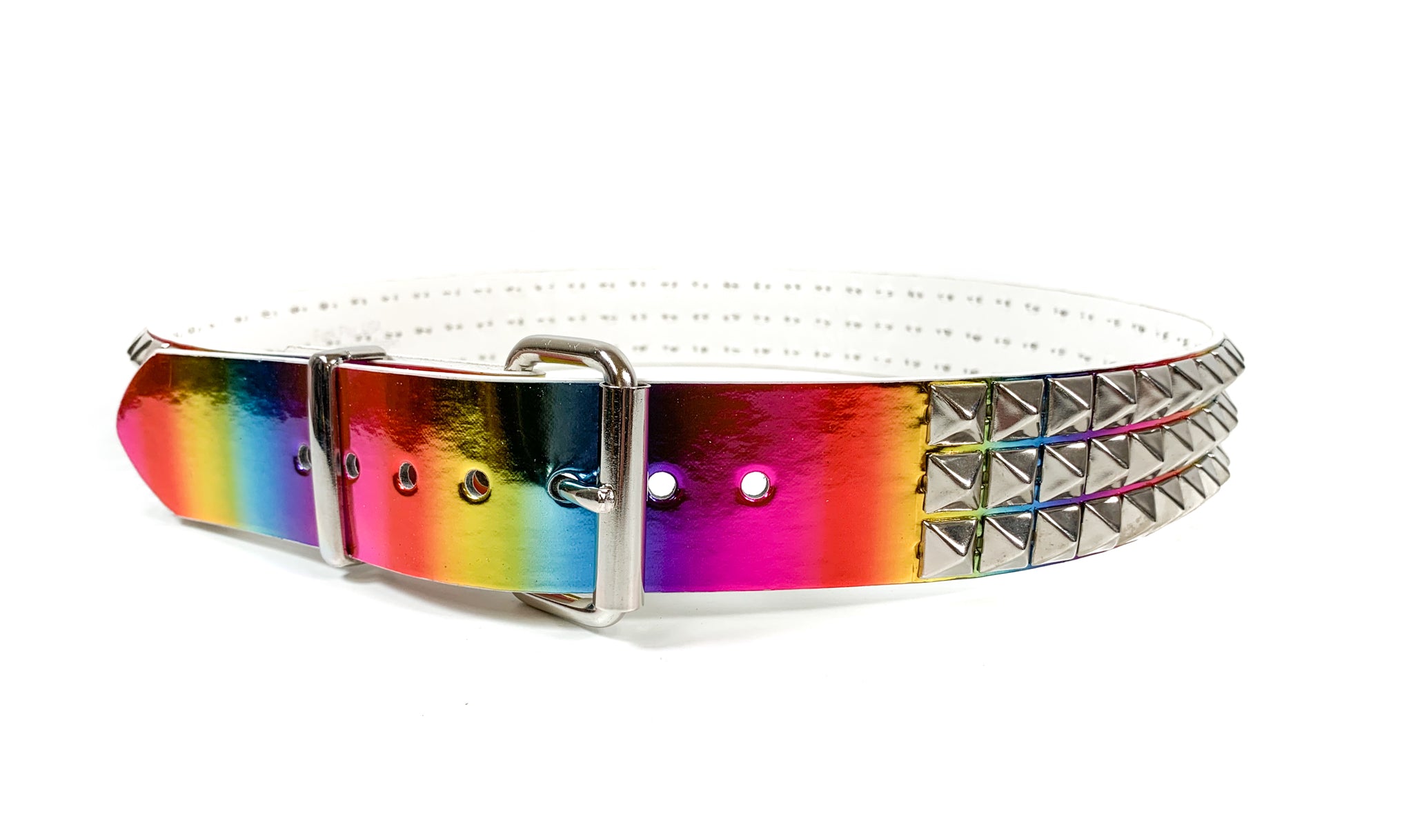Multi Rainbow Vegan 3 Row Silver Pyramid Studded Belt By Funk Plus