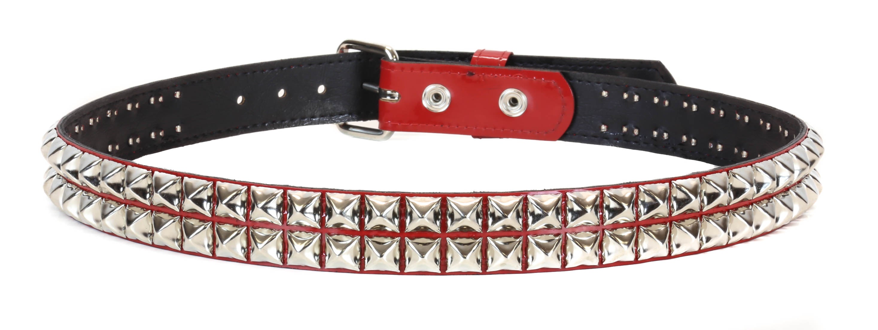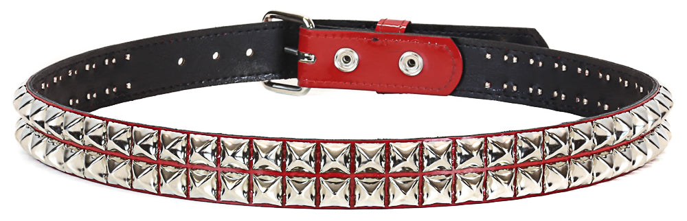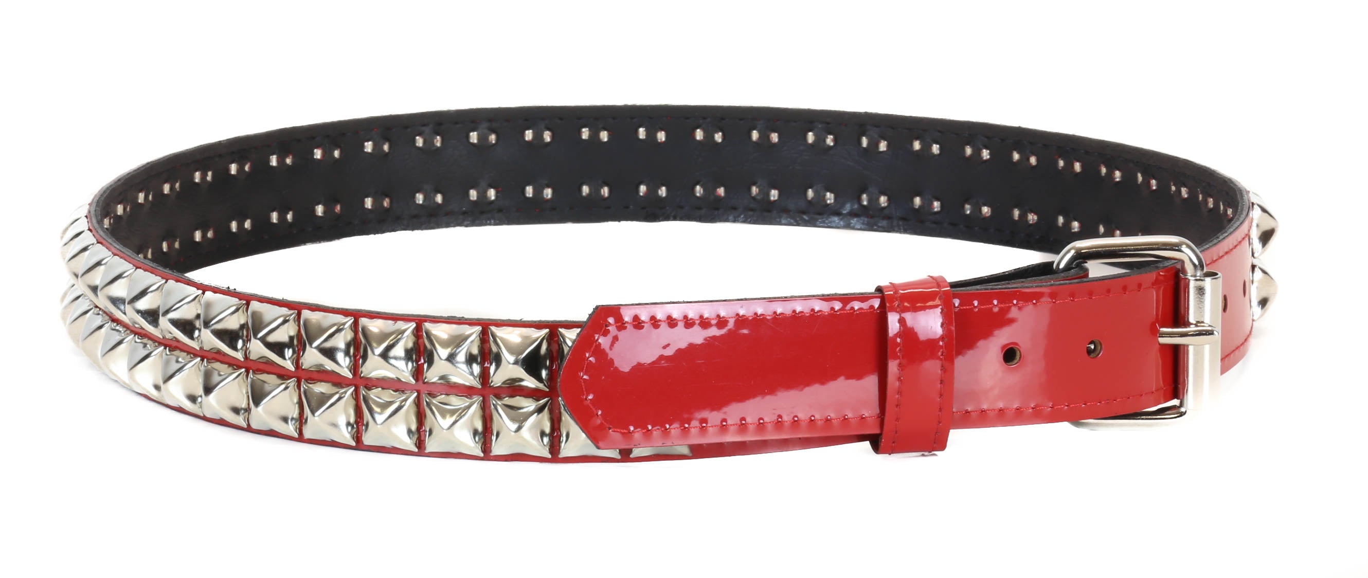 Red Patent 2 Row Studded Punk Influenced Belt By Funk Plus