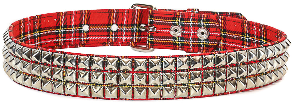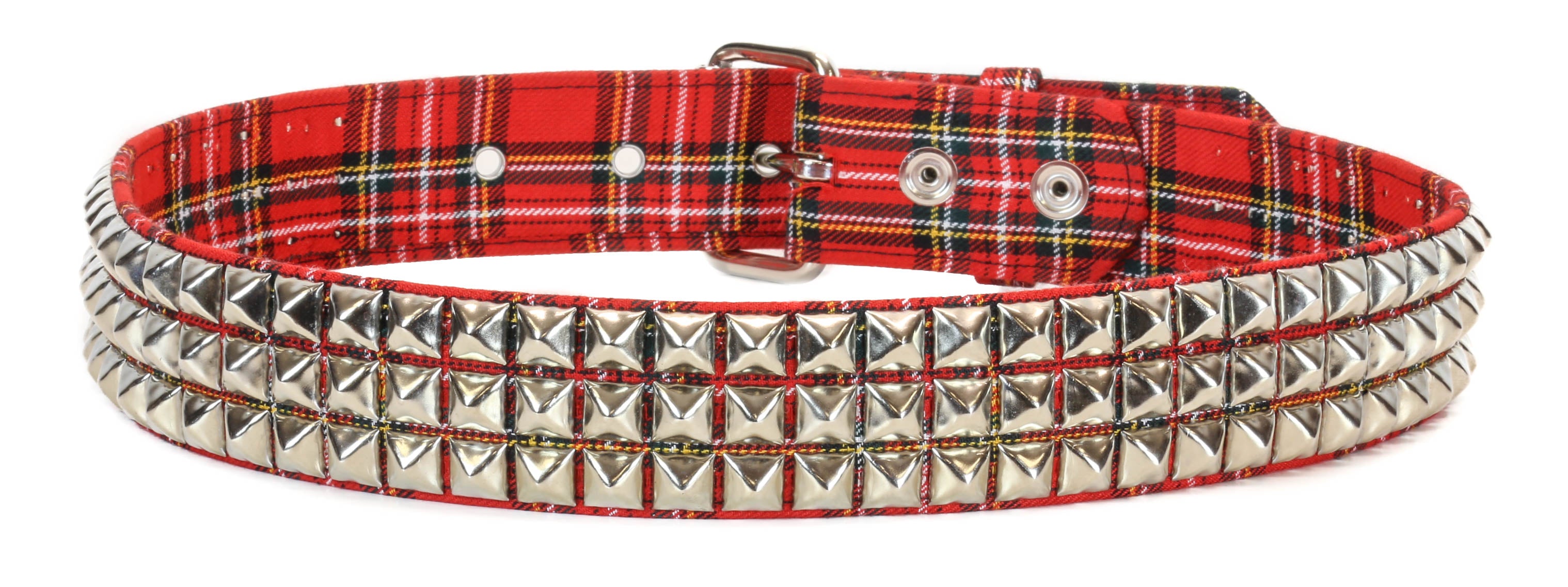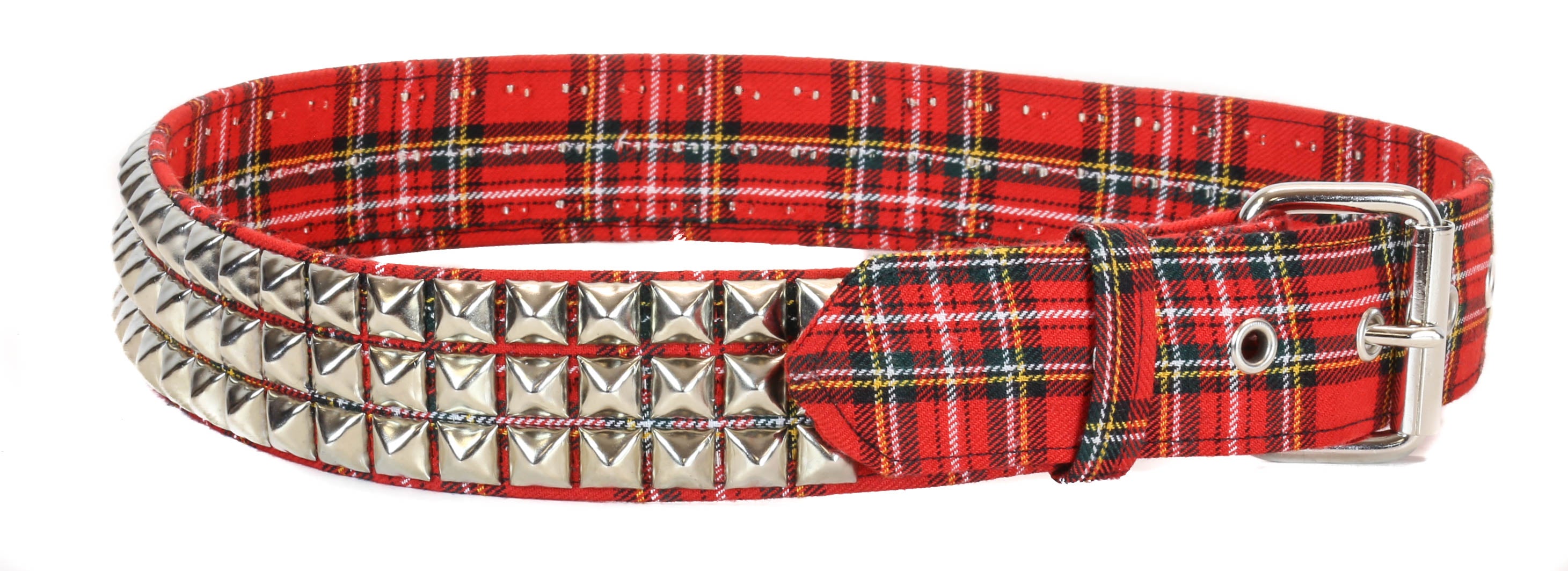 Red Plaid 3 Row Studded Punk Influenced Belt By Funk Plus