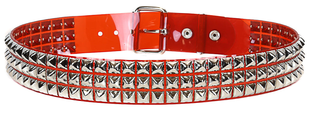 Red Vinyl Black 3 Row Studded Punk Influenced Belt By Funk Plus