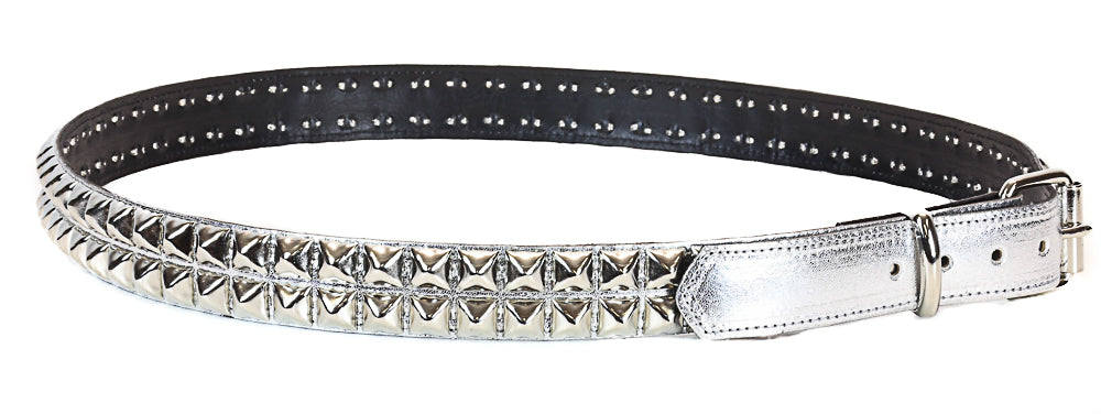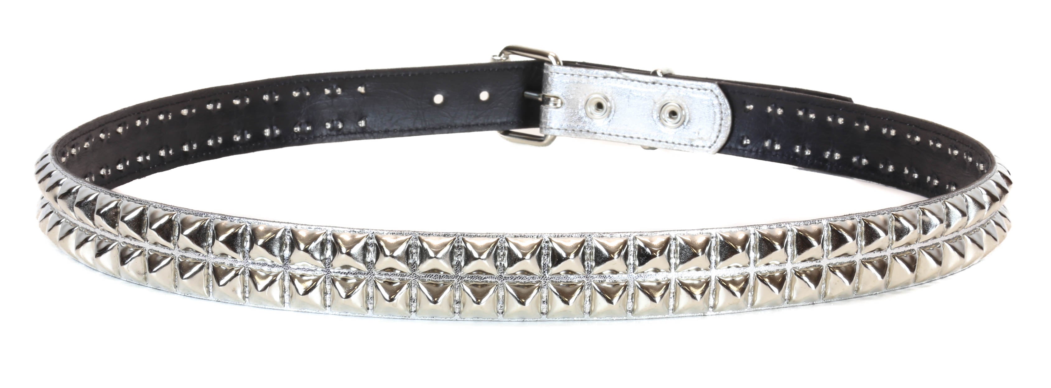 Silver Patent 2 Row Studded Punk Influenced Belt By Funk Plus