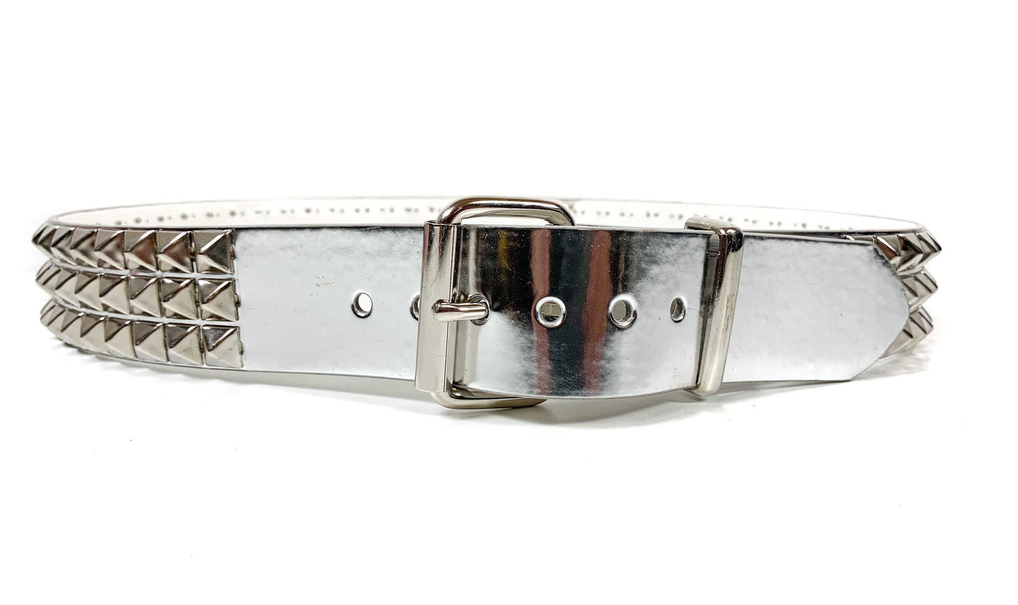 Silver Patent Vegan 3 Row Silver Pyramid Studded Belt By Funk Plus