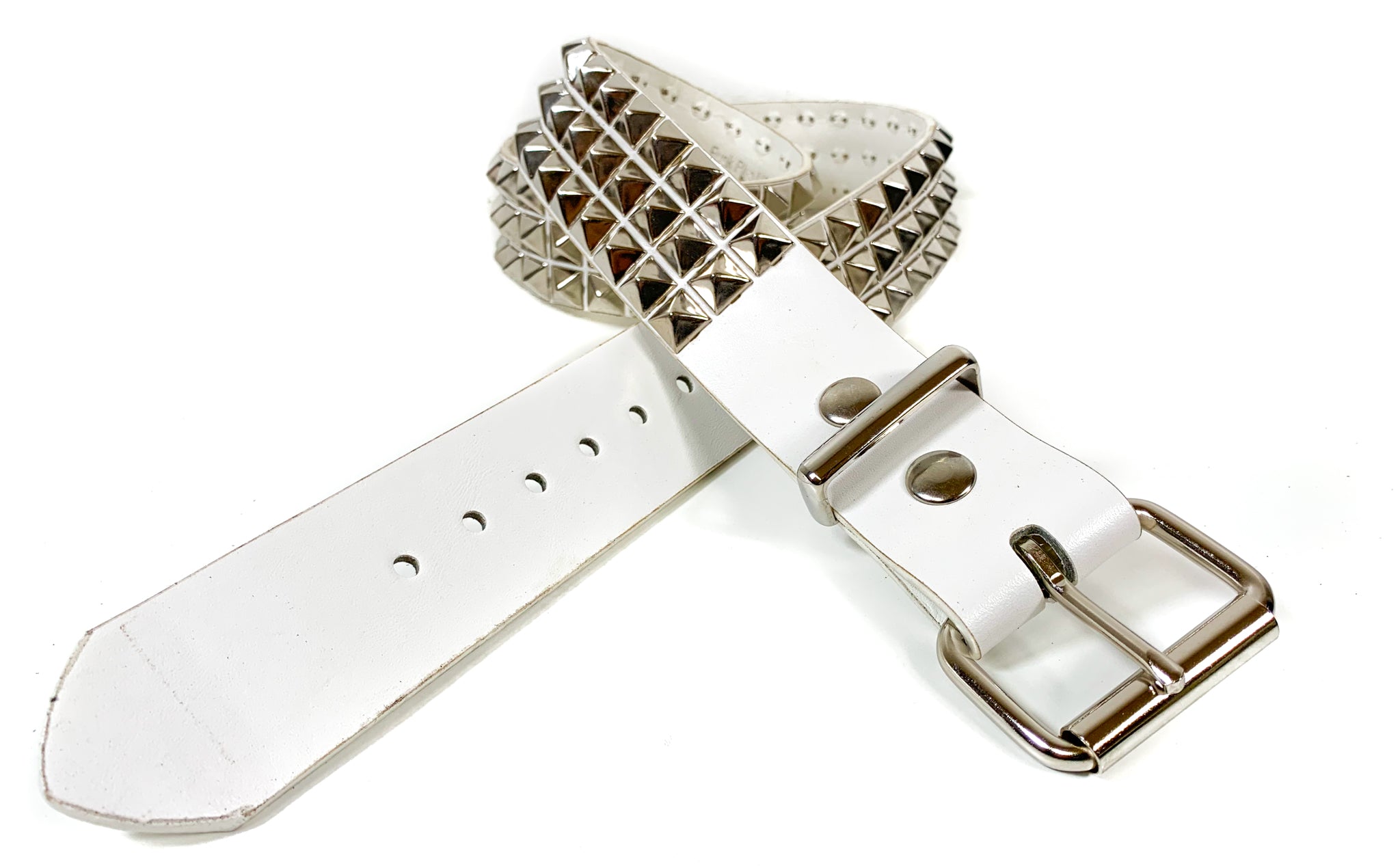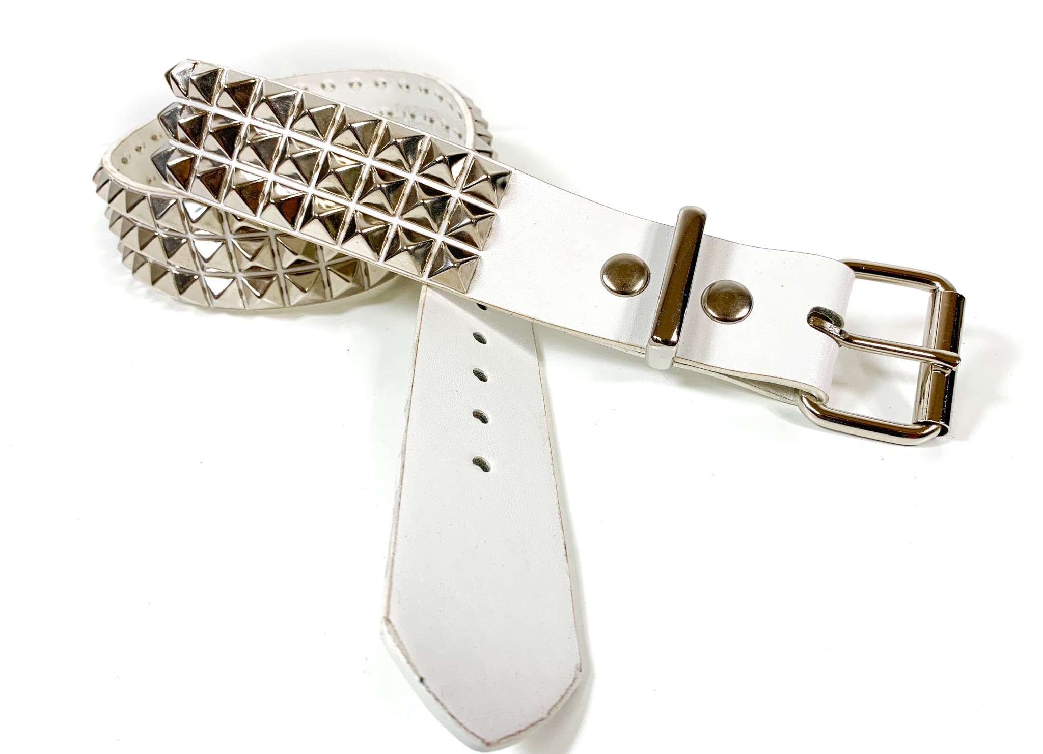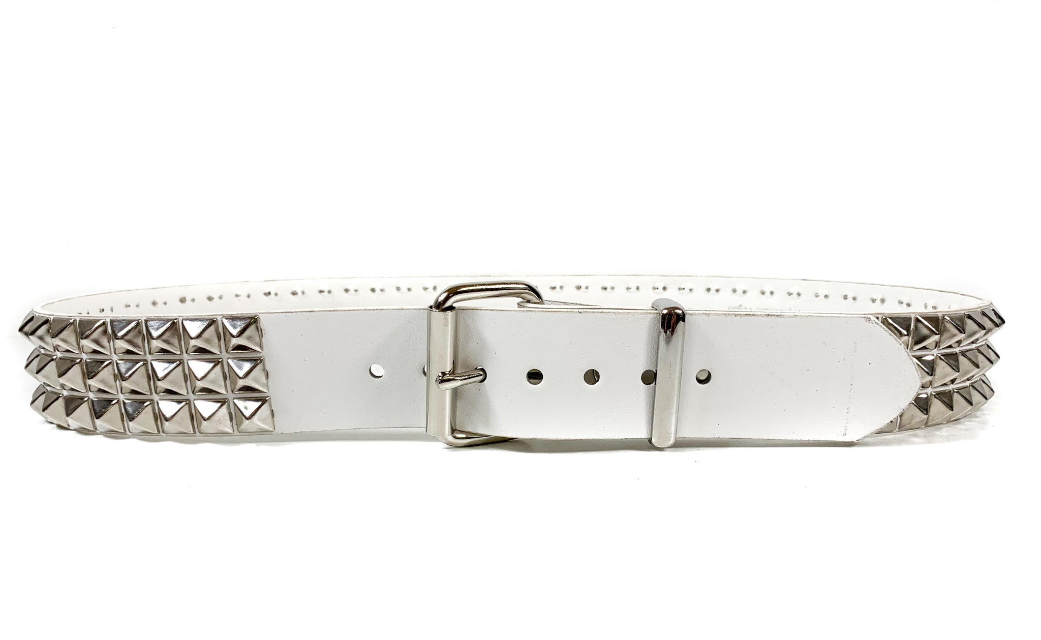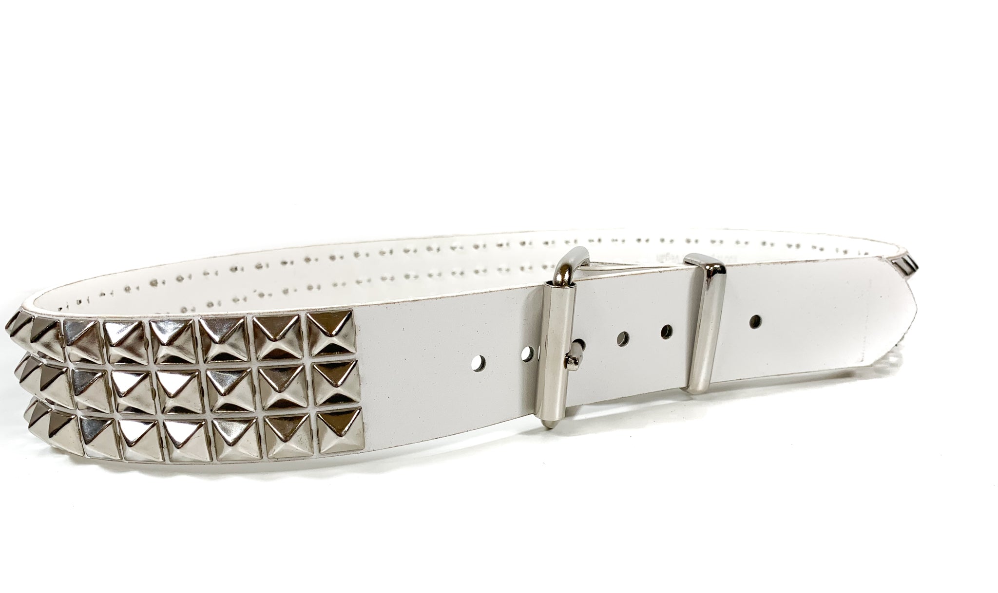 White Matt Vegan 3 Row Silver Pyramid Studded Belt By Funk Plus