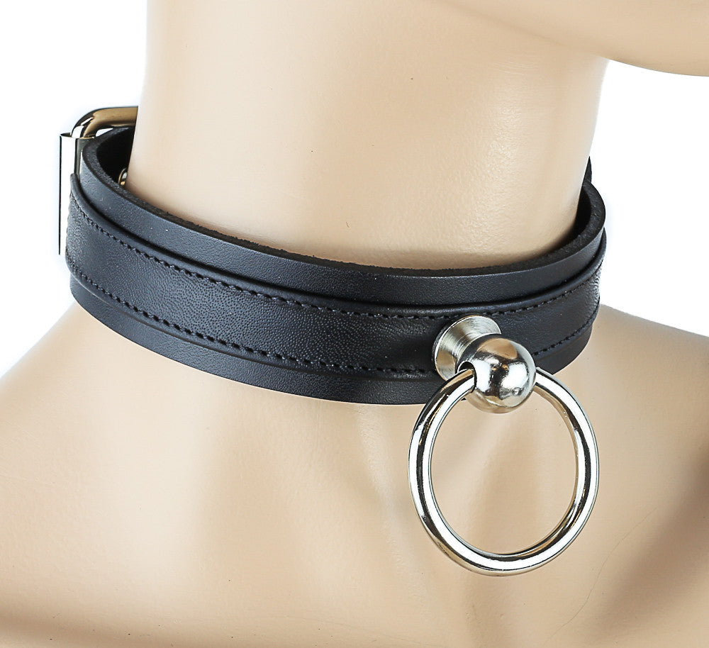 Bondage Banded Black Choker with Silver O Ring and Buckle