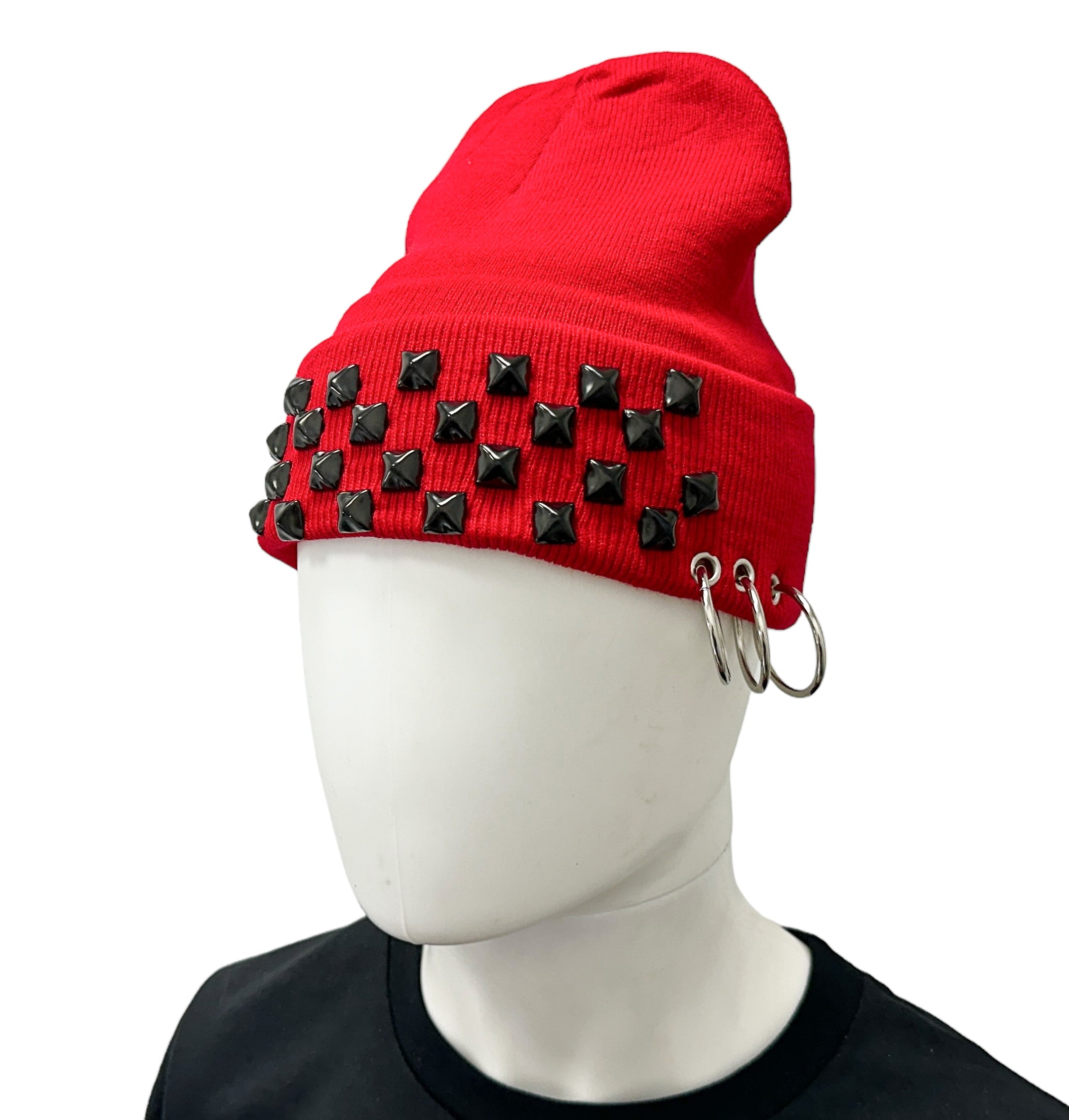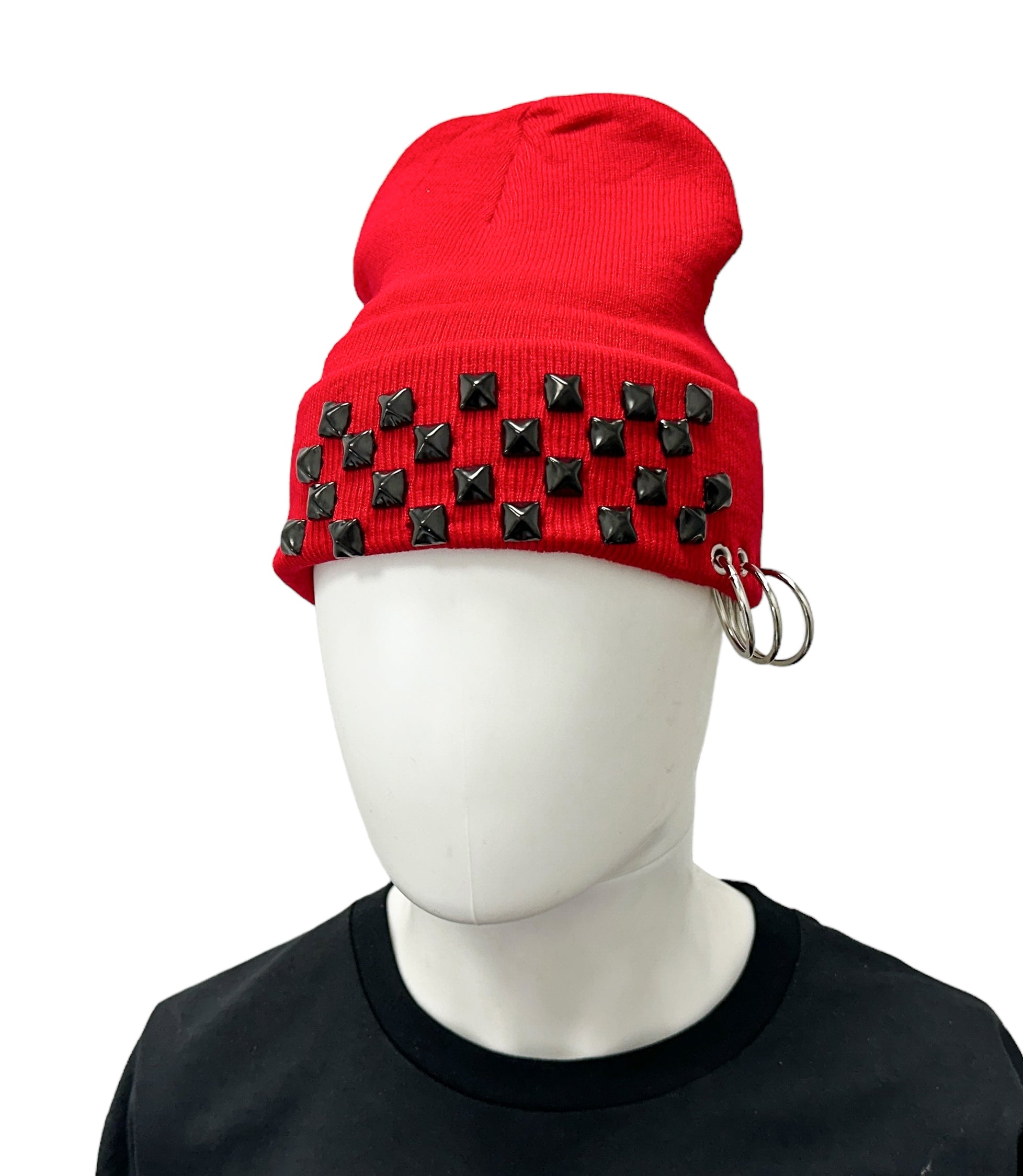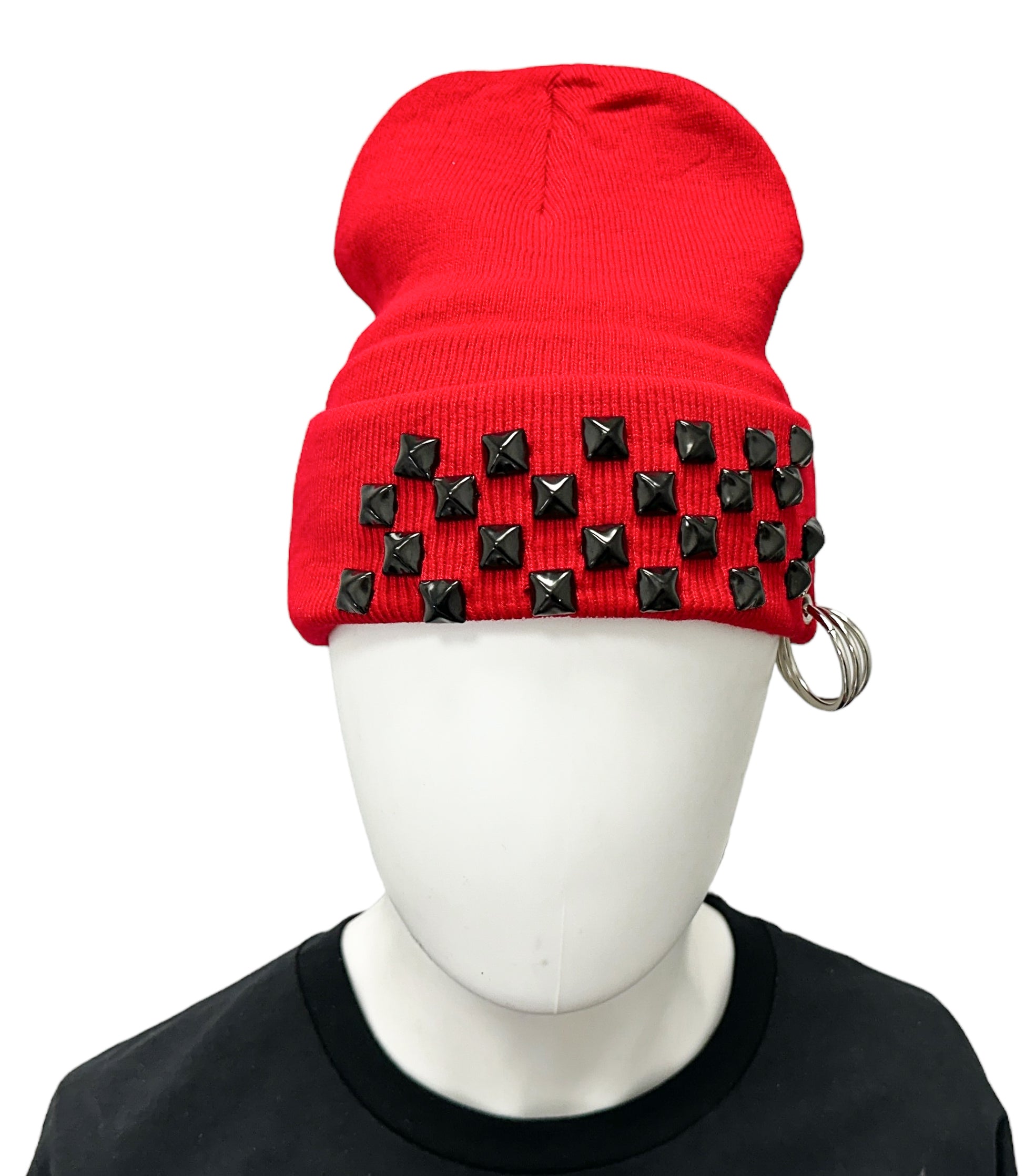 1/2" SILVER PYRAMID STUDDED BEANIE