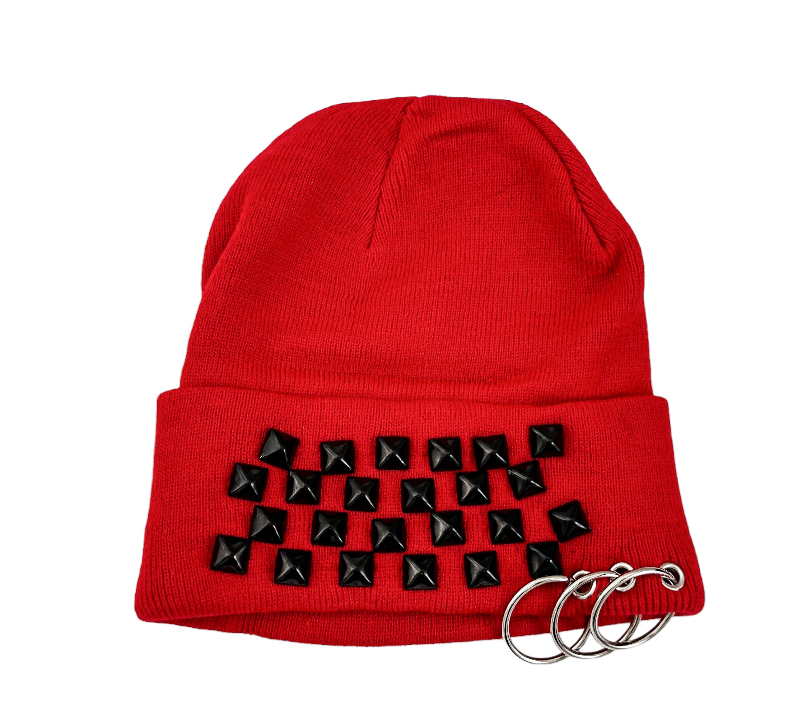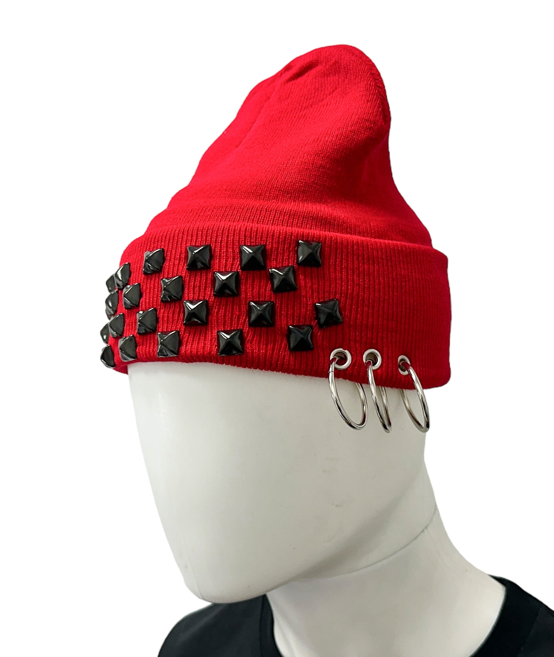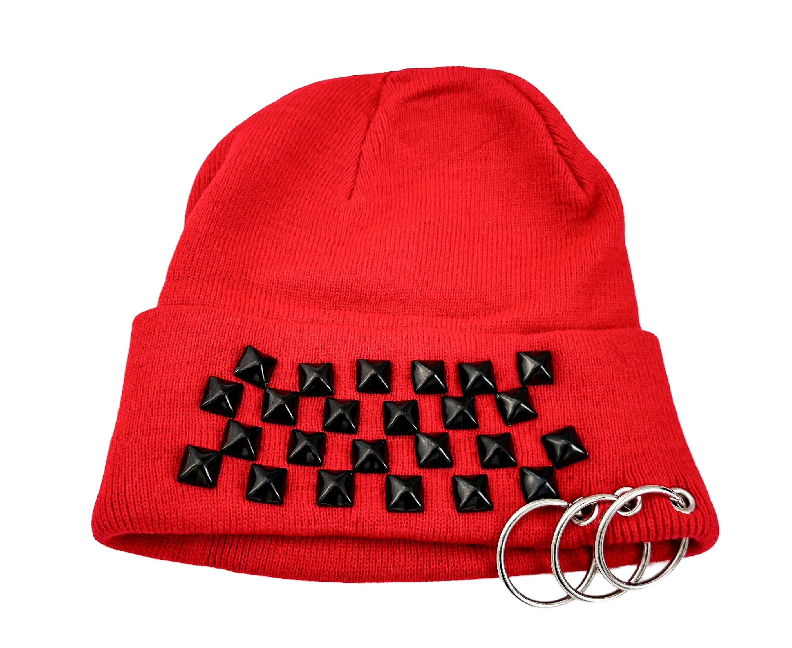 1/2" SILVER PYRAMID STUDDED BEANIE