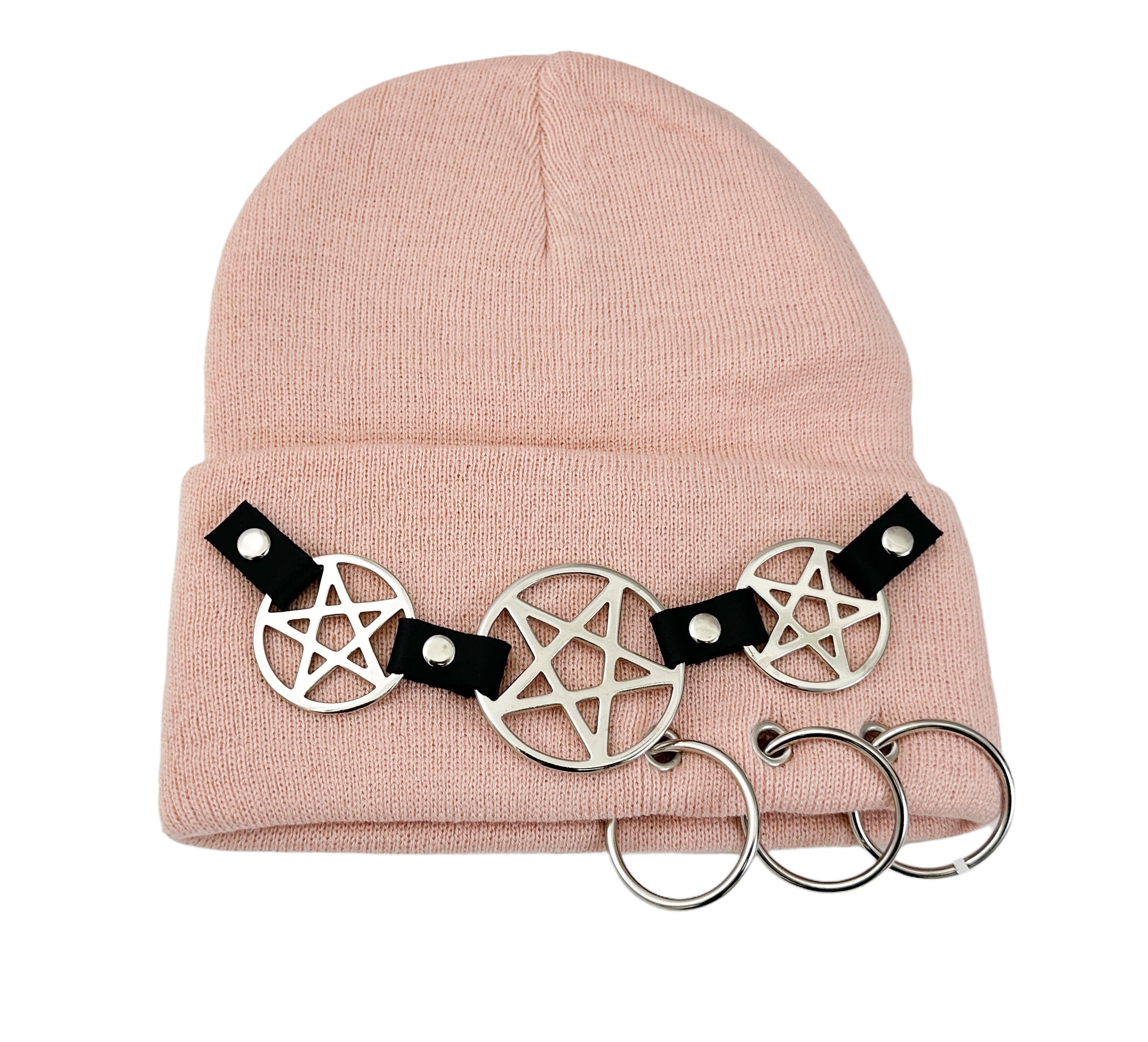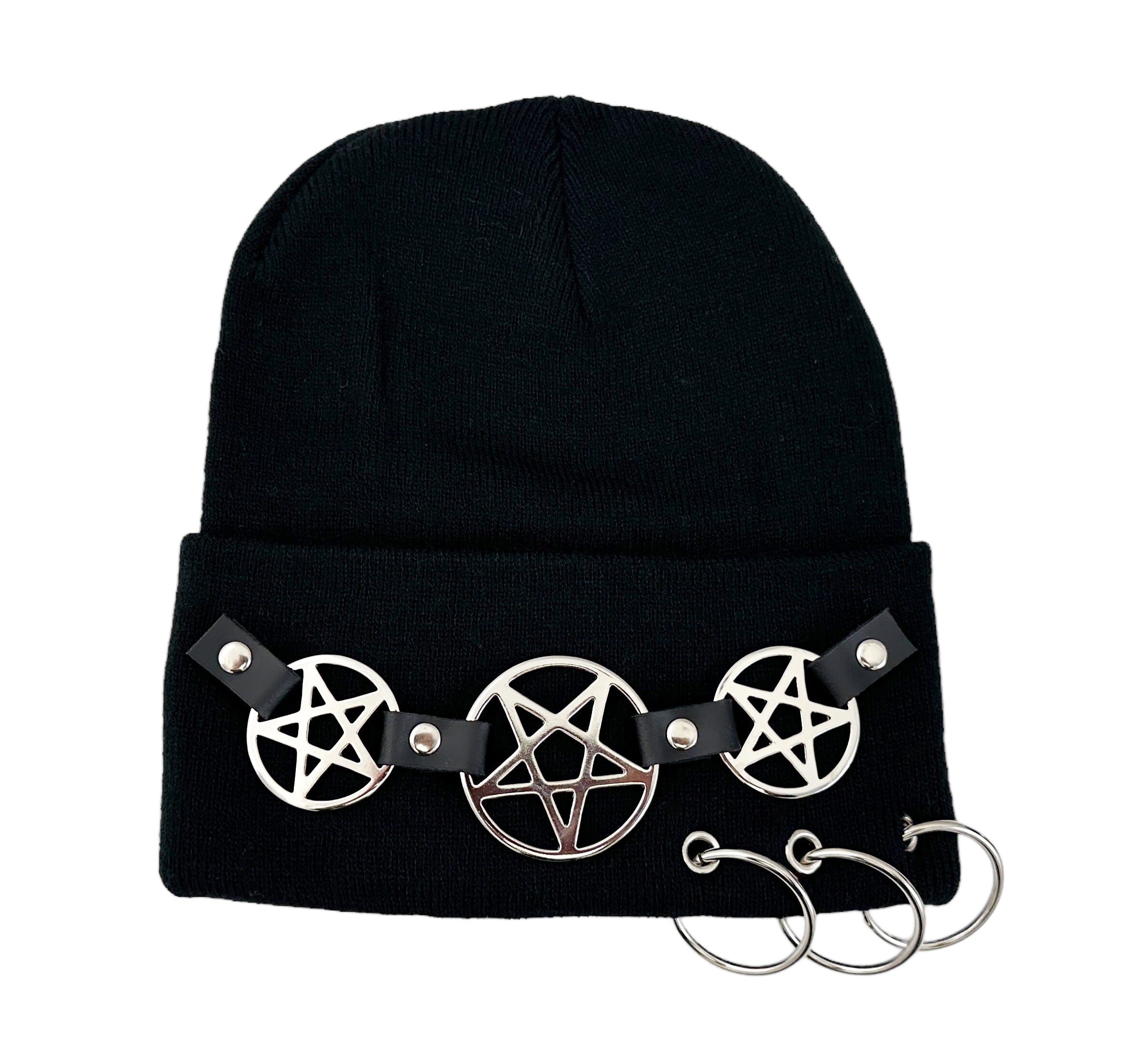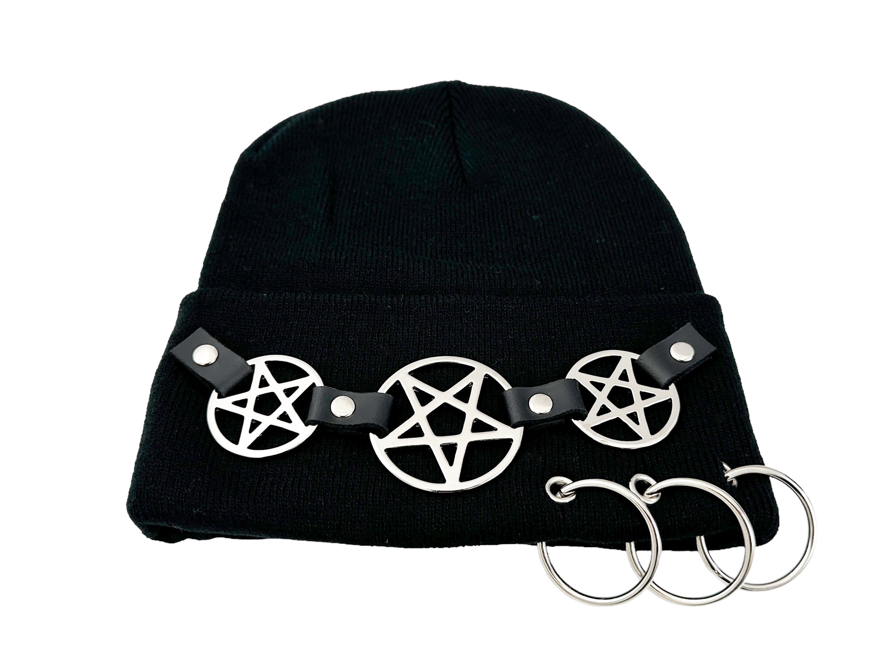 METAL PENTAGRAM WITH LEATHER STUDDED BEANIE