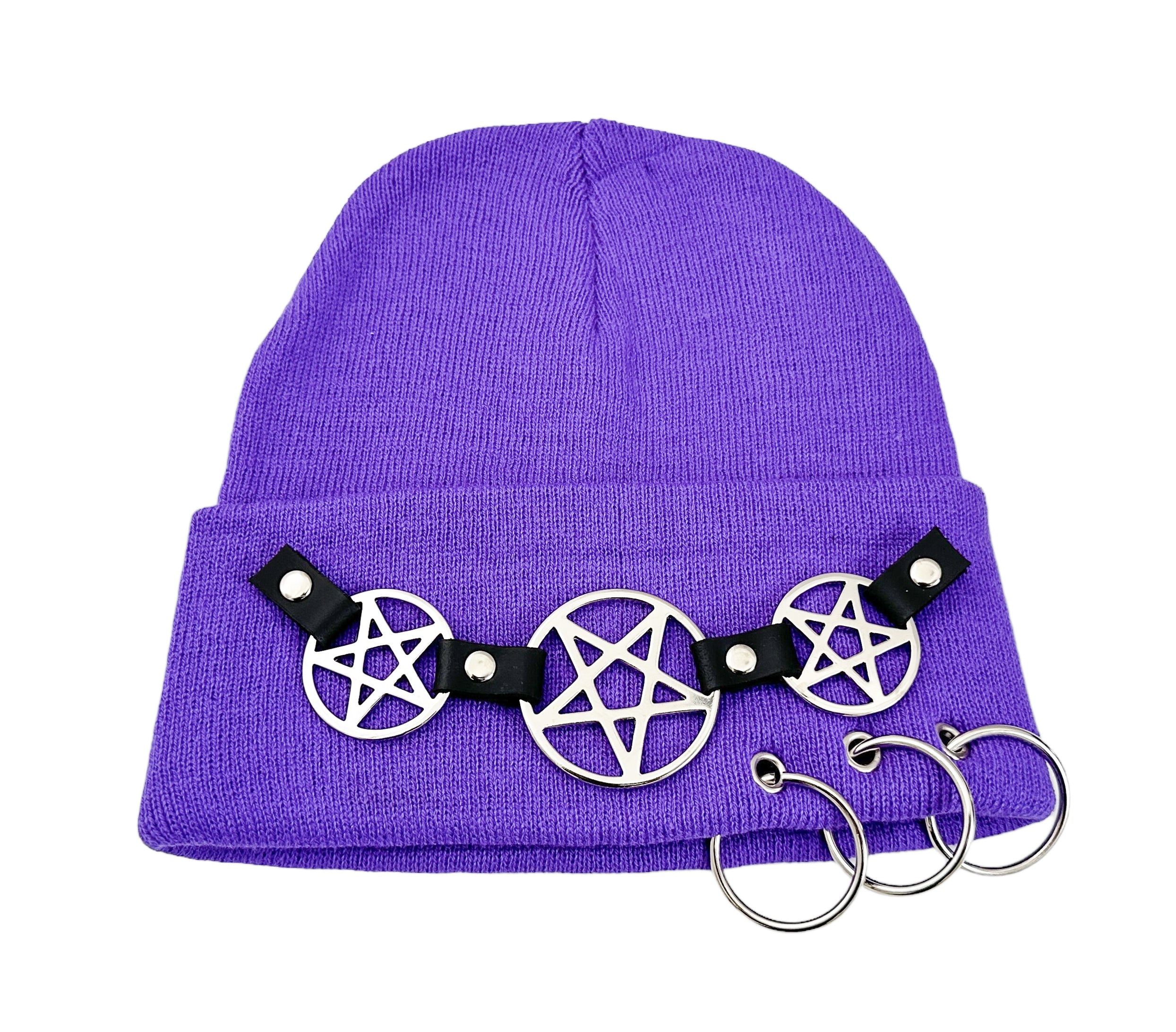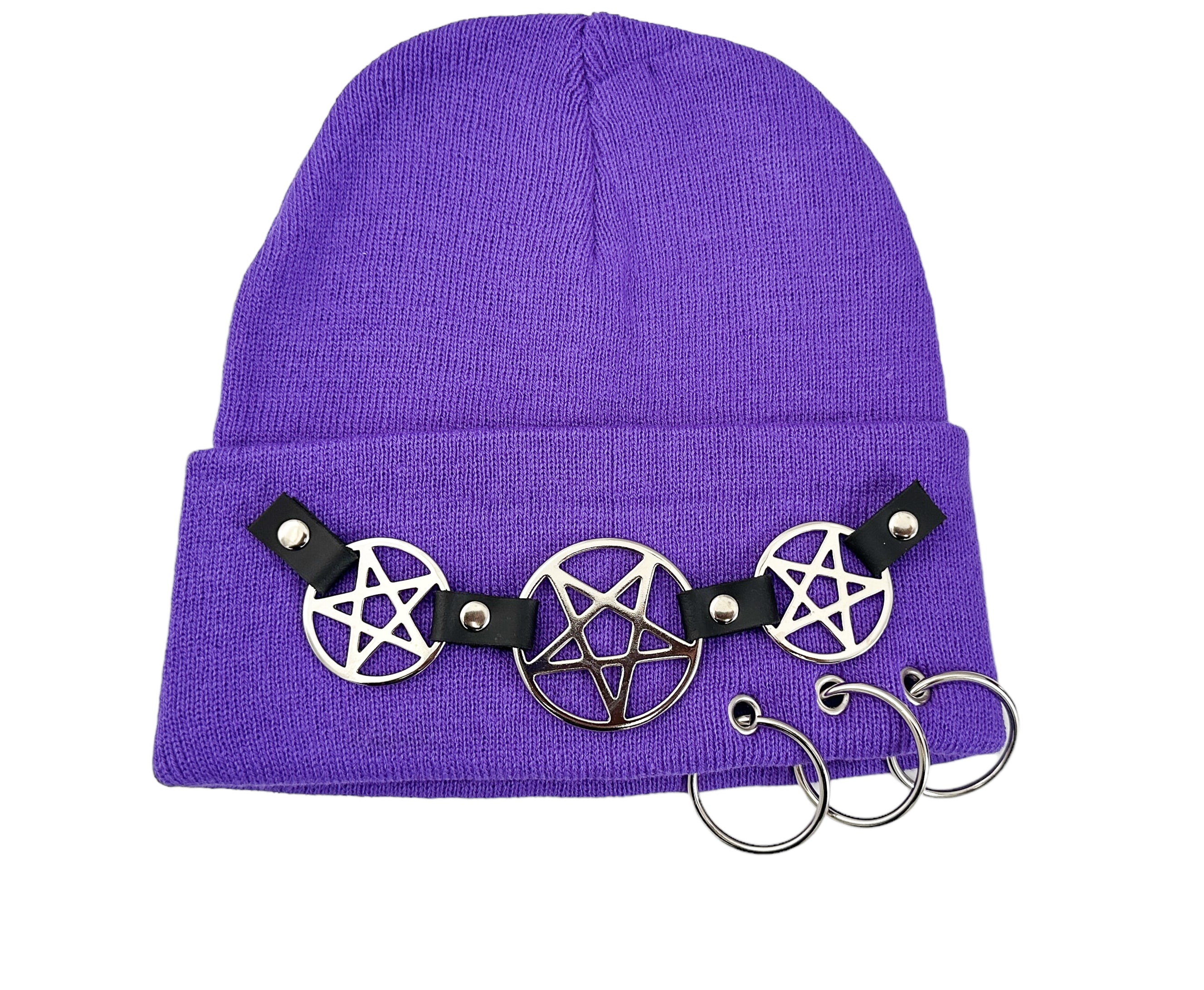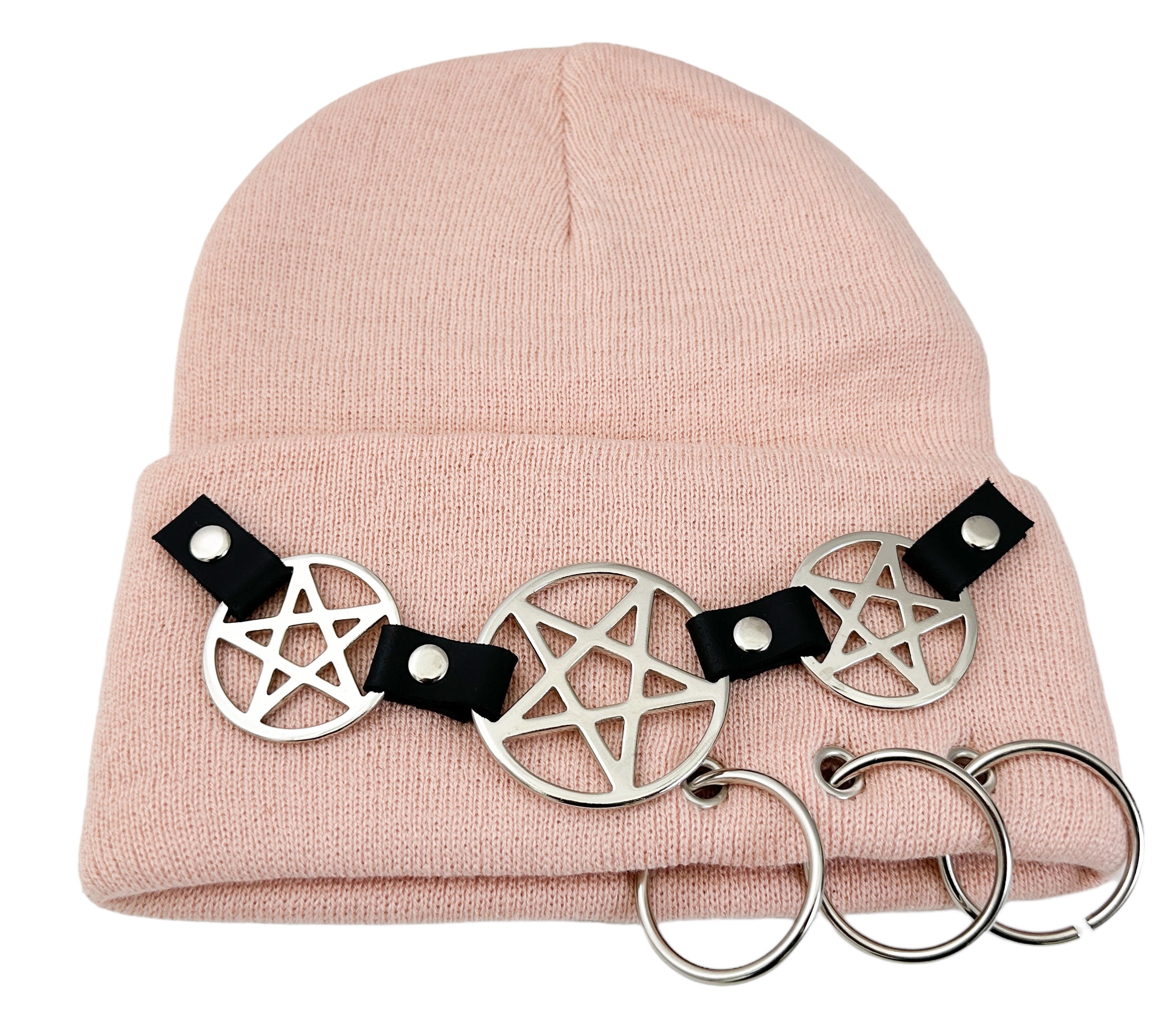 METAL PENTAGRAM WITH LEATHER STUDDED BEANIE