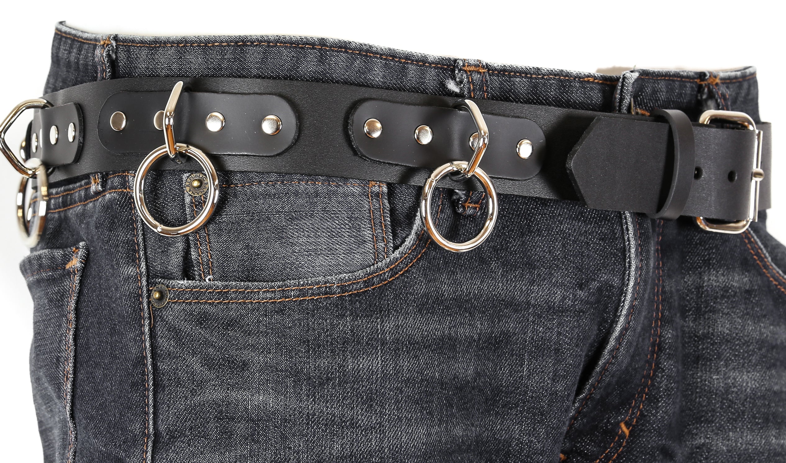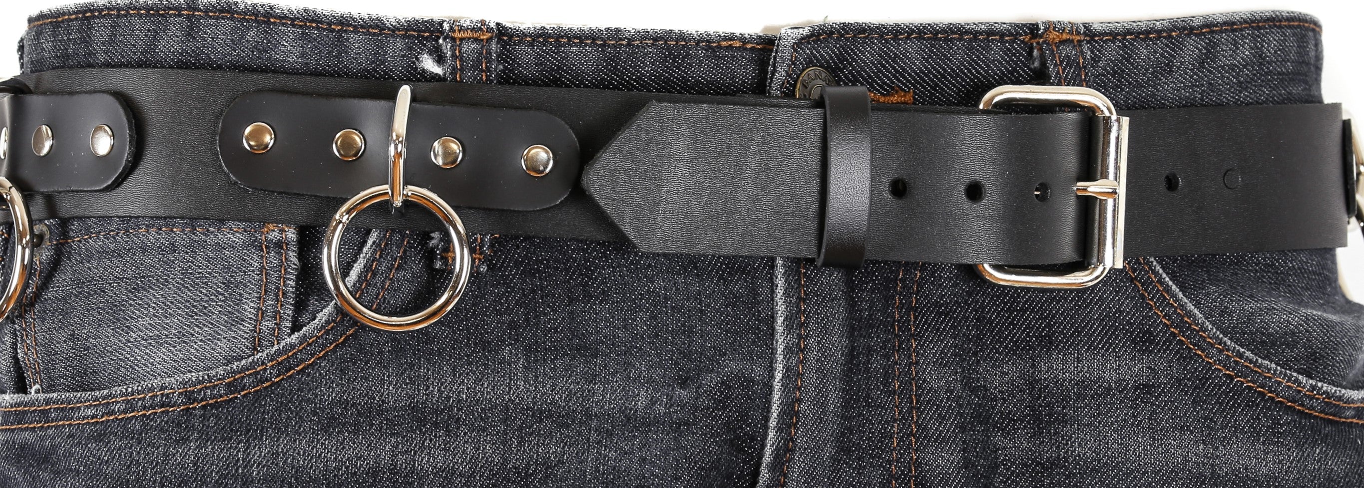 Bondage Belt With Medium Ring Heavy Duty Black Leather Belt