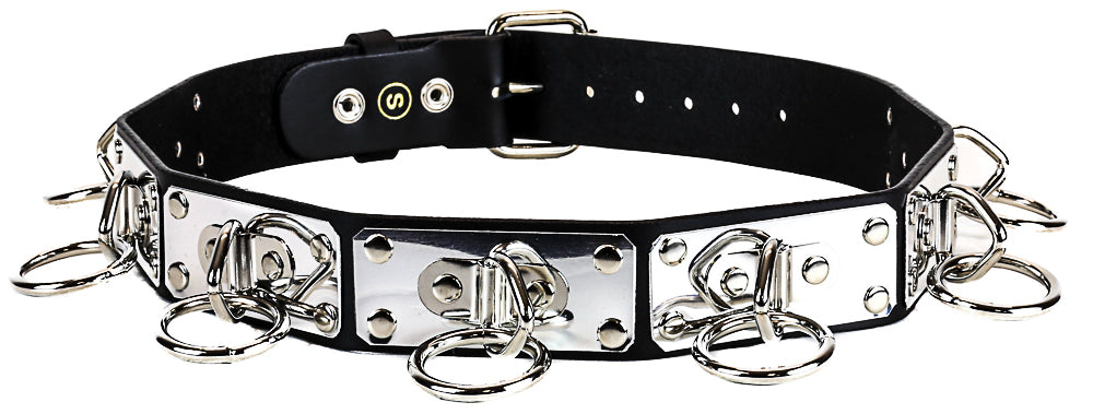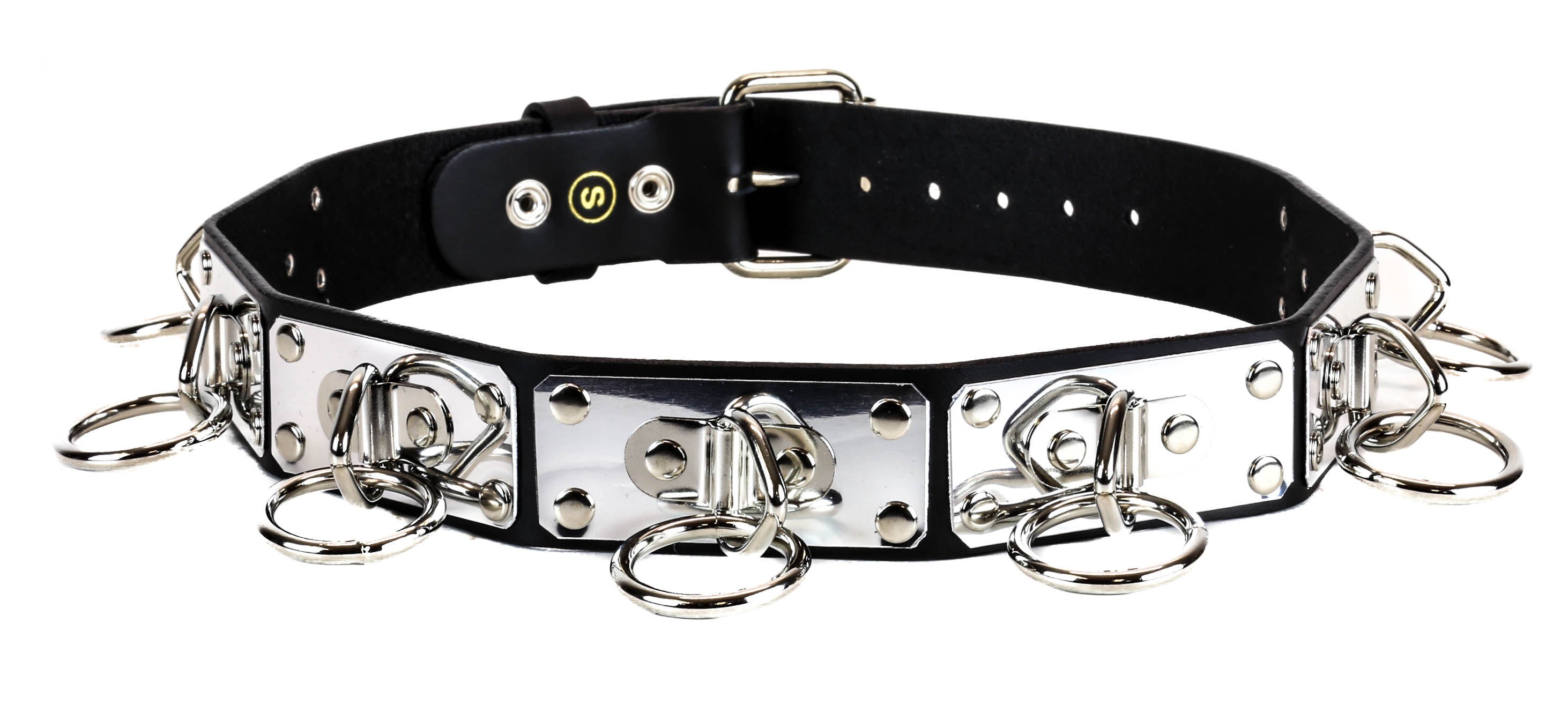 Metal Bondage Belt Large Rings Wide Belt Genuine Leather