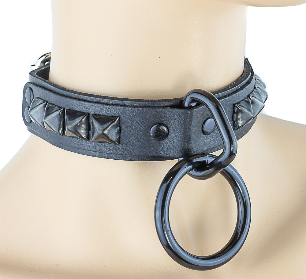 Bondage Black Studded Leather Choker with Large Black O Ring