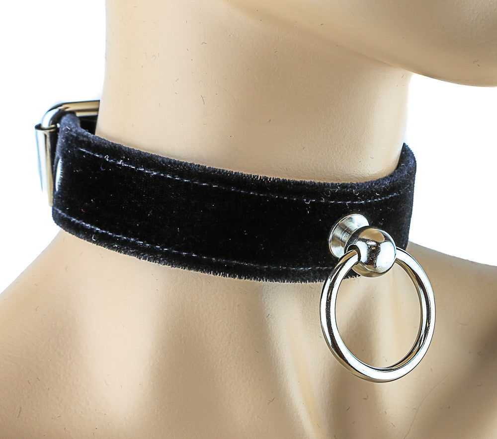 Bondage Black Velvet Choker with Silver O Ring and Buckle