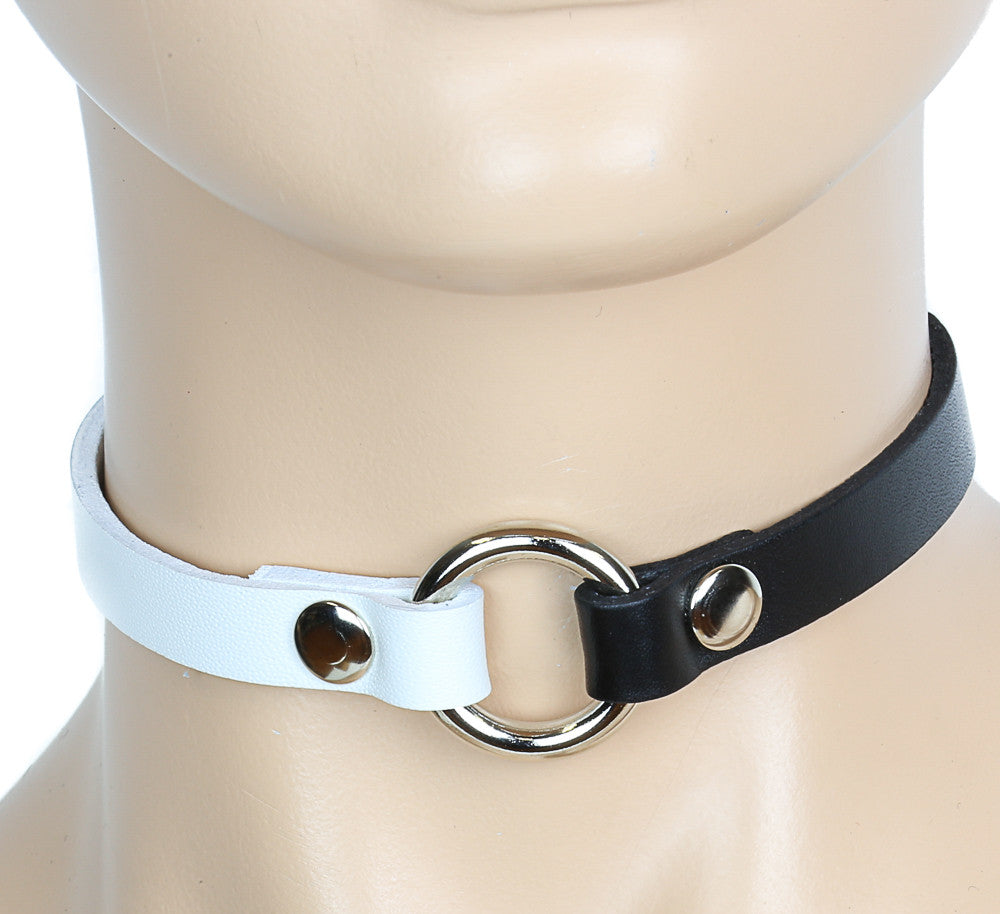 Bondage Thin Black and White O Ring Choker