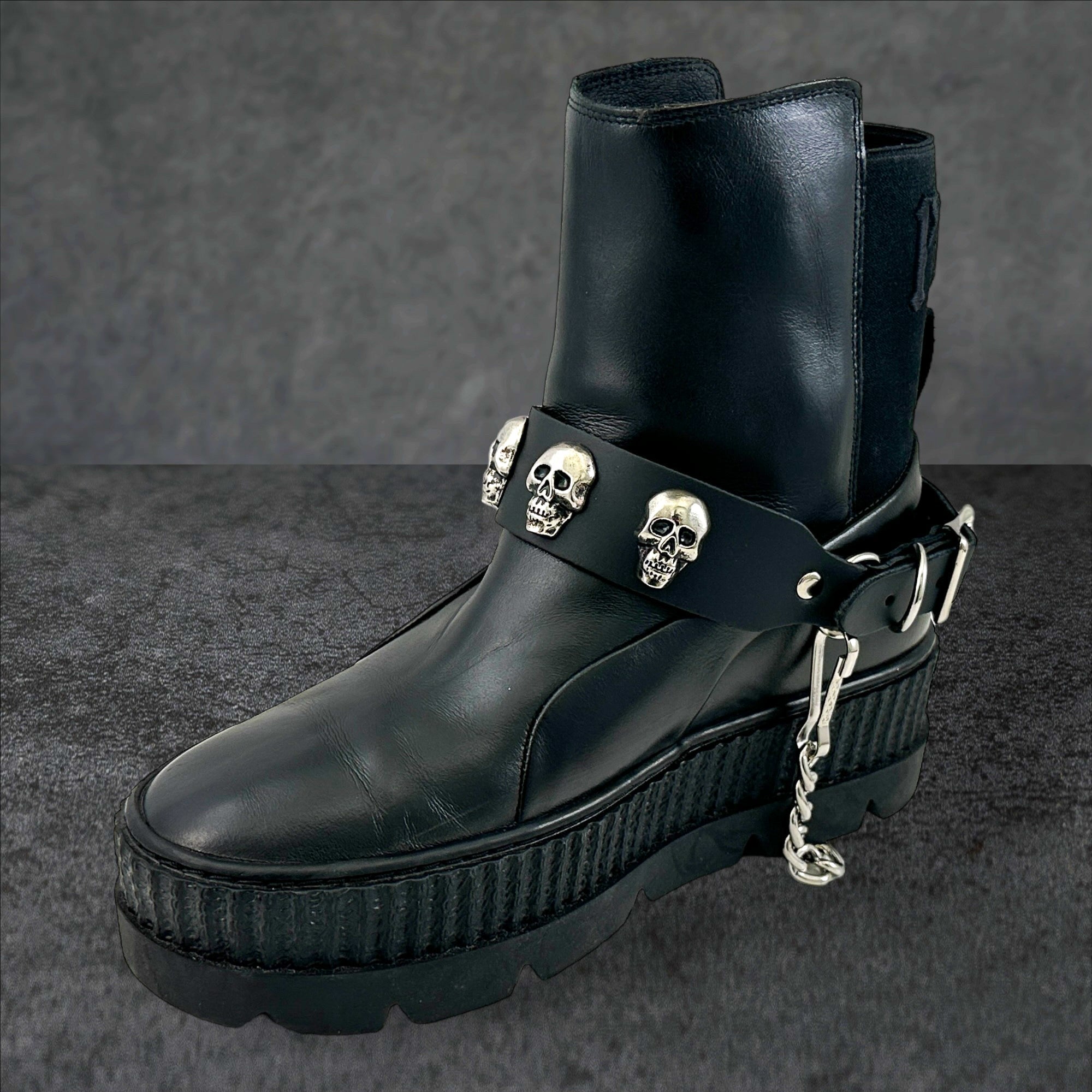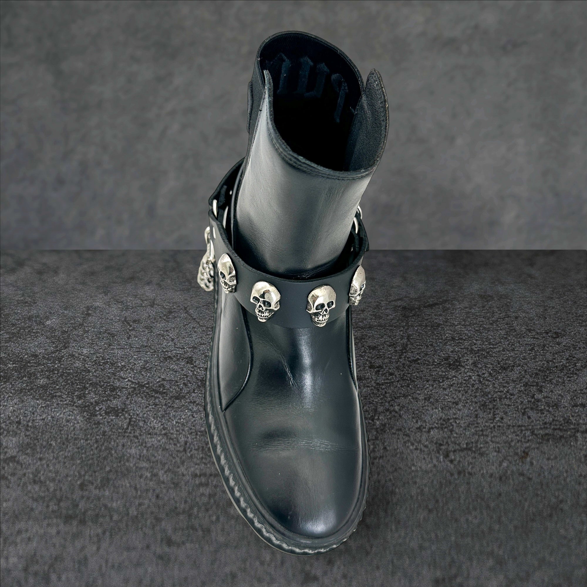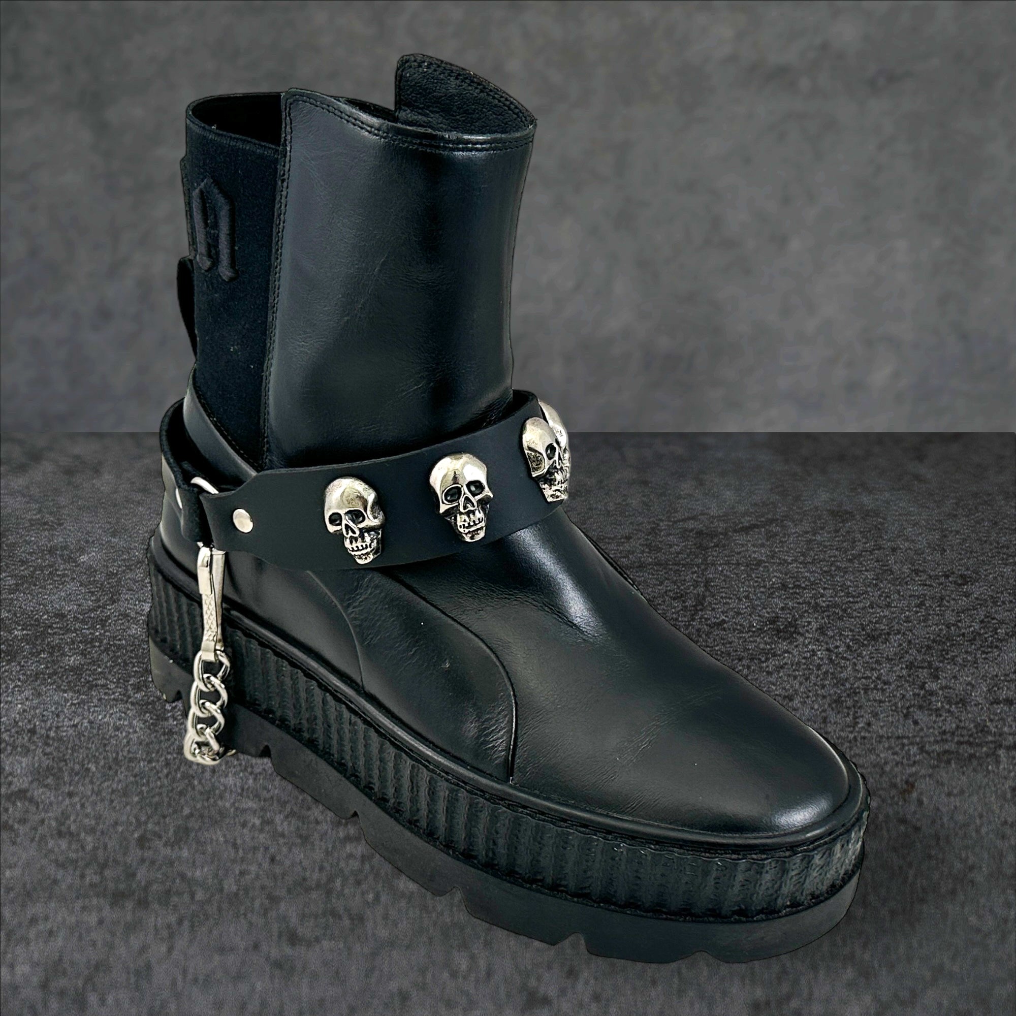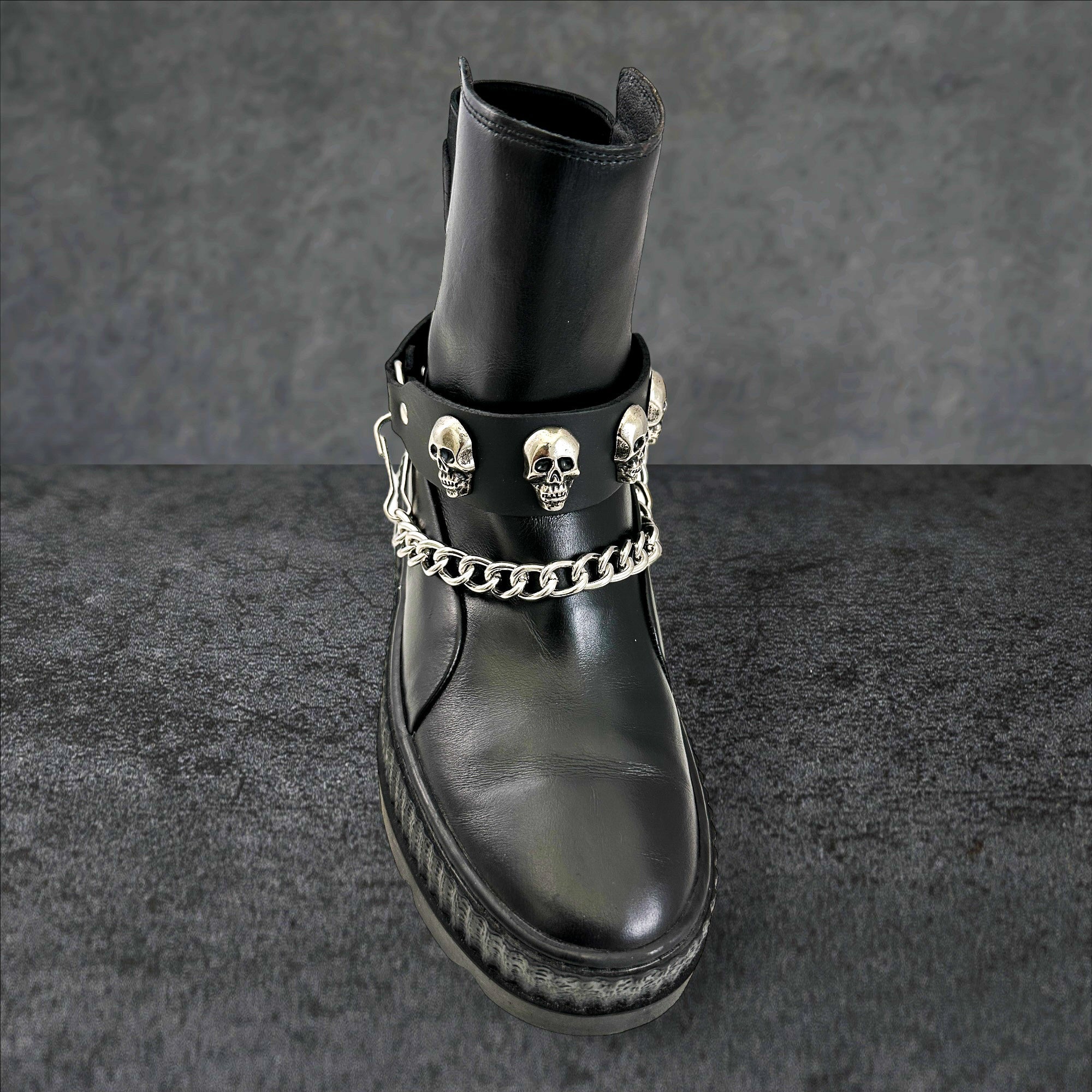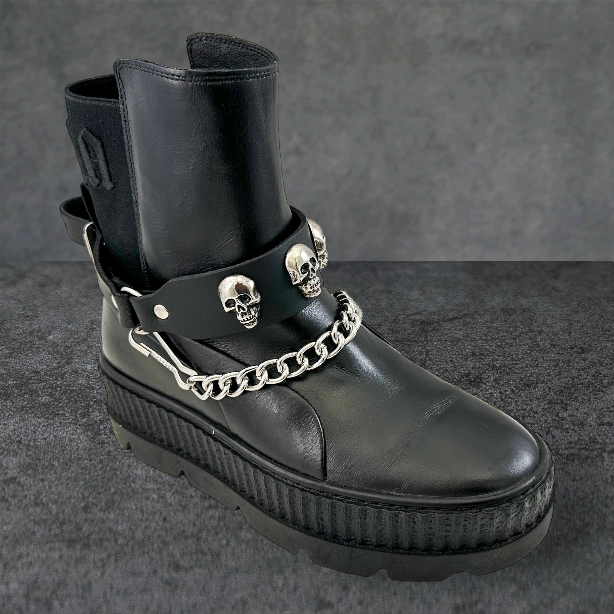 SKULL AND SPIKE BOOTSTRAP OVER LEATHER