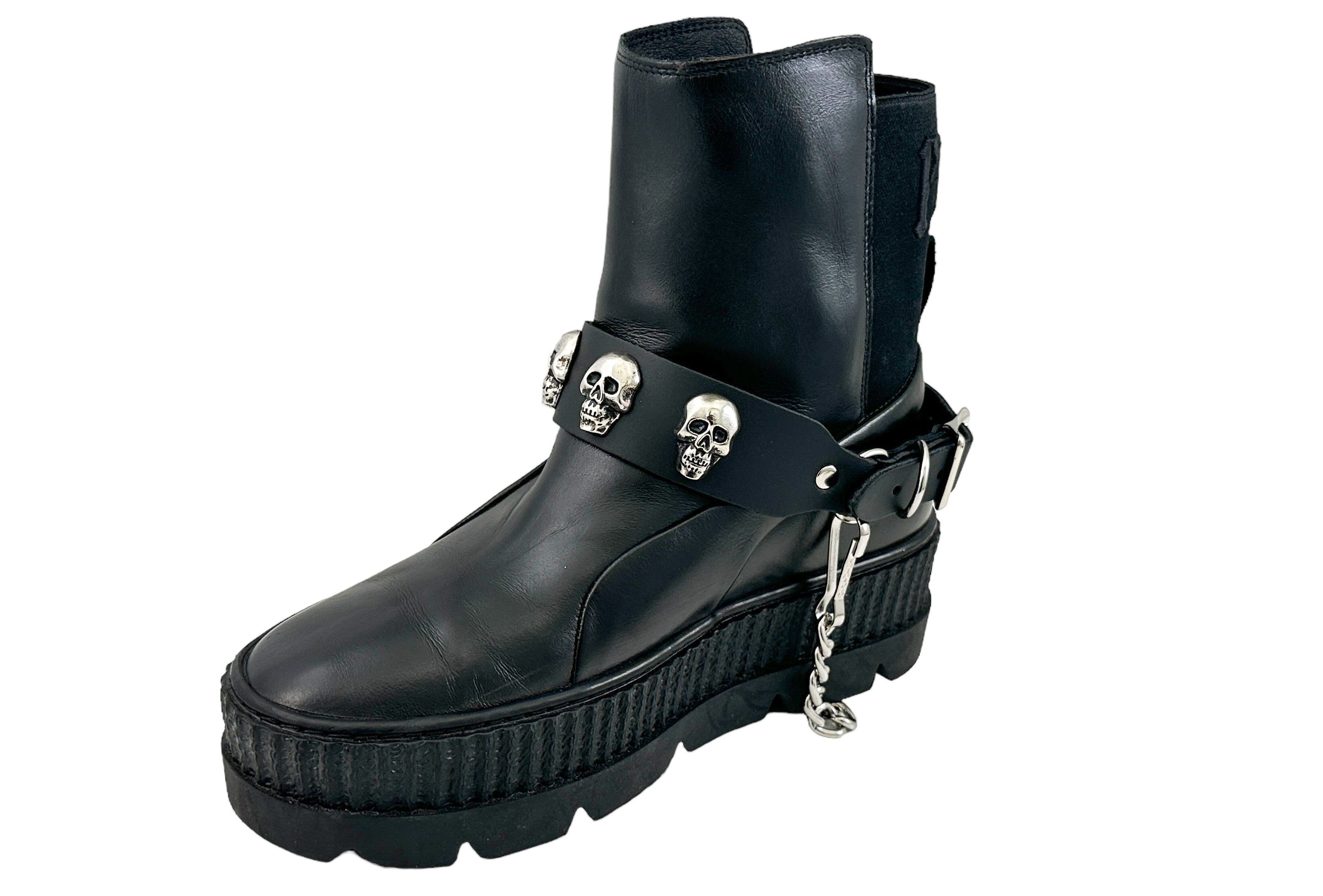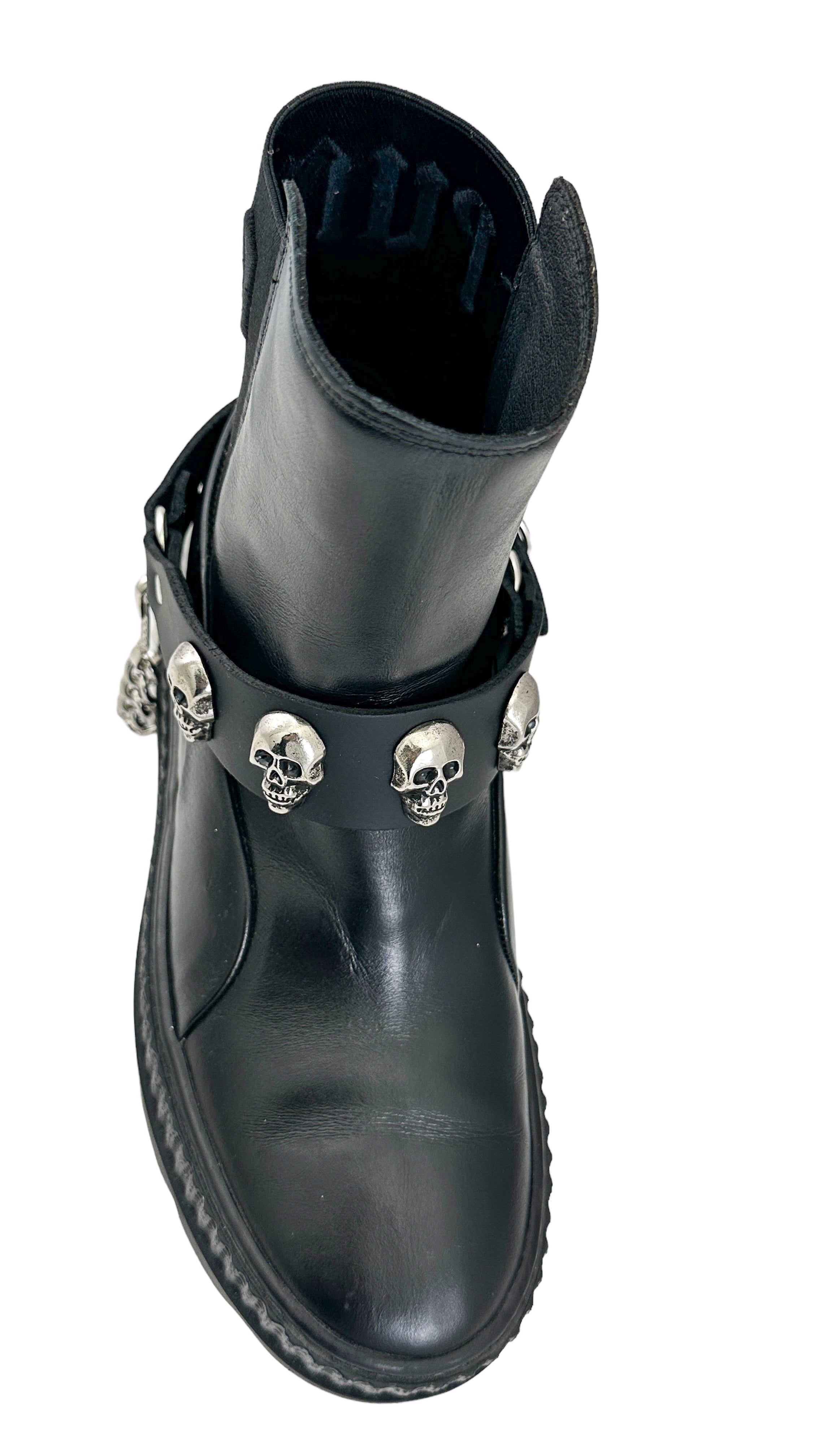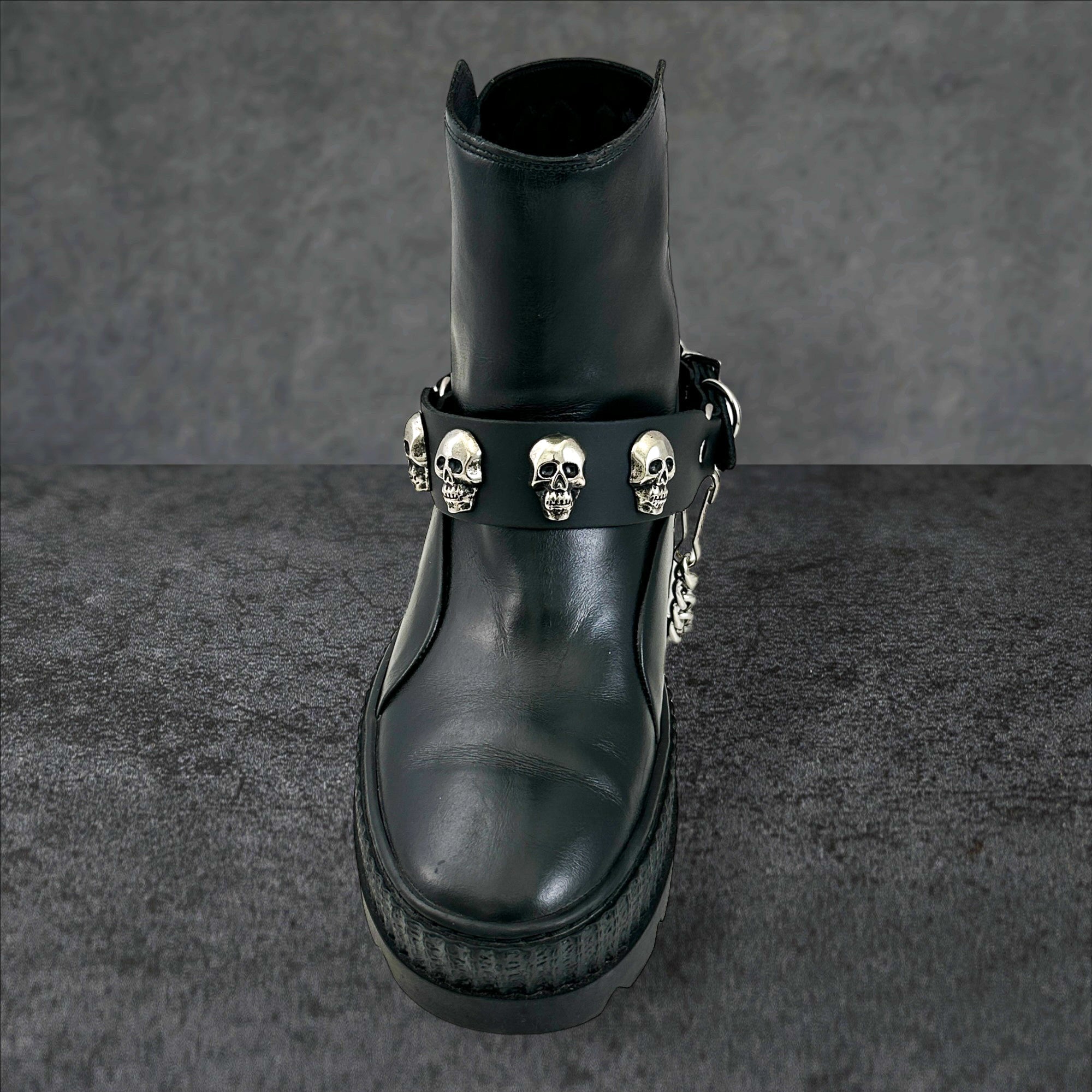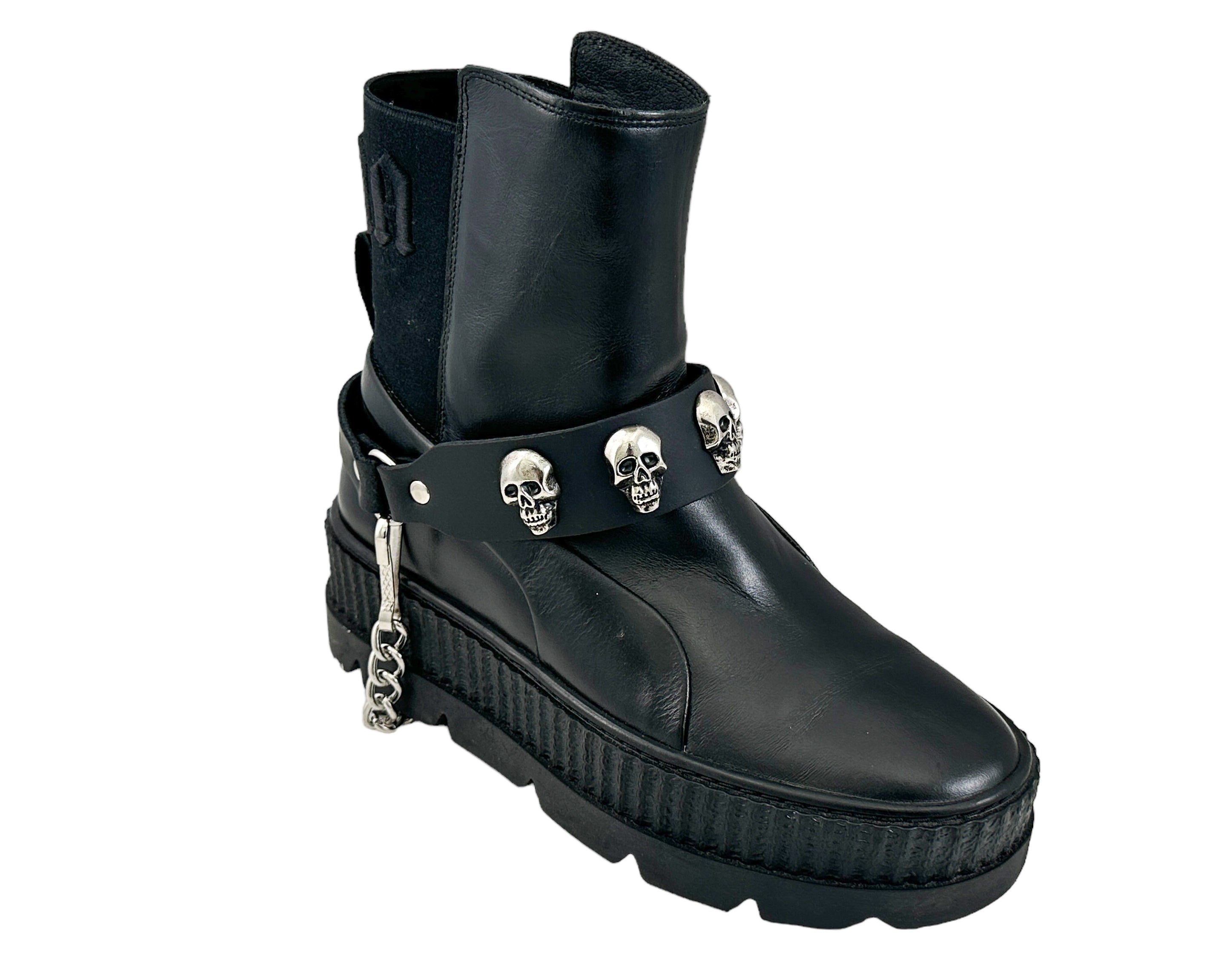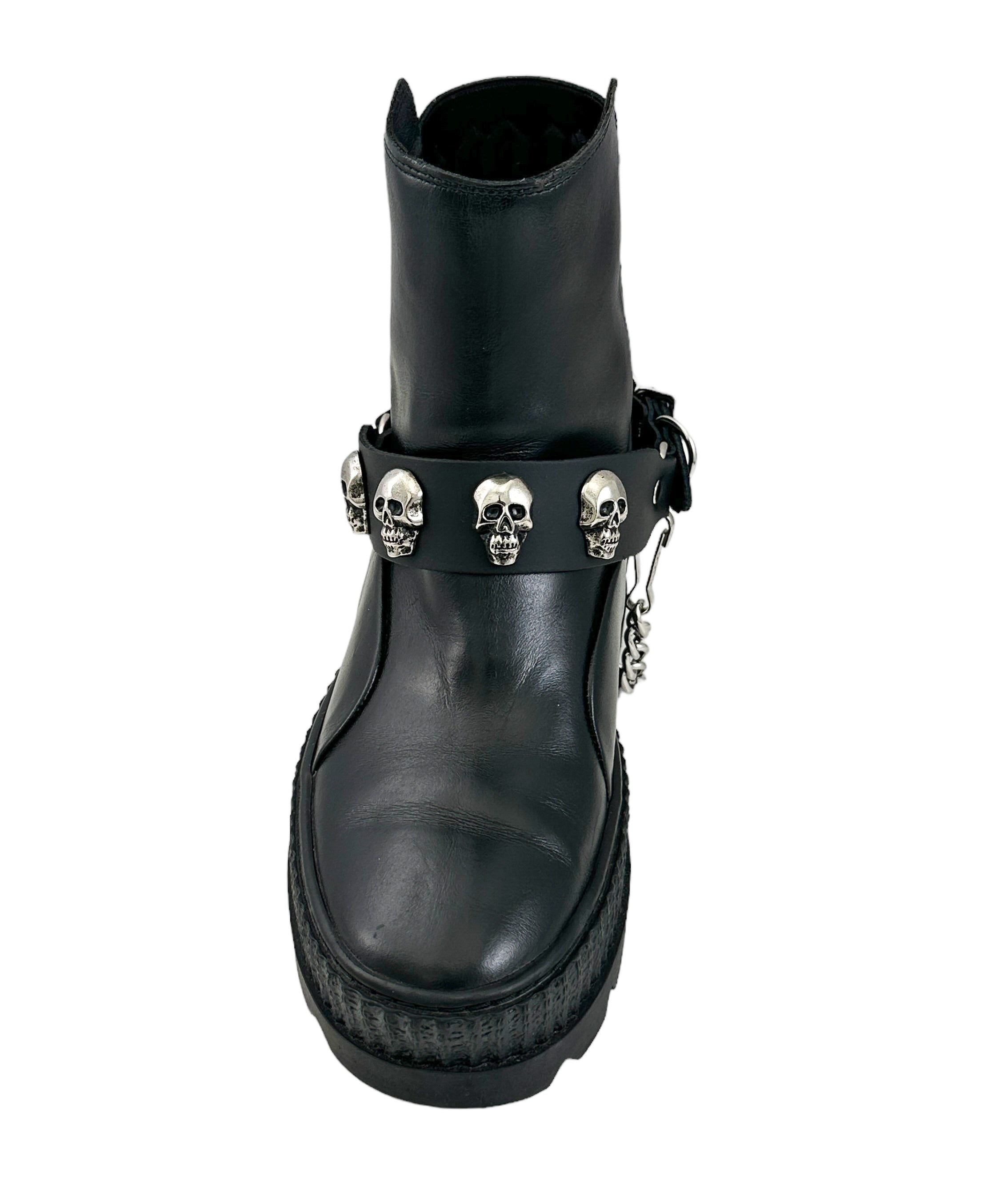 SKULL AND SPIKE BOOTSTRAP OVER LEATHER