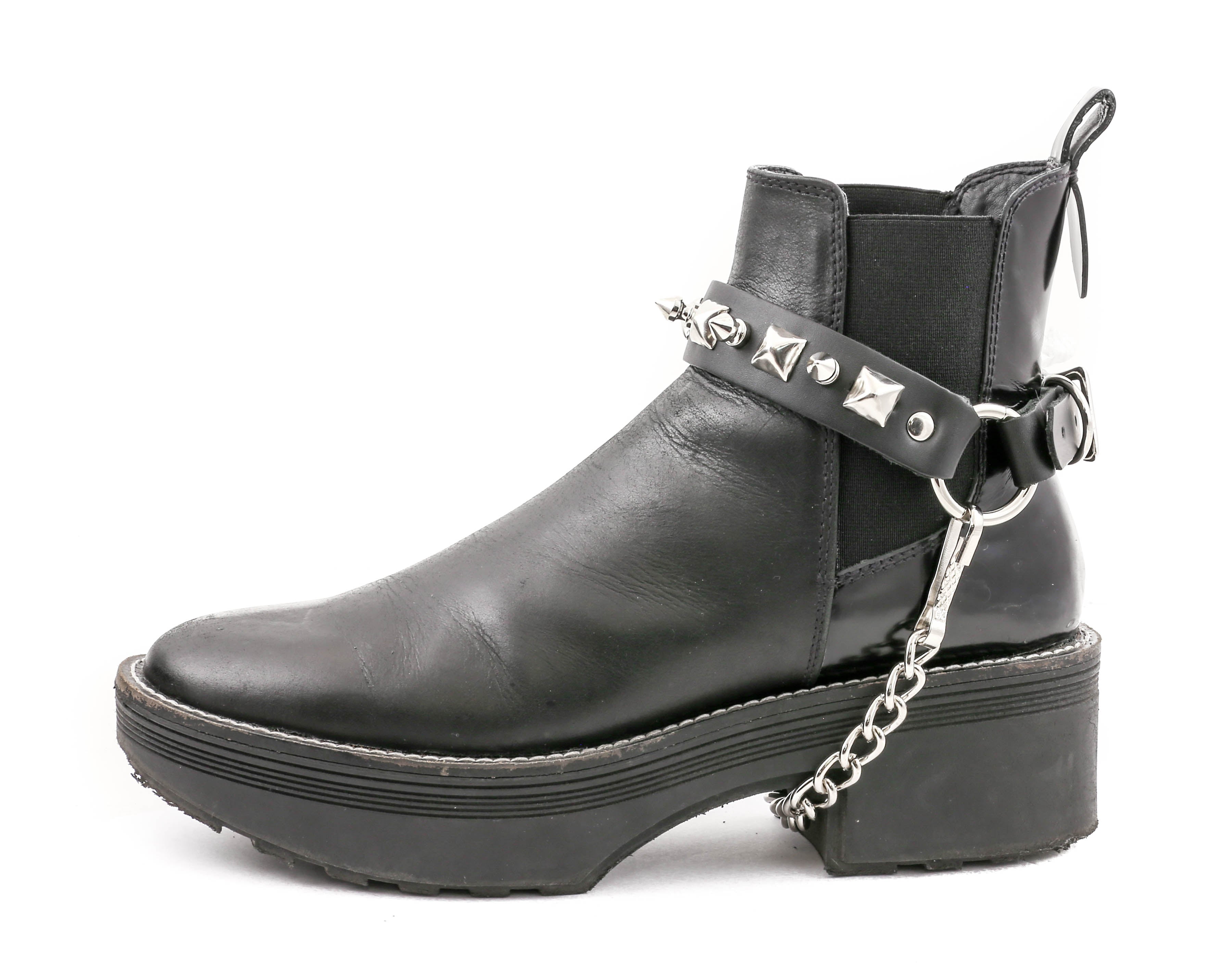 | SINGLE ROW SPIKES AND PYRAMIDS BOOTSTRAP WITH CHAIN |