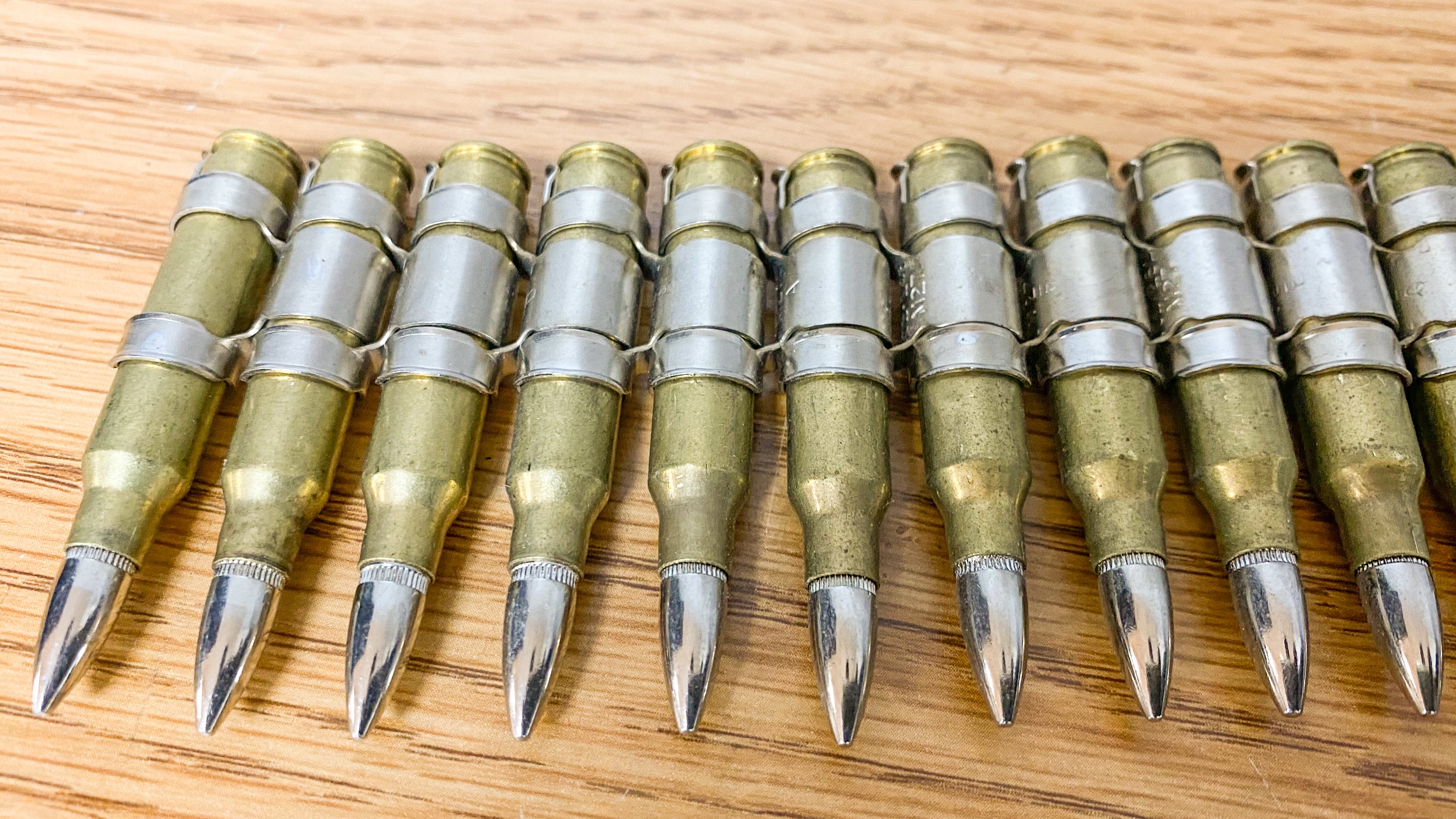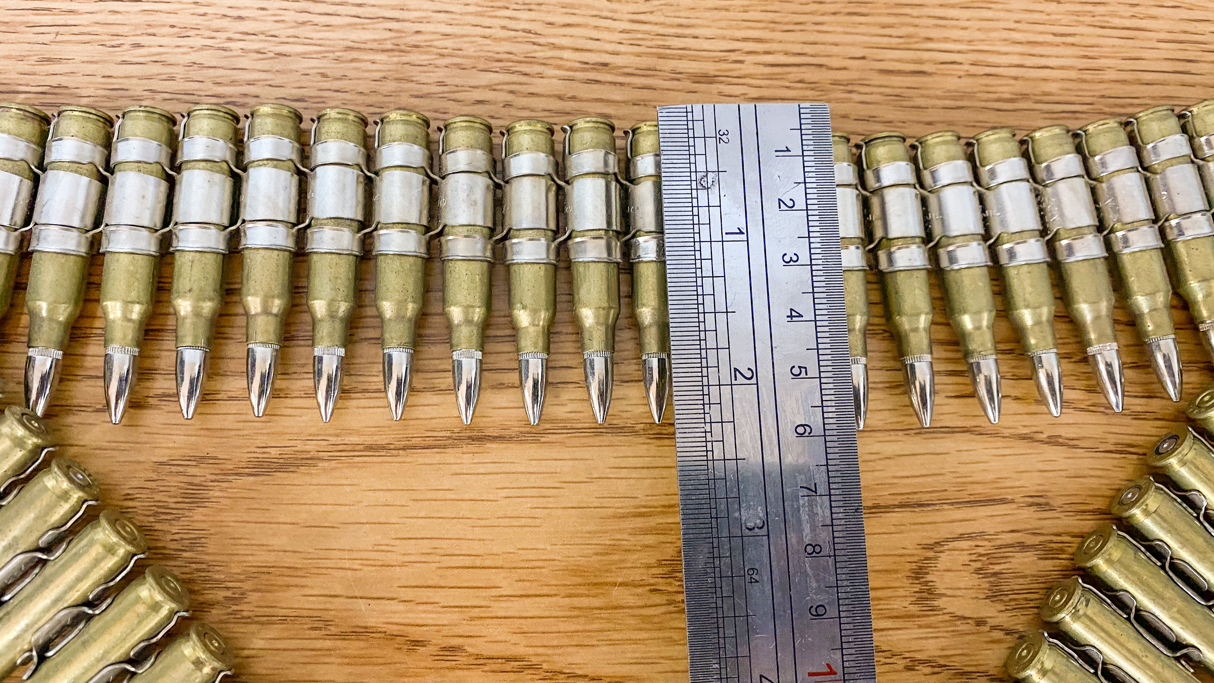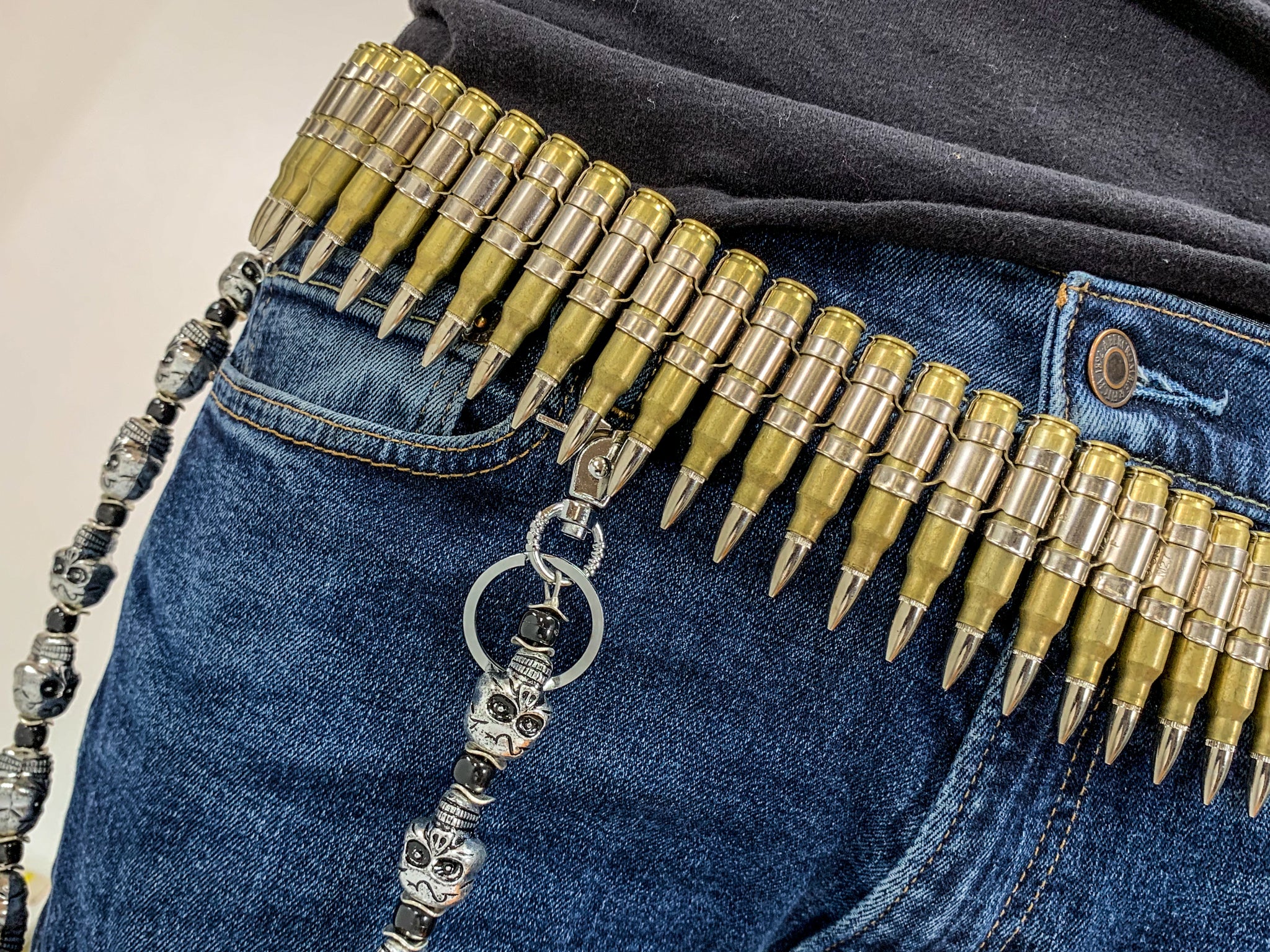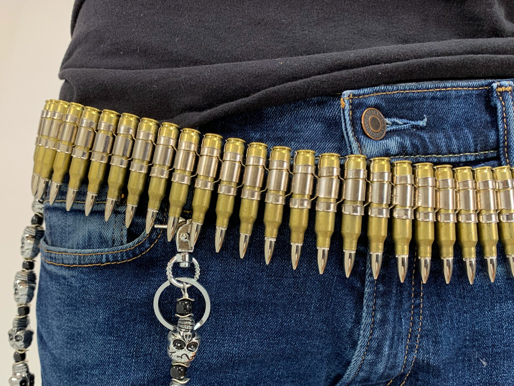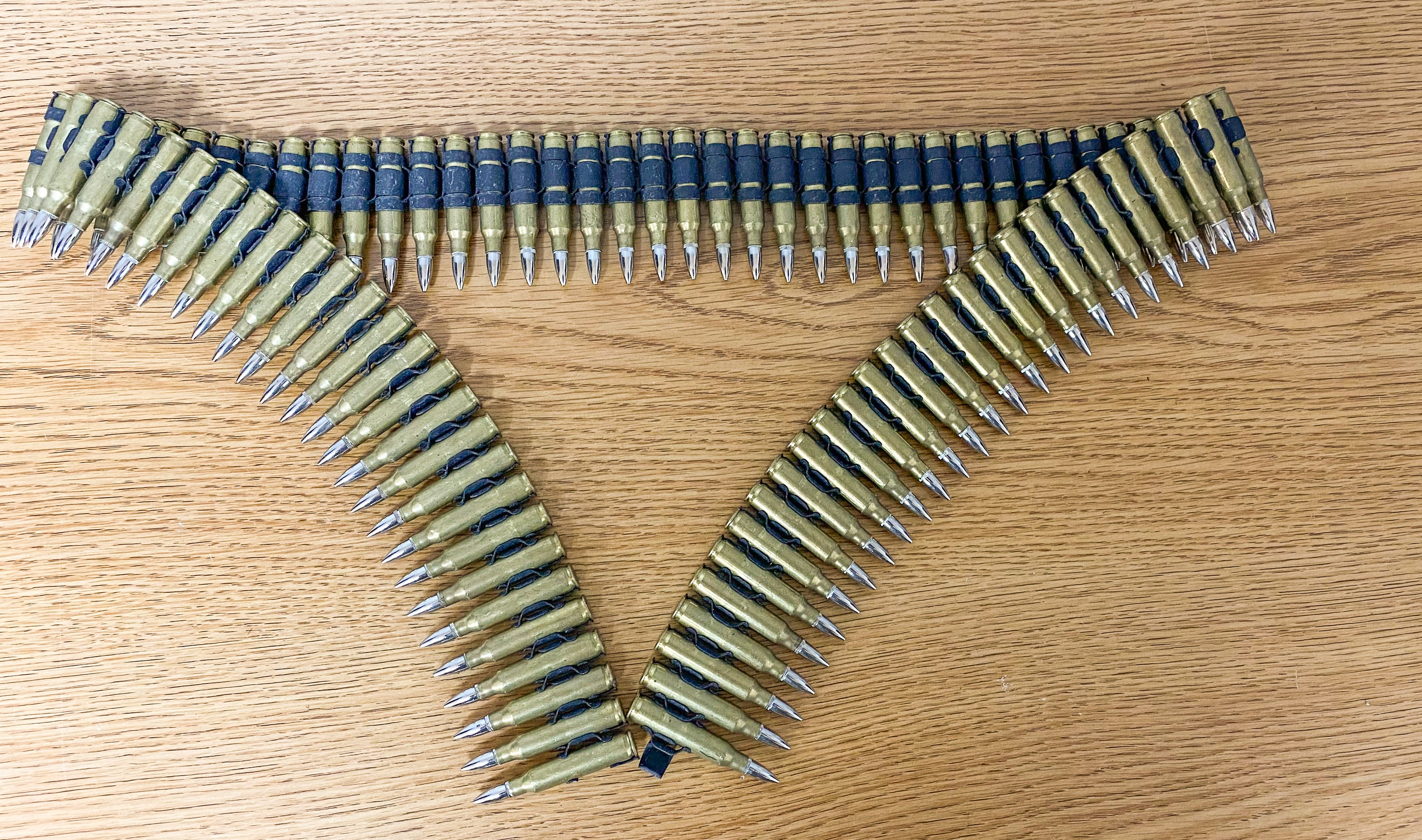 Black M16 .223 Caliber Bullet Belt Brass Shell Nickel Tips Nickel 'X' Link