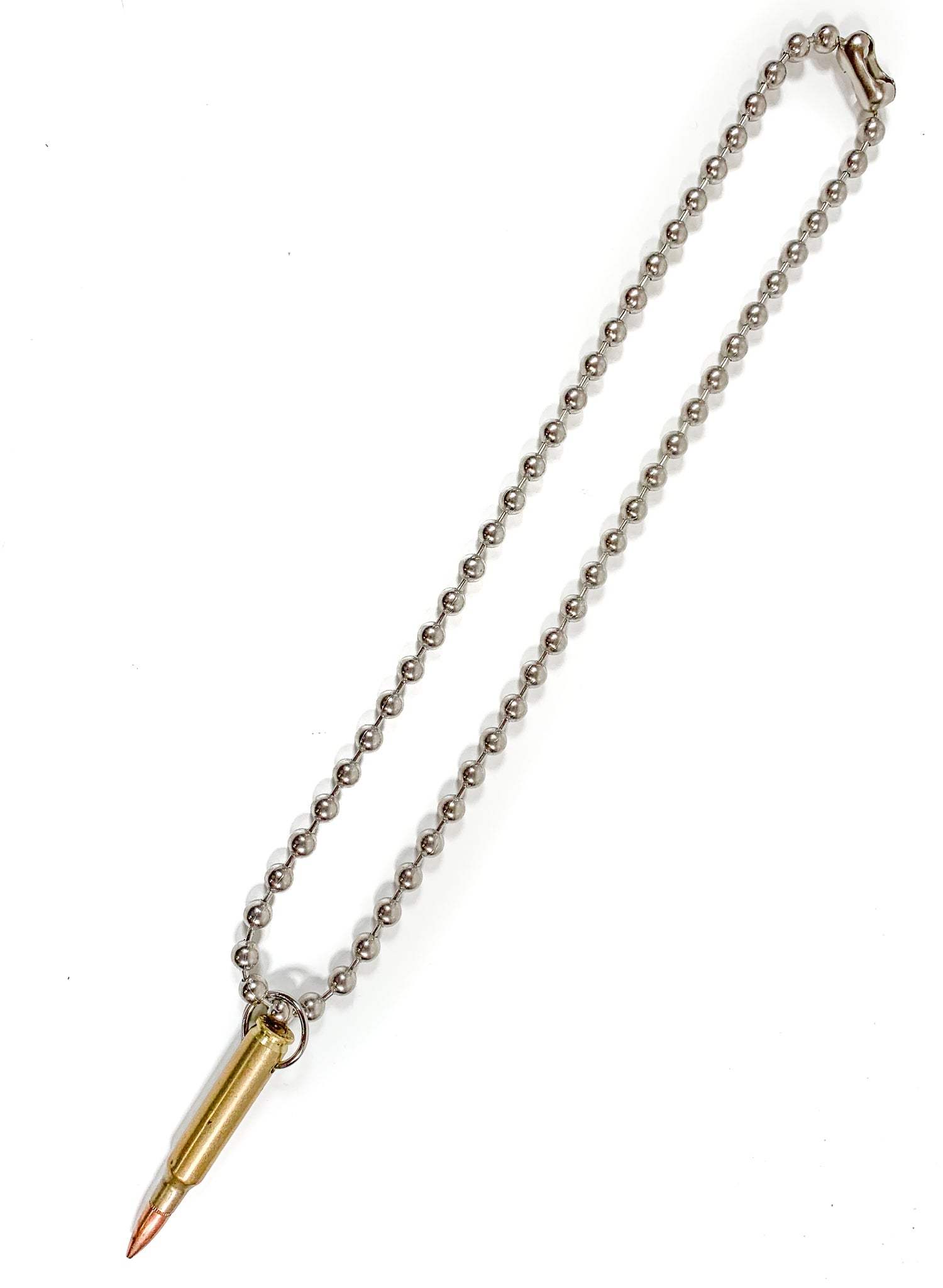 M16 2 1/4" Large Real Brass Brass Shell Copper Tips Ball-chain Pendant