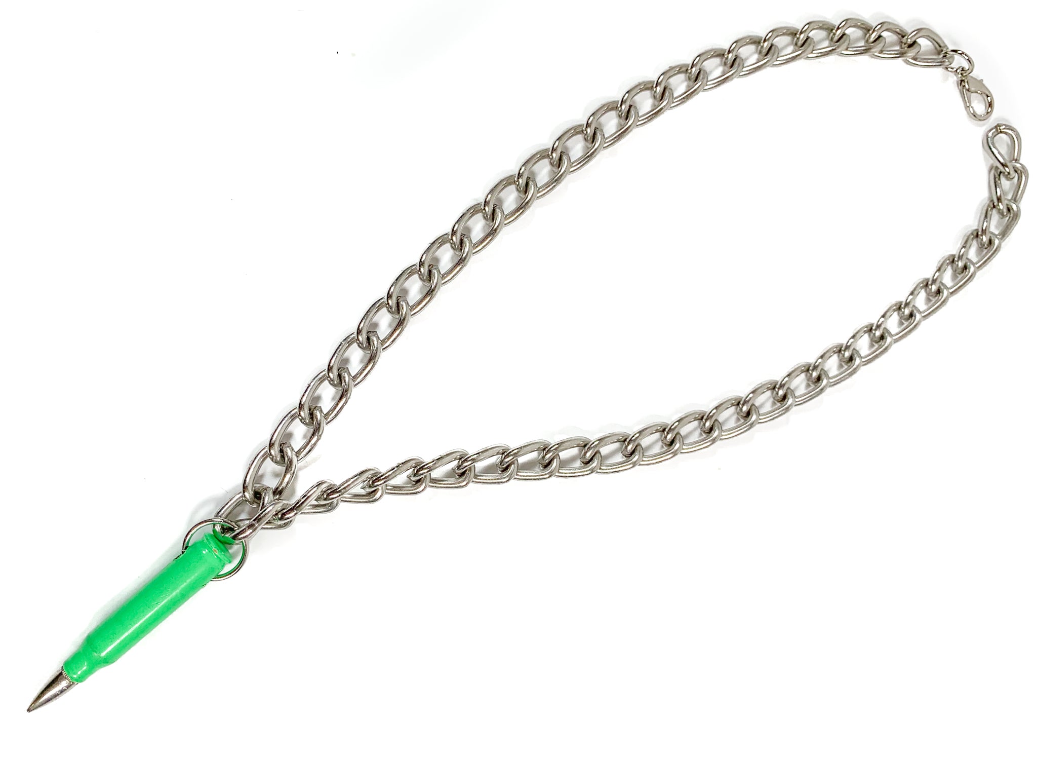 M16 2 1/4" Large Real Green Shell Nickel Tips Steel Chain Pendant