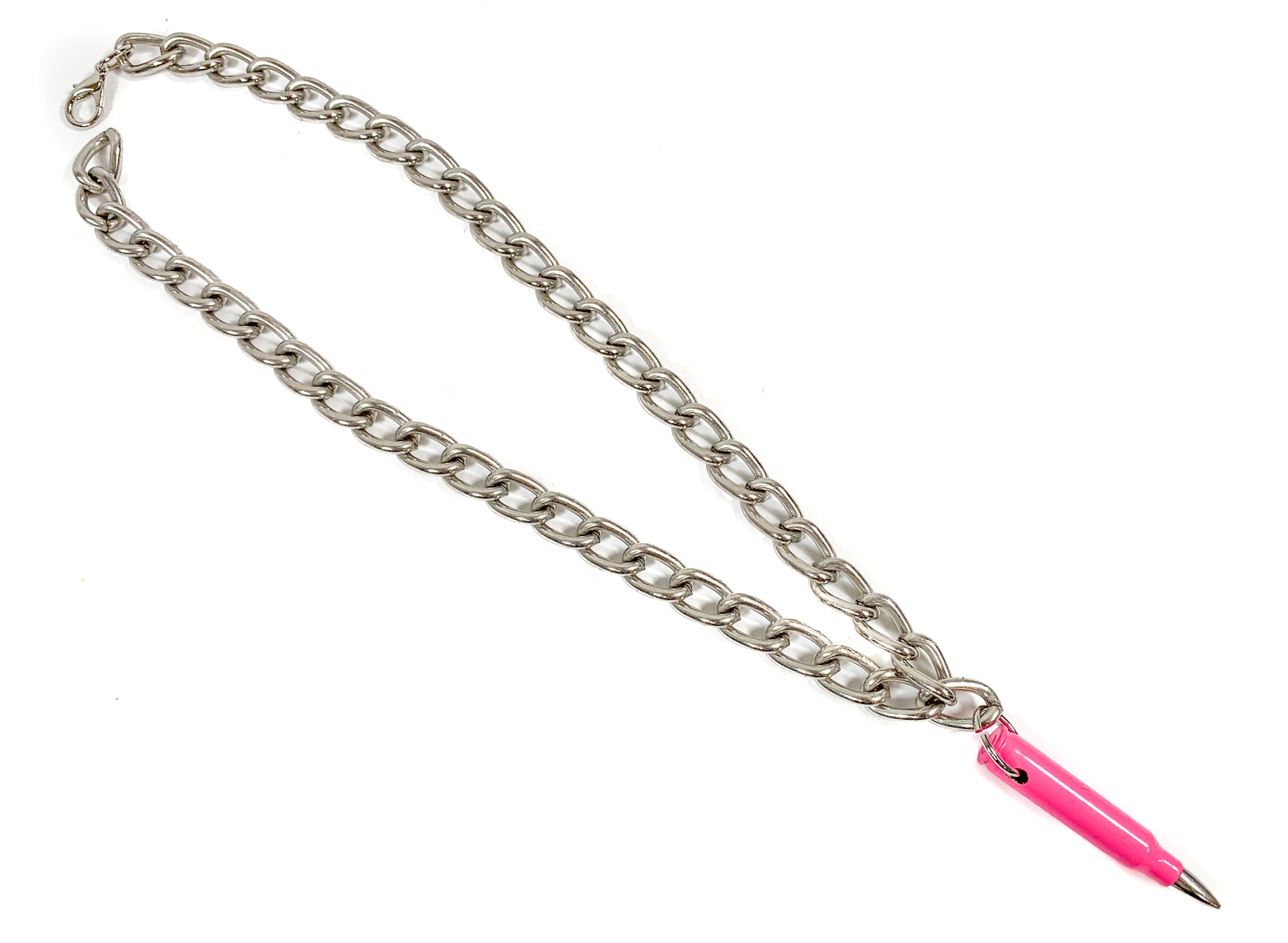 M16 2 1/4" Large Real Pink Shell Nickel Tips Steel Chain Pendant