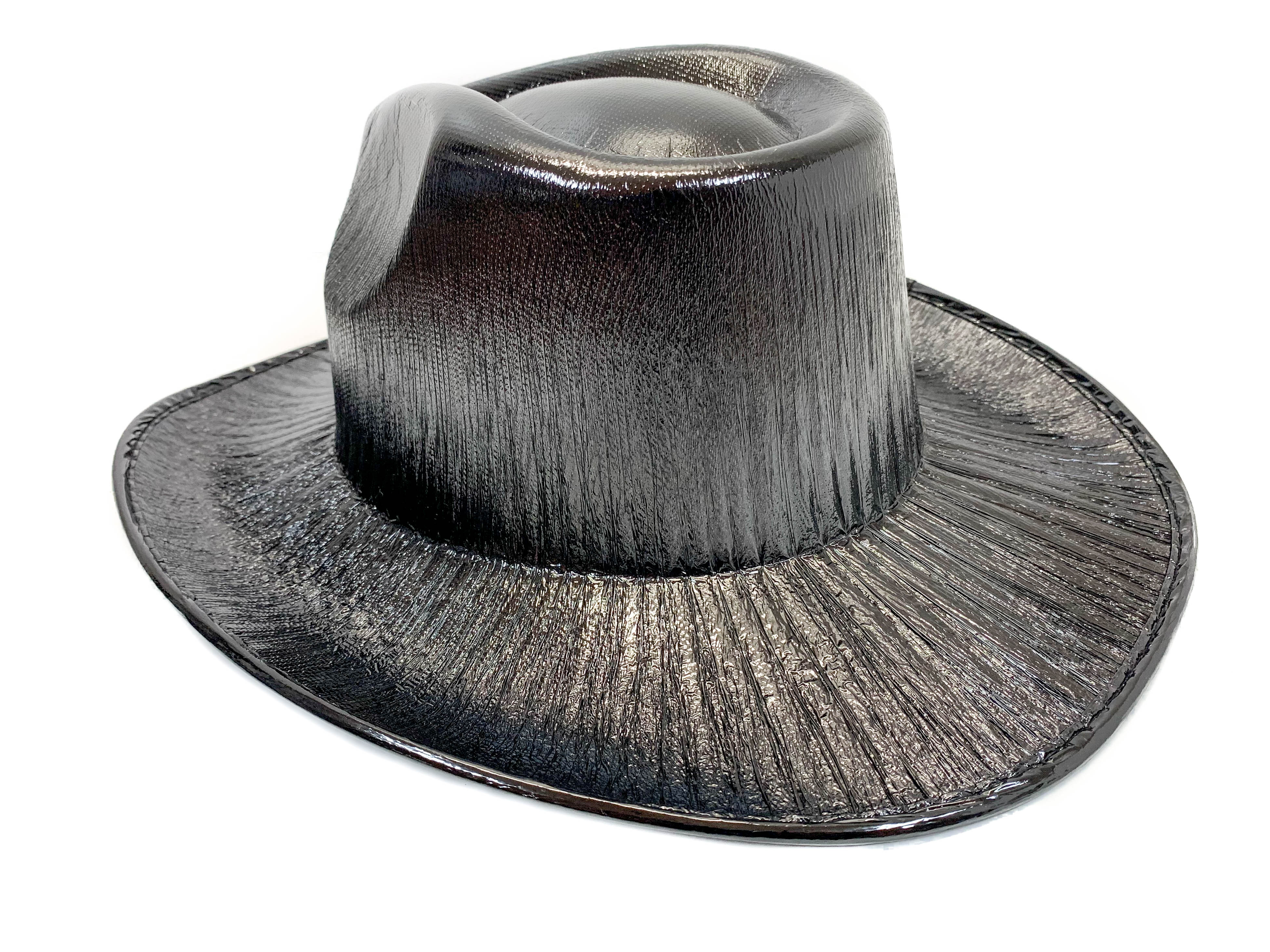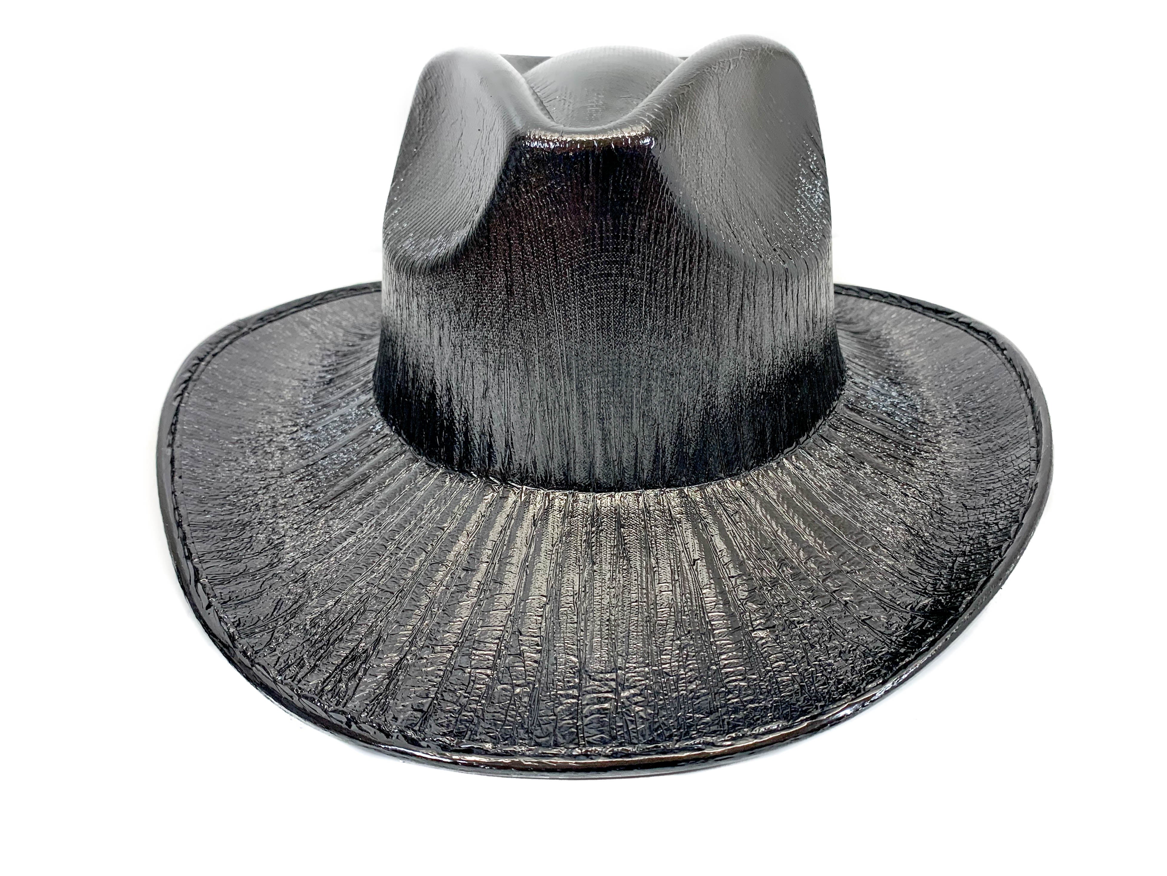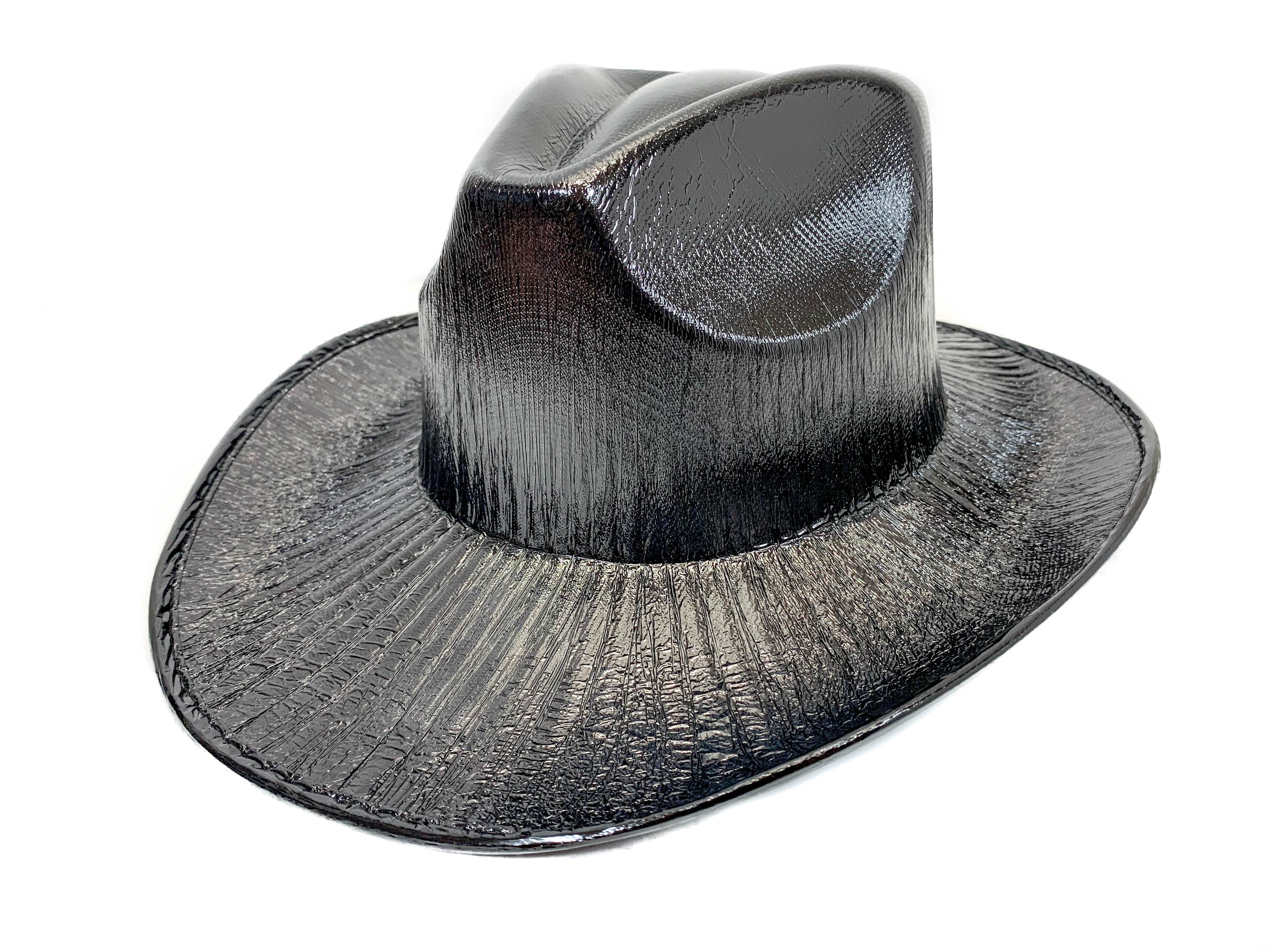 Black Holographic Western Cowboy Hat Festival Punk Rave Goth Cosplay Concert
