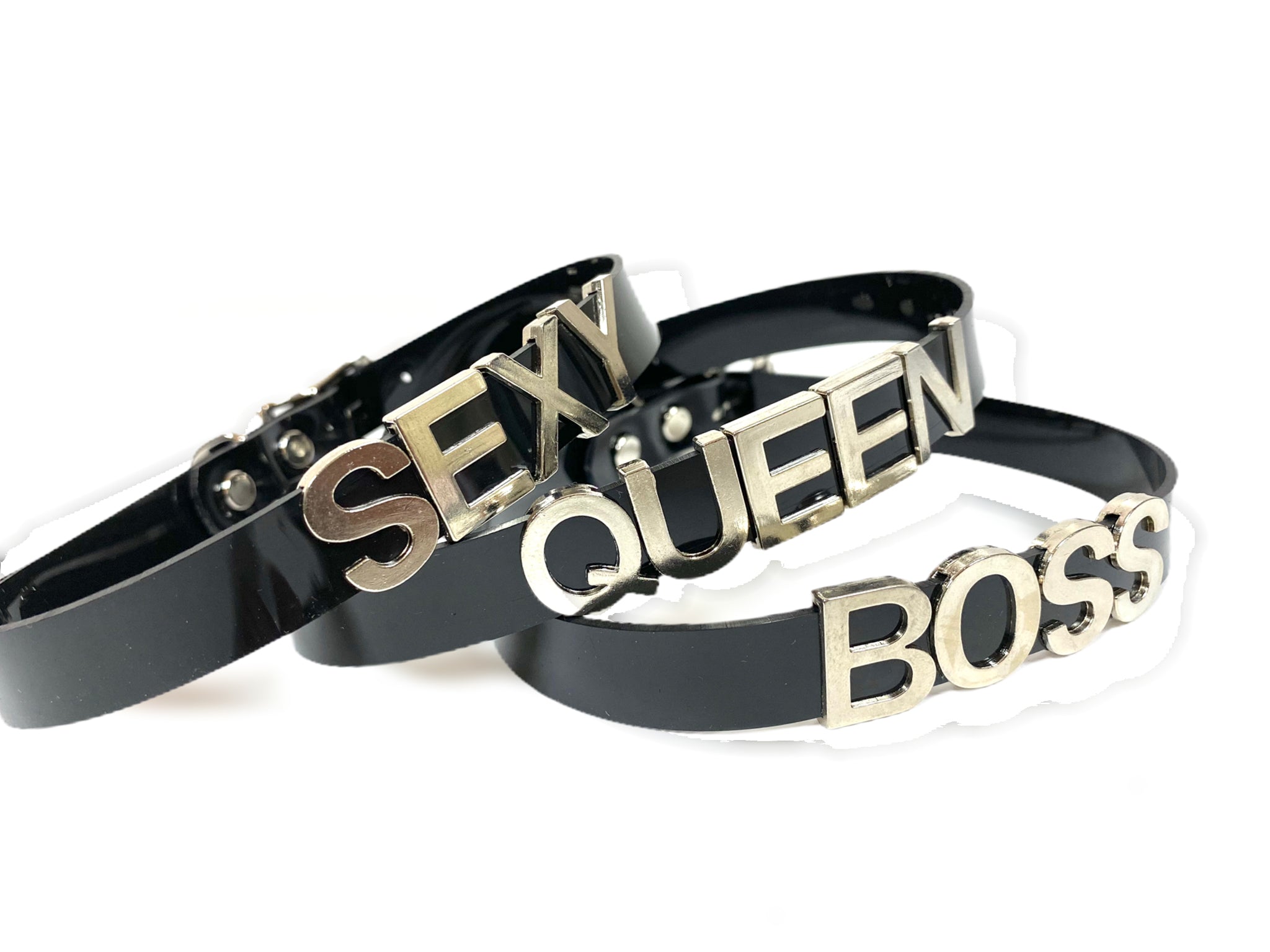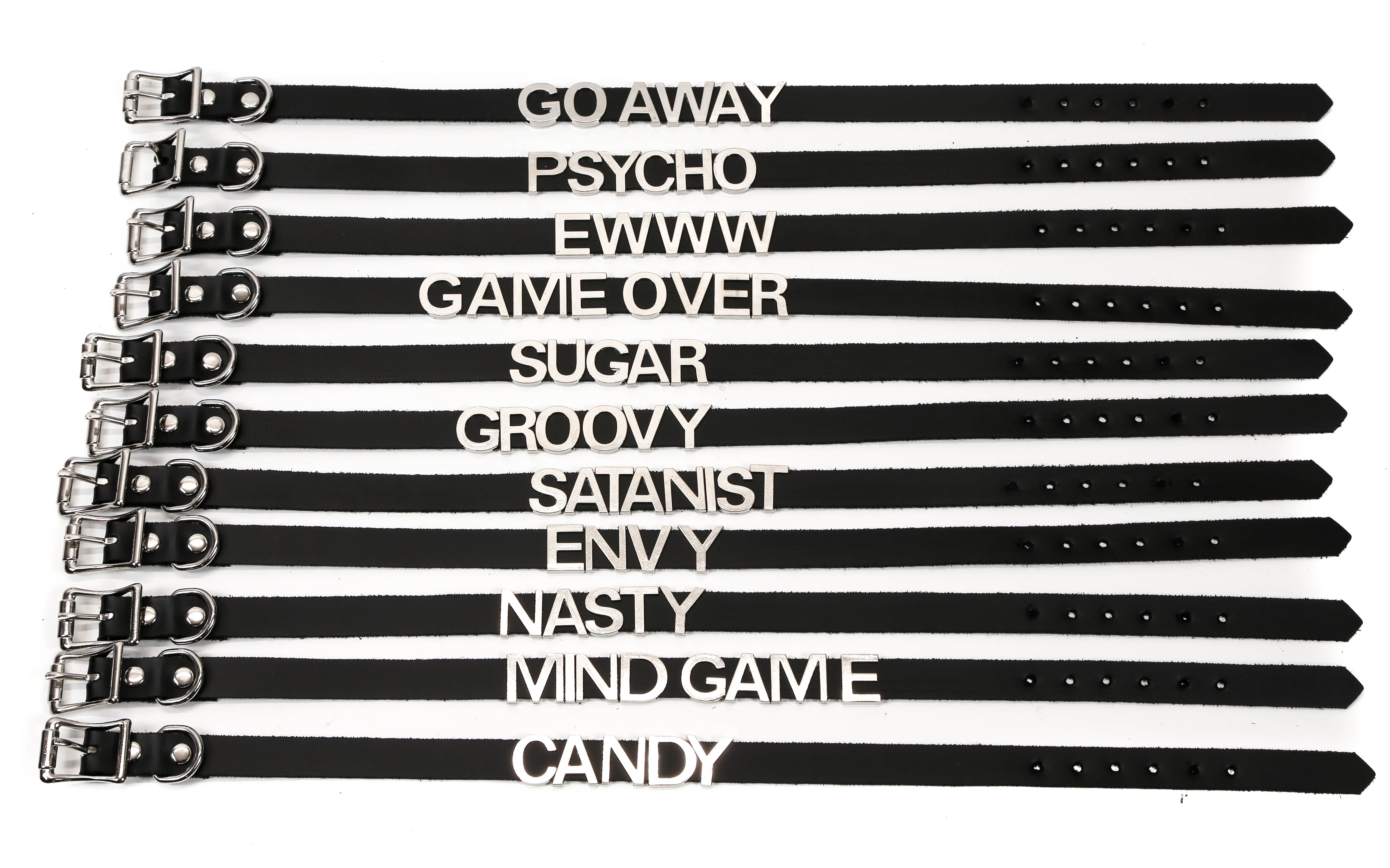 STAINLESS STEEL LETTER WORDS ID NAME BLACK VINYL CHOKER
